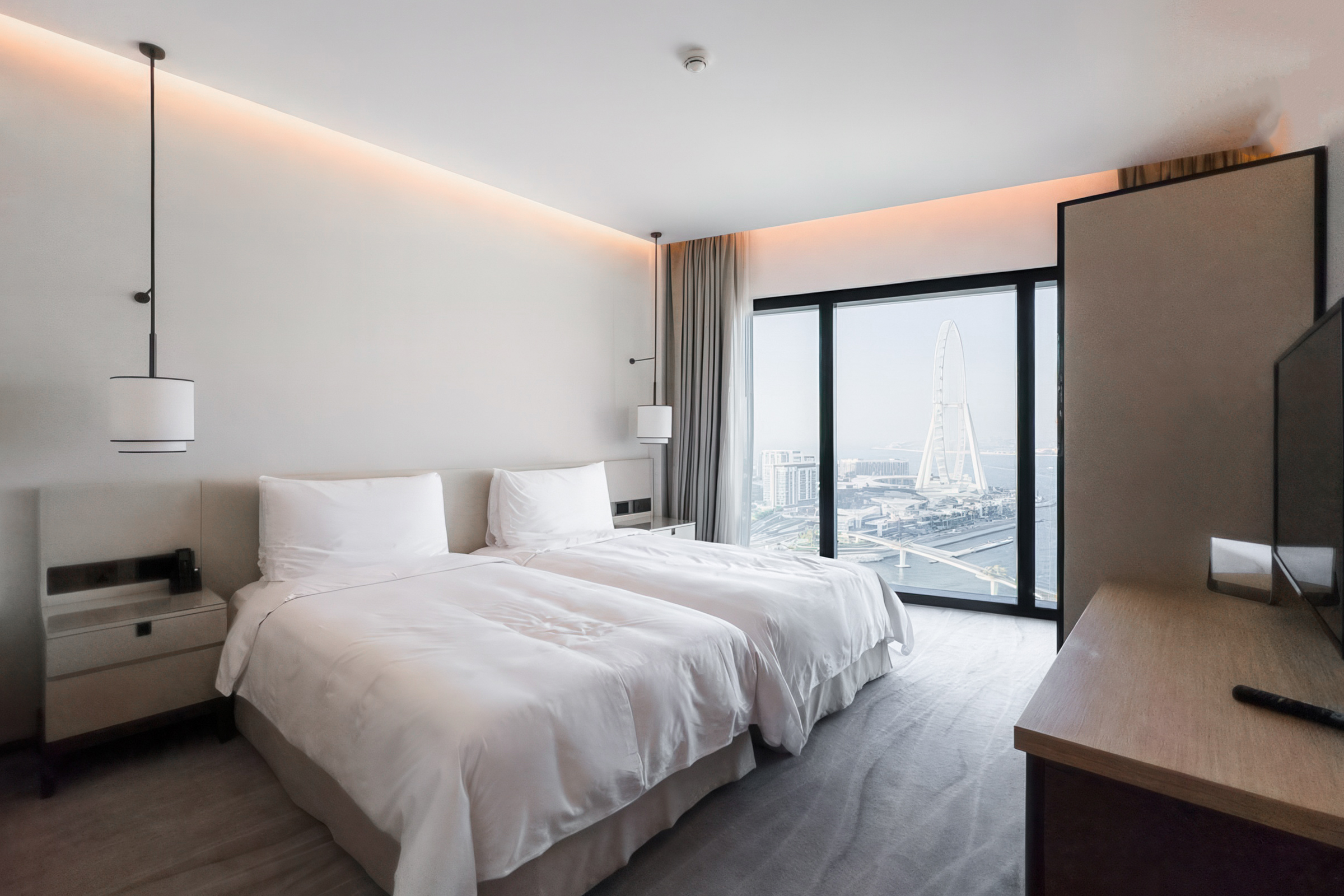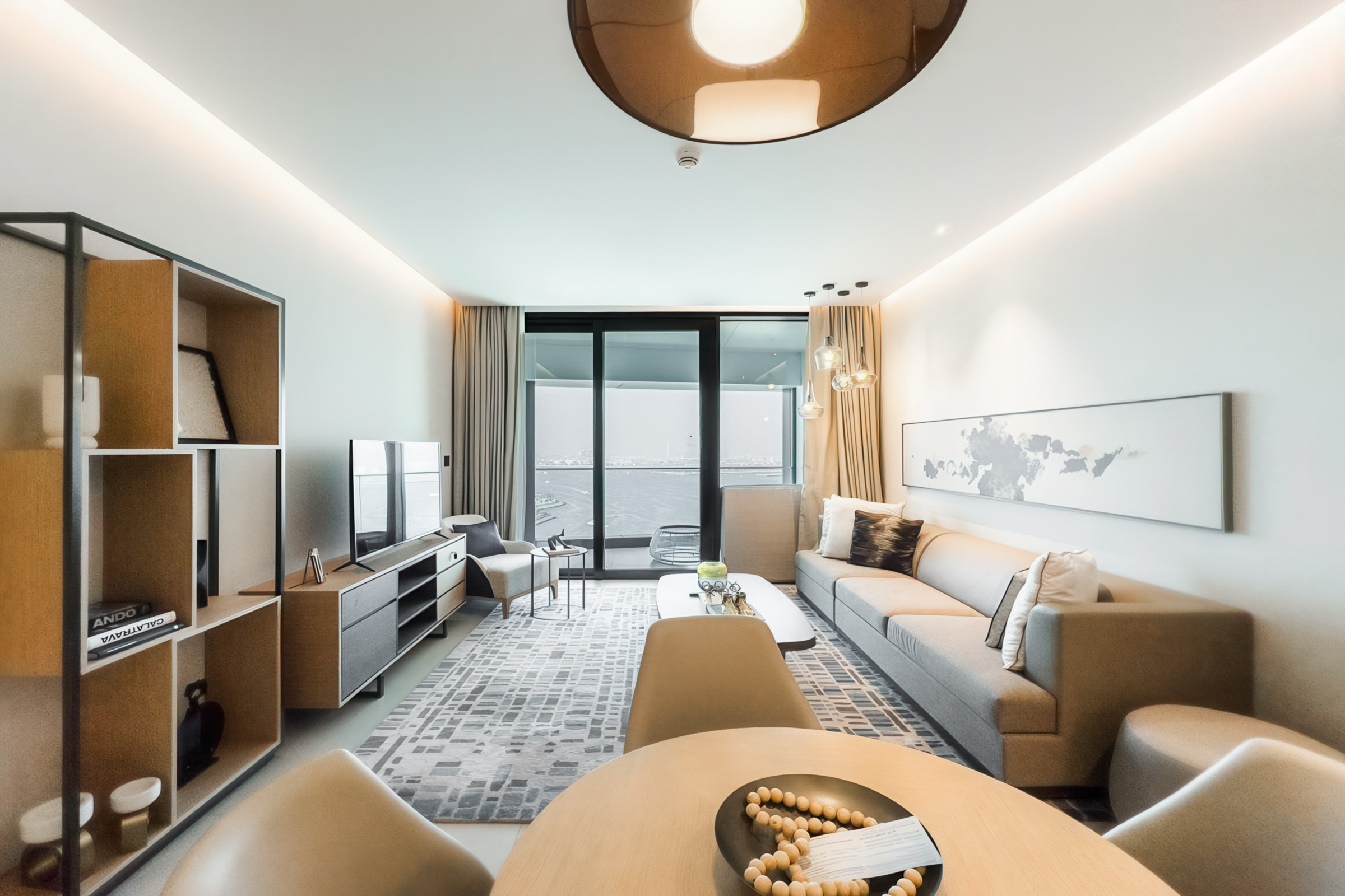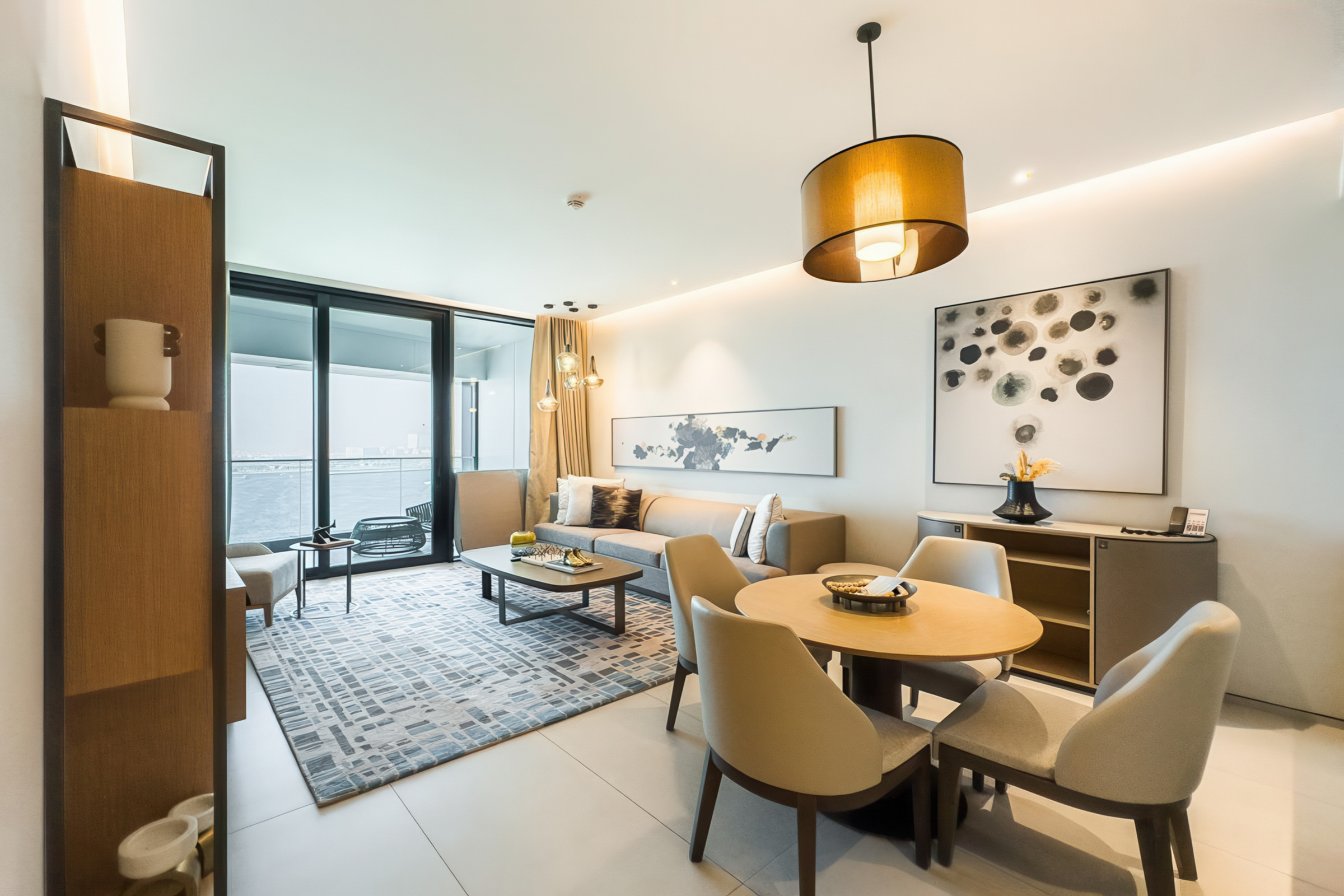 Fully furnished to elegant standards, the interiors feature an understated palette of neutral tones, and exquisite finishes. Each space benefits from abundant natural light owing to tall windows that also offer unobstructed views of the Marina, the sea and the iconic Ain Dubai.