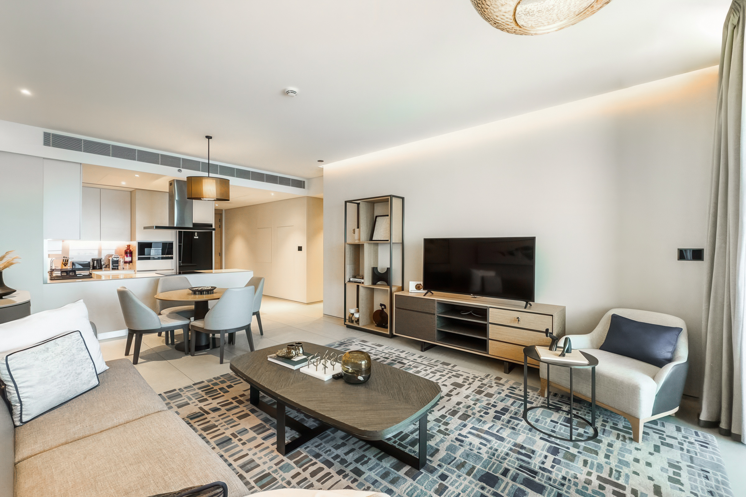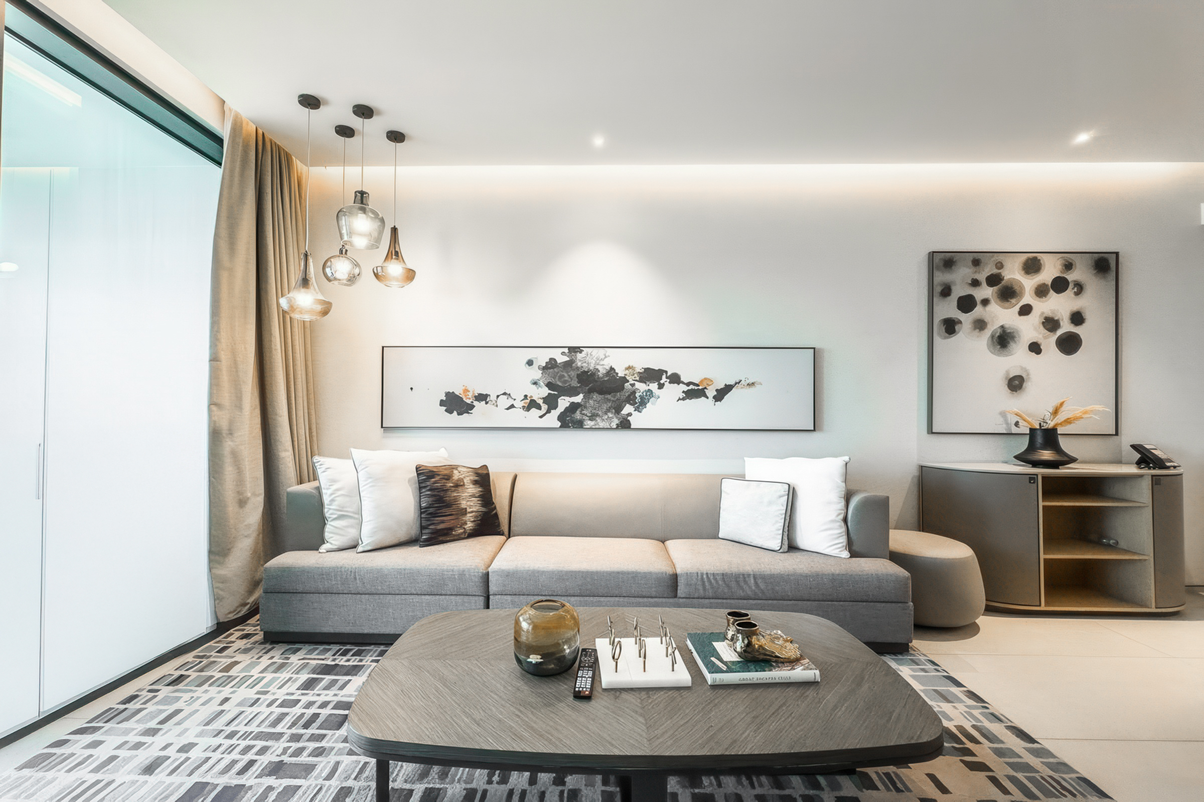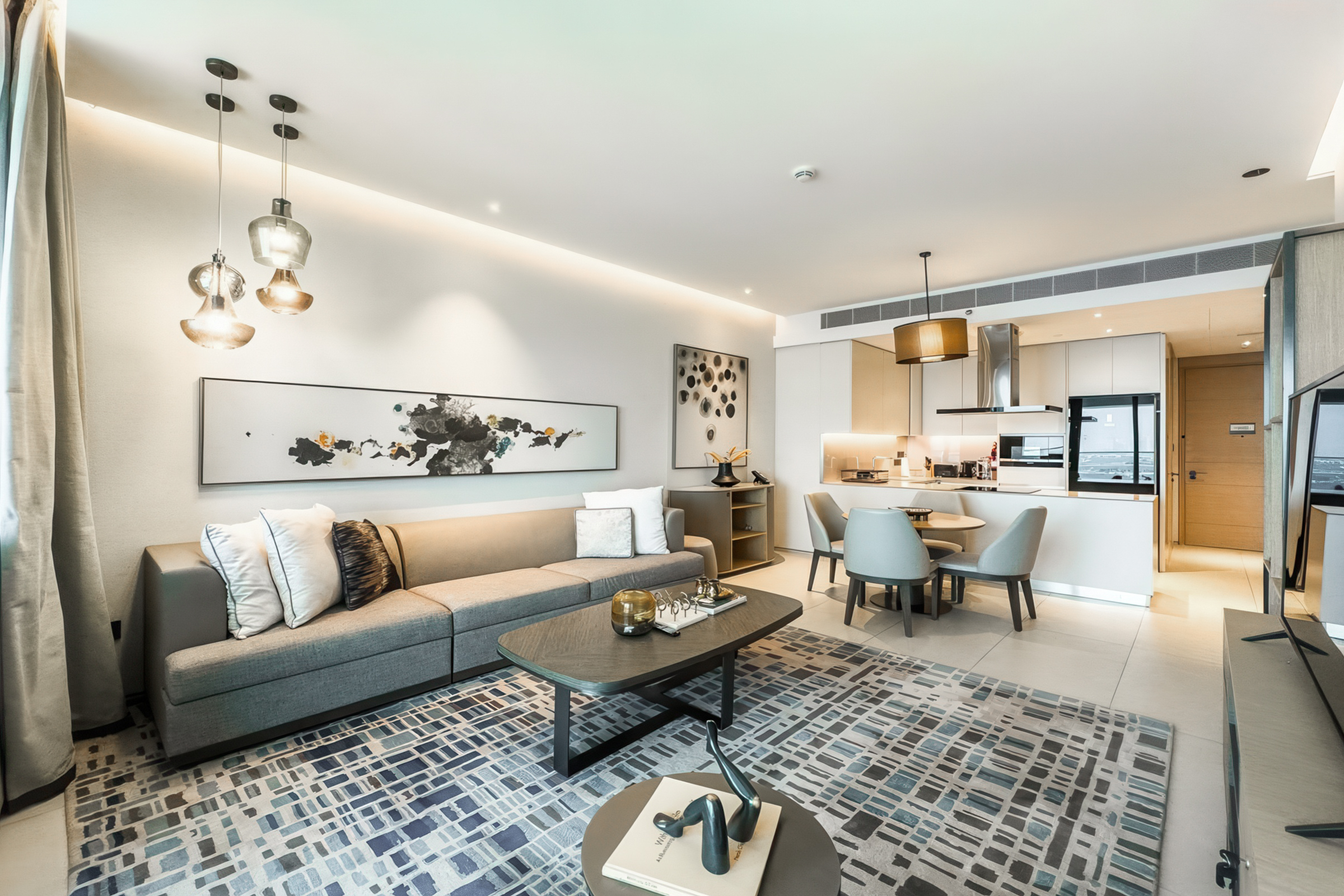 Fully furnished to elegant standards, the interiors feature an understated palette of neutral tones, and exquisite finishes. Each space benefits from abundant natural light owing to tall windows that also offer unobstructed views of the Marina, the sea and the iconic Ain Dubai.