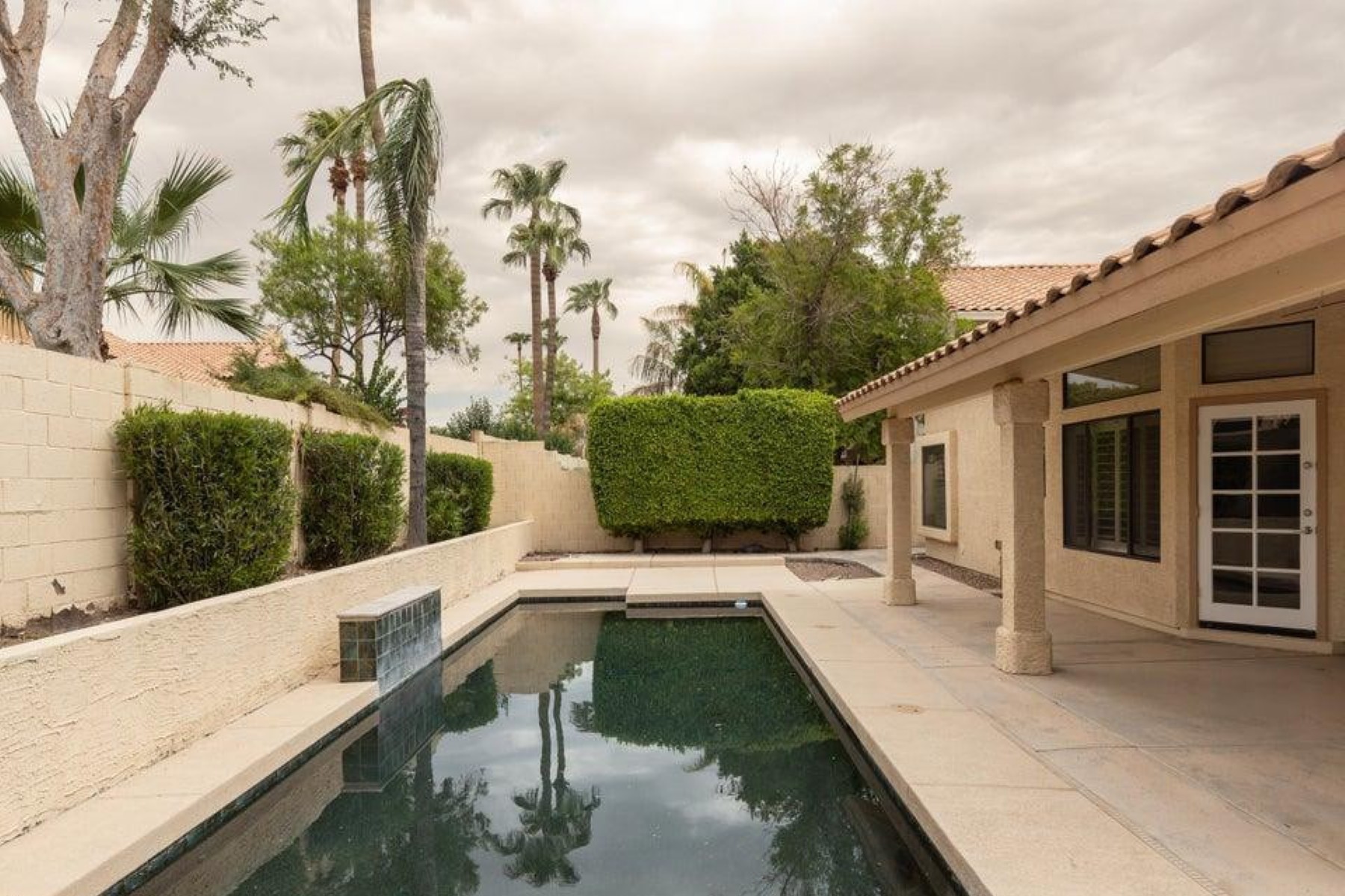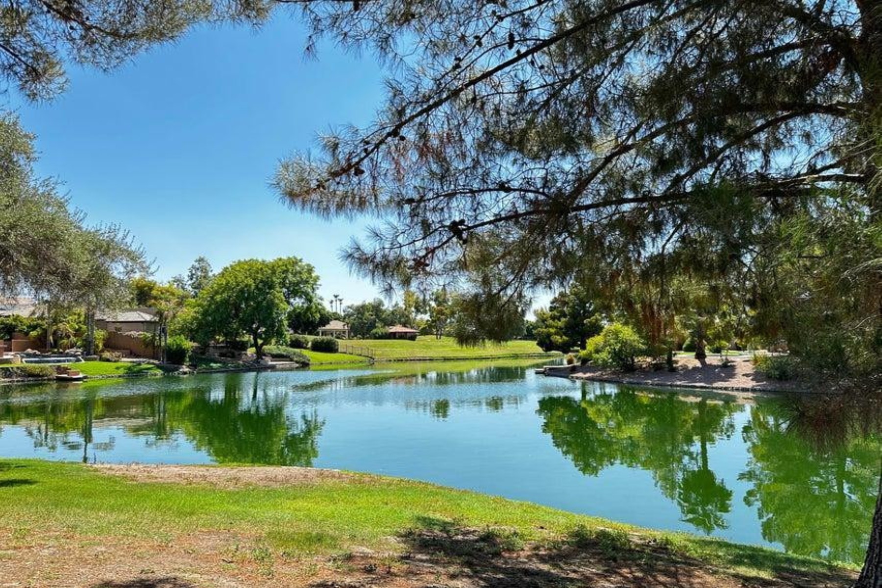 0.4 miles to the elementary school, 0.7 miles to shopping and fine dinning area.Home is in the heart of Ocotillo, walking distance from A+ schools, less than 5 minutes from Intel campus, Village club, golf course, tennis/pickle ball courts, restaurants. Single level beauty in a lake community in 85248 ! Beautifully upgraded home with peaceful backyard and a lap pool.