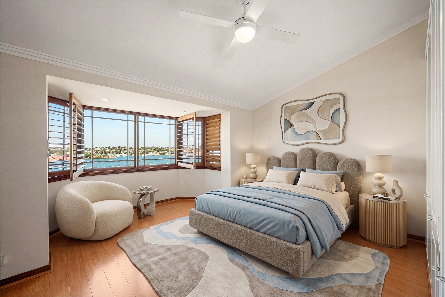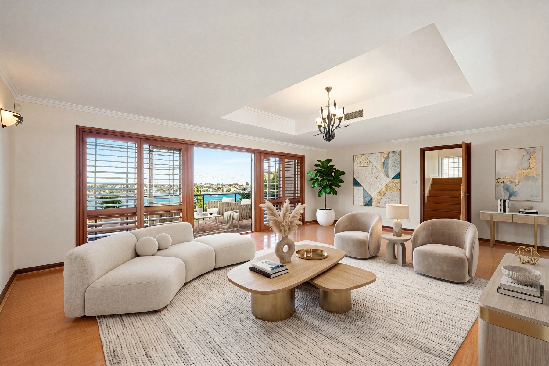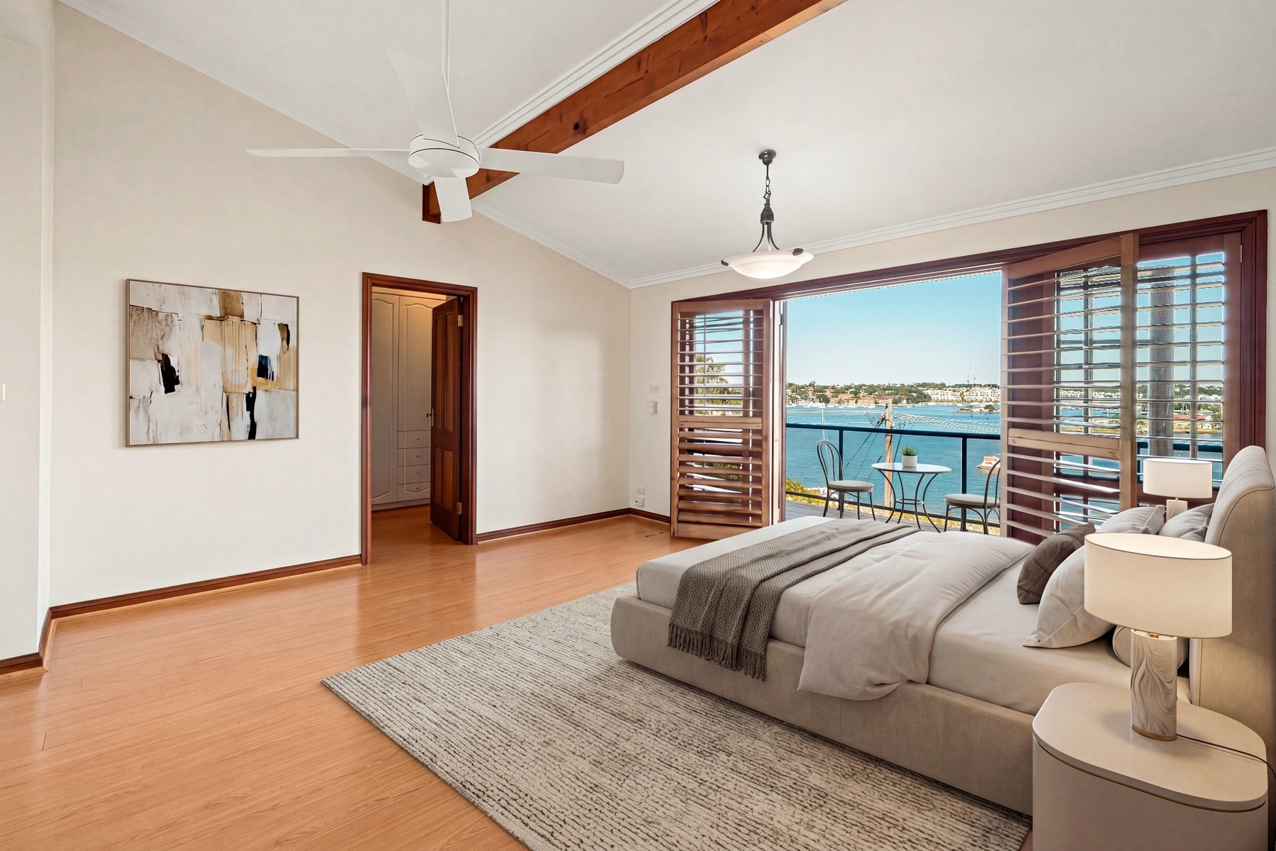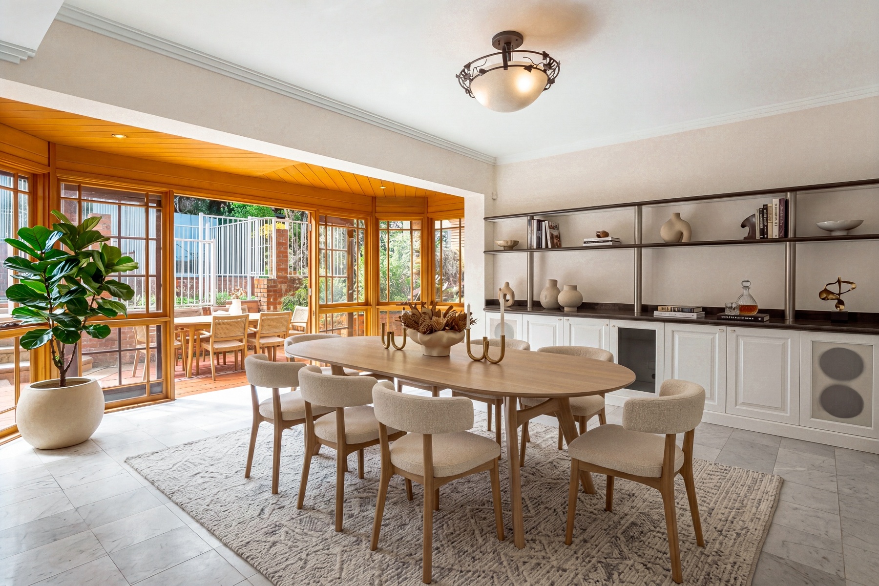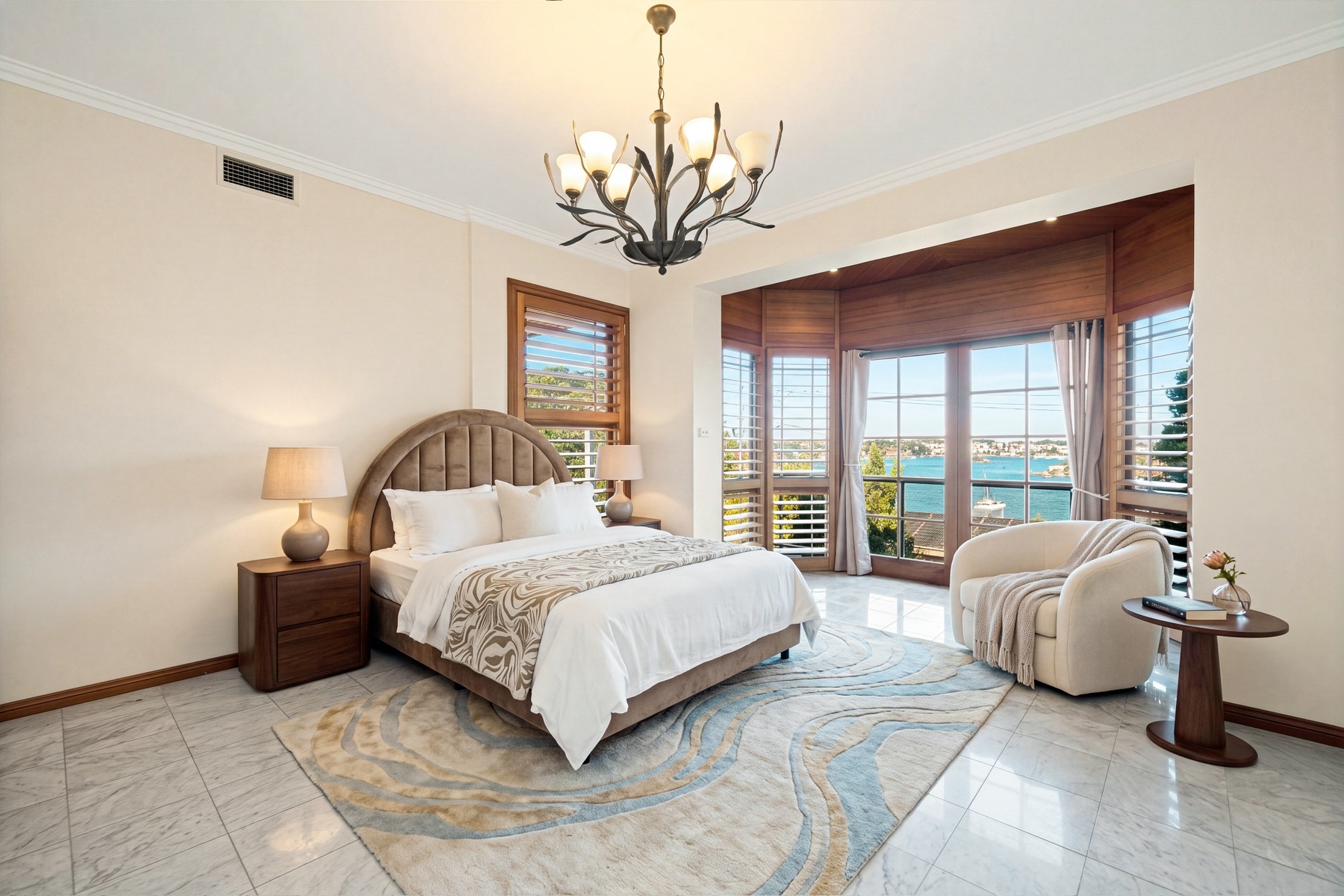 Panoramic views across the Parramatta River to Birchgrove, Balmain, Cockatoo and Spectacle Islands define this three-level family home in a quiet cul-de-sac near Kelly’s Bush and Weil Park. Set high on approx. 585sqm with a north-facing garden, pool and four-car garage, it’s offered for the first time in 25 years. Comfortable as is, it presents scope to modernise. Full brick and concrete slab construction with generous interiors, indoor-outdoor flow, balconies and water views. Includes multiple living zones, flexible 5th bedroom, well-equipped kitchen, master with ensuite, ducted air and ample storage. Close to village shops, marina, ferry, buses and schools.