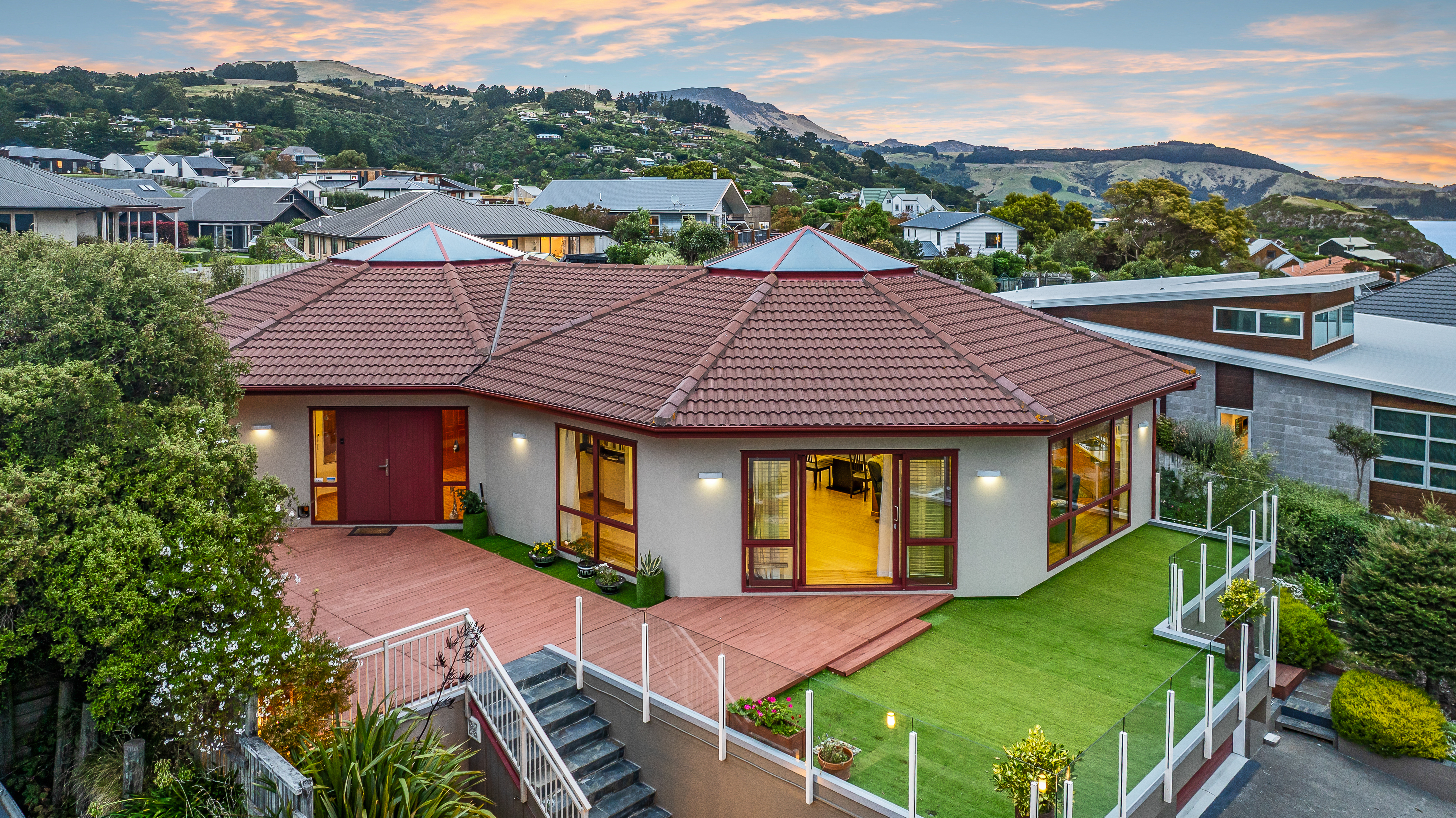 Positioned within the hillside setting of Diamond Harbour, 49 James Drive is a stunning residence shaped by geometry, elevation, and outlook.Two interconnected octagonal forms create a striking structure, where high ceilings introduce volume and light. Above, double glazed ceiling roses frame the sky, bringing a constant sense of movement and connection to the elements. Living spaces open to front-facing balconies, extending naturally toward the coastal landscape and supporting both relaxed living and entertaining.The layout is thoughtfully arranged, balancing openness with a sense of privacy throughout. Below, a fully self-contained level with kitchen and bathroom facilities offers flexibility for guests, extended family, or use as a media or games space. A built-in sauna, with its own bathroom amenities, adds a considered element of relaxation and retreat.Set within a location known for its tranquillity and community, and within reach of Christchurch, the property offers both seclusion and accessibility. In a market where individuality is increasingly sought, this is a home that stands apart.To download the property file, copy and paste the following link: https://www.propertyfiles.co.nz/property/CHR10373