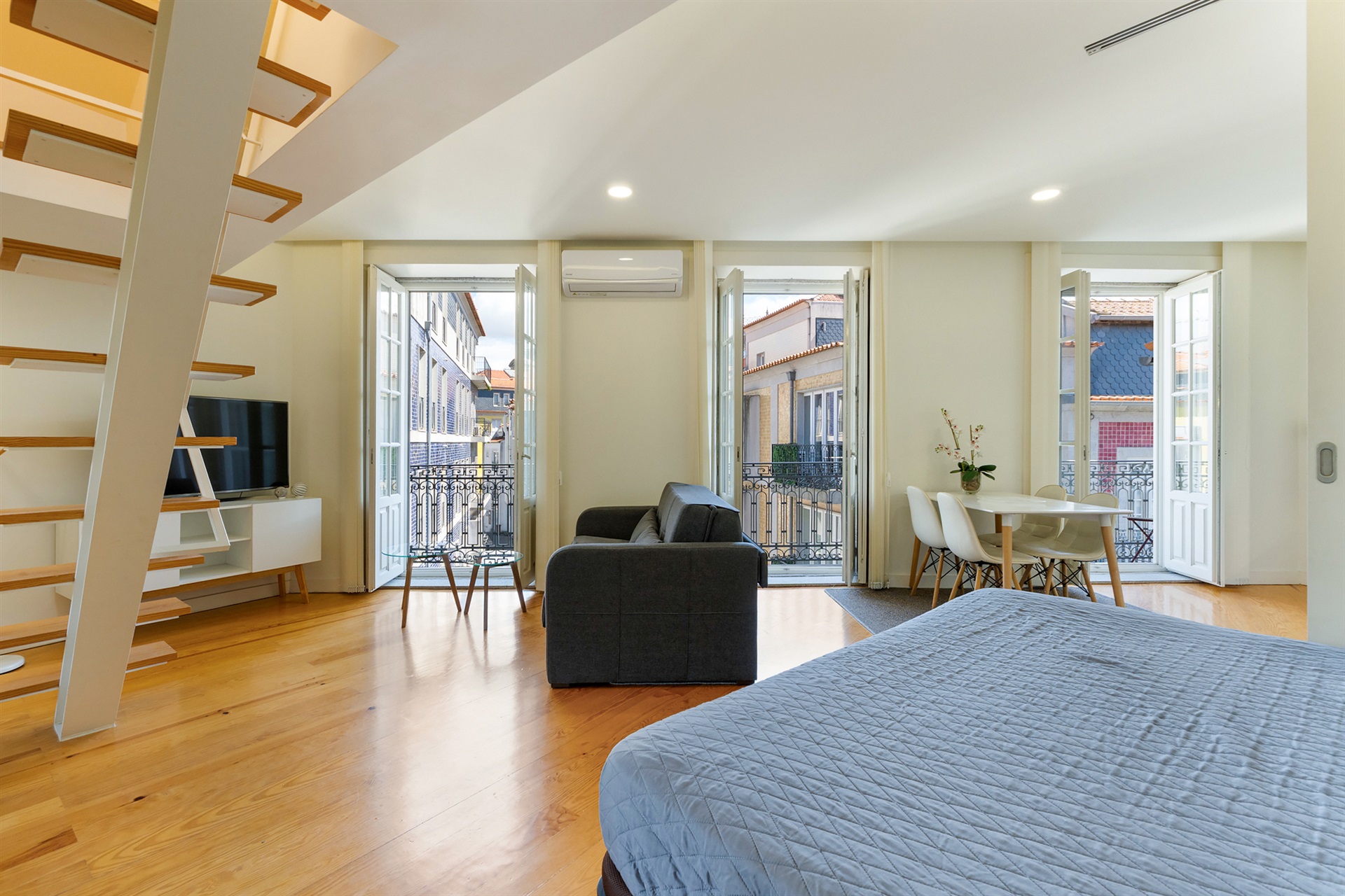Discover this charming one-bedroom plus studio apartment, fully renovated and situated in the heart of Porto, in a prime location just two minutes from the iconic São Bento Station and the majestic Avenida dos Aliados. This property offers a modern living experience with a traditional touch, reflected in its exquisite renovation. The interior spaces are ample and bright, with a total gross floor area of 72.16 m², which includes a cosy balcony that perfectly complements the living space. With a local accommodation licence already secured, this property represents an unmissable investment opportunity in the city’s historic district. Ideal for those seeking a balance between urban comfort and rental potential, the apartment also features a loft mezzanine, complete with Velux skylights, providing a versatile extra space for all your needs. Come and visit, and be amazed by the uniqueness and potential of this exclusive property in Porto.