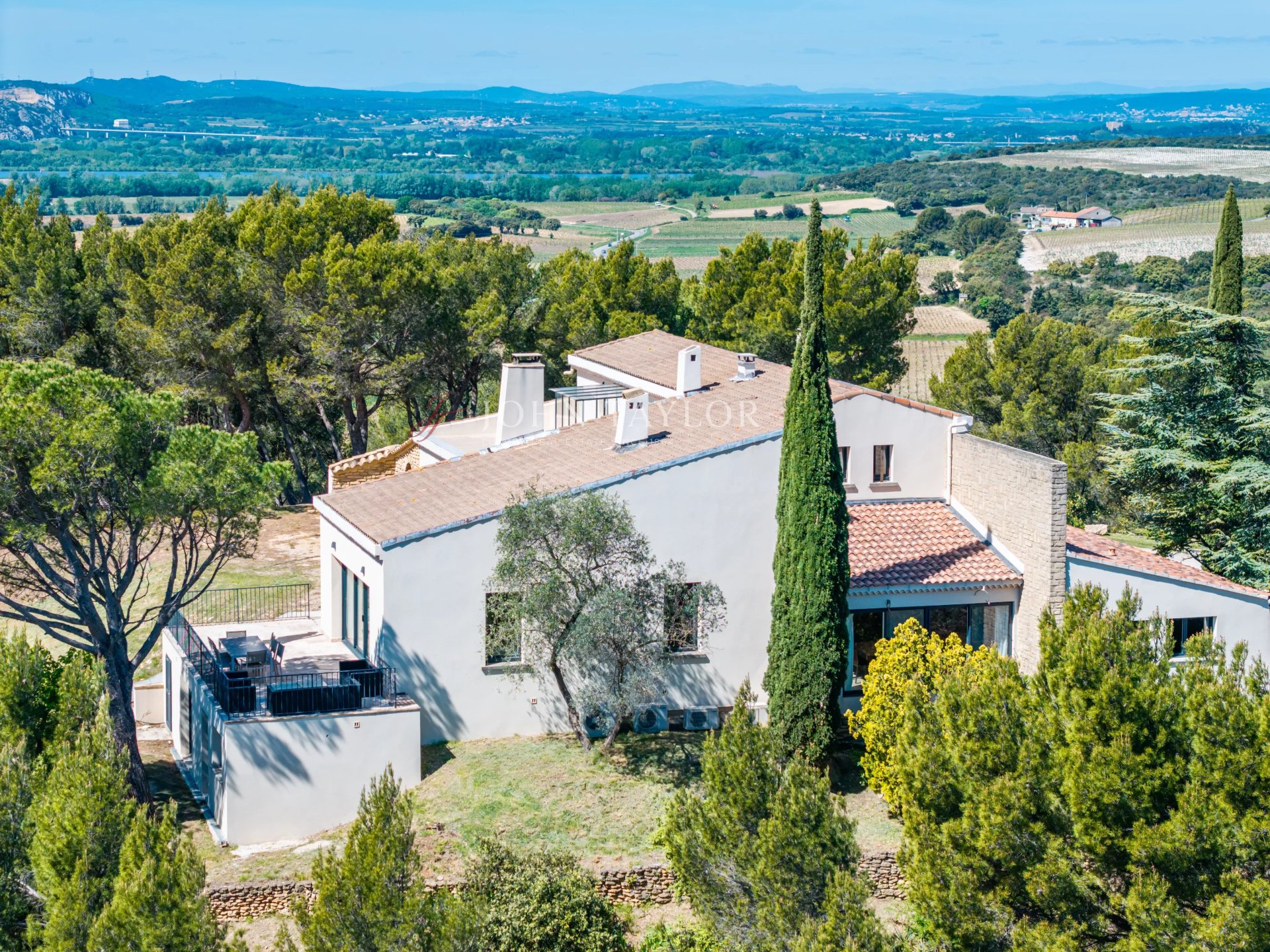 Ideally located in Châteauneuf-du-Pape, within immediate proximity to local amenities, this property—fully renovated in 2022—enjoys a remarkable elevated position.This house for sale in Châteauneuf-du-Pape boasts a breathtaking 360° panoramic view over the iconic landscapes of the Rhône Valley. The eye is drawn across the surrounding vineyards, the Rhône River, the Alpilles, the Cévennes, and even the Palais des Papes, offering a rare and spectacular living environment.The house has been entirely redesigned, featuring bright, open spaces that extend onto expansive south-facing terraces. The reception areas flow seamlessly into the outdoors, creating a lifestyle fully oriented toward the surrounding landscape.The kitchen, defined by its contemporary lines and high-quality materials, is centered around a stylish island and fully integrated equipment.The sleeping quarters have been carefully designed with a strong emphasis on comfort and privacy: each bedroom benefits from its own en-suite shower room, while an upstairs suite enjoys a private bathroom.Every aspect of the property reflects a comprehensive renovation, combining technical excellence with understated elegance.Set on approximately 3,600 sqm of land, the property is nestled in a preserved natural environment, just moments from the vineyards of Châteauneuf-du-Pape, offering a privileged lifestyle between nature and open horizons.A property for sale in Provence that combines a sought-after location, contemporary comfort, and an exceptional panorama, in one of the region’s most desirable areas.