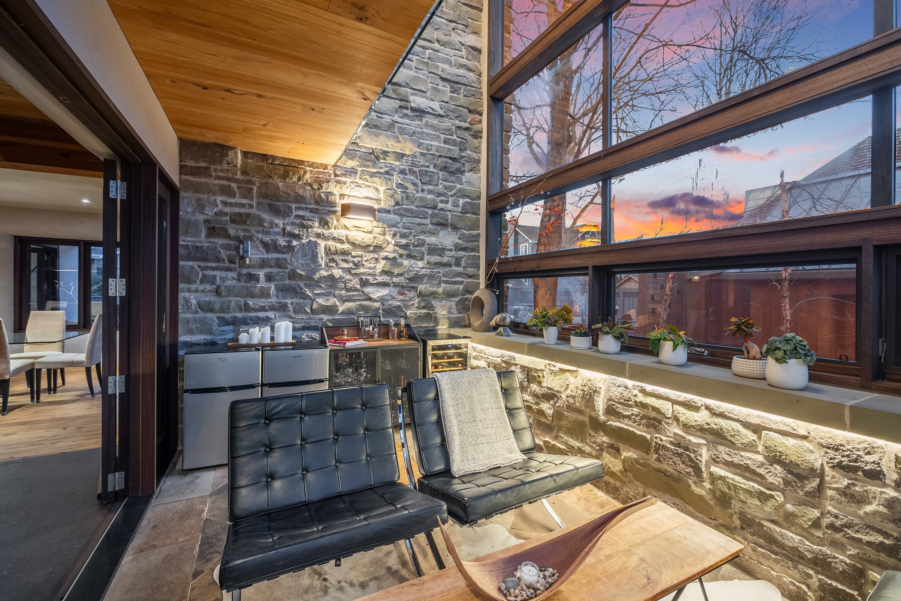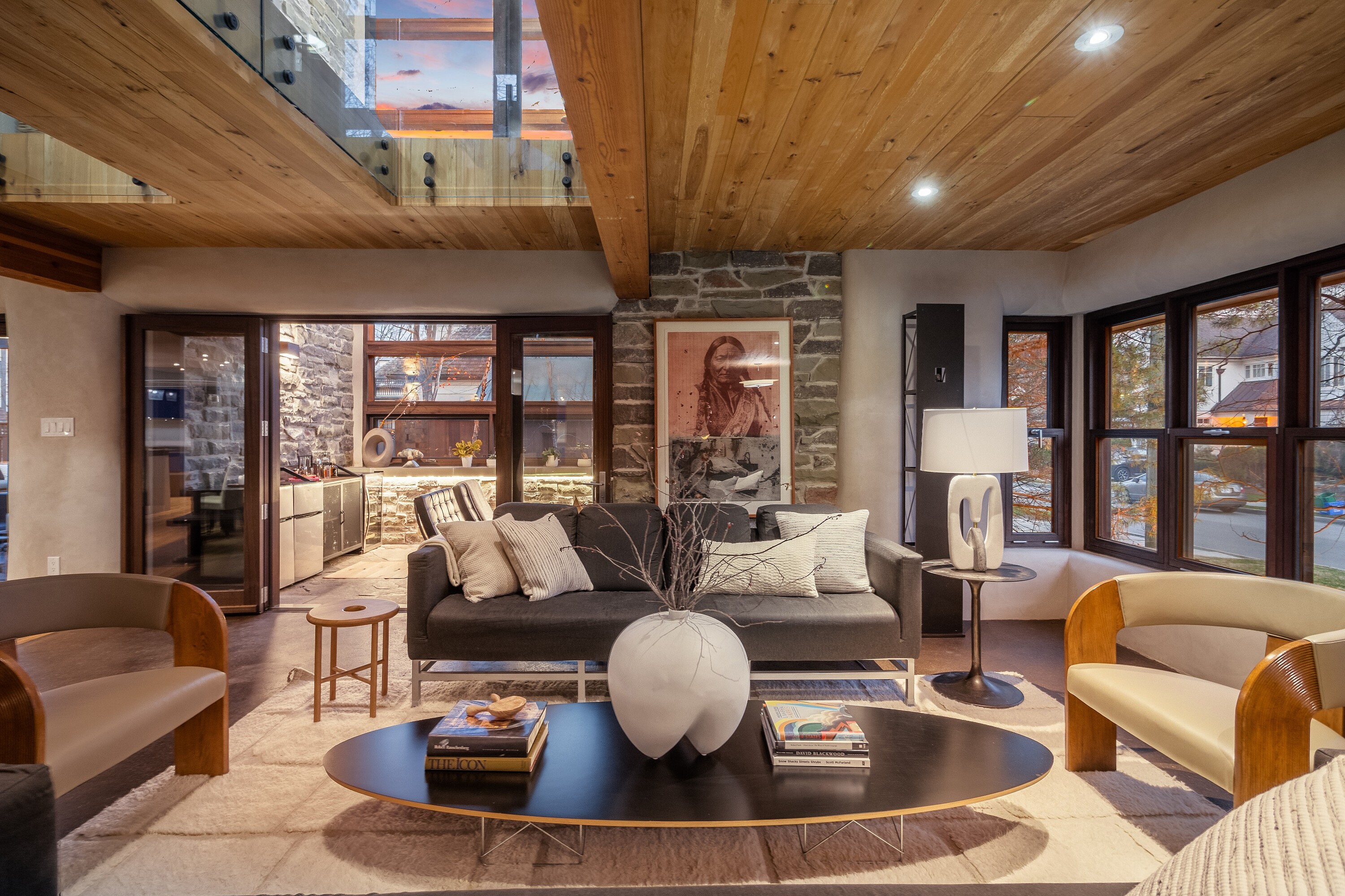 It is rare to find a home that respects its history while boldly defining its future. Set within Oakville's prestigious West Harbour neighbourhood, 55 Chisholm Street is a study in modern heritage, where a century-old stone foundation anchors a home defined by thoughtful design and sustainable innovation. Superior craftsmanship and comfortable, functional spaces create a residence that is both considered and effortlessly livable. Every detail reflects a singular vision. The architecture bridges past and present with quiet confidence, pairing natural plaster walls and custom ironwork with a sculptural three-dimensional stairwell and a professional Scavolini kitchen outfitted with integrated Miele appliances. A striking soapstone fireplace grounds the main living area, while open-concept spaces extend toward landscaped gardens, creating a seamless connection between indoors and out. Its intelligence is expressed through restraint. Geothermal heating, energy-recovery ventilation, and rainwater harvesting are fully integrated, supporting a high level of performance without compromising design integrity. Upstairs, three well-appointed bedrooms and two bathrooms offer calm and privacy. The primary suite opens to a private terrace, while a treetop lookout captures elevated views across the neighbourhood canopy. The lower level includes a modern gym, cedar-lined wine cellar, and guest suite. Outside, the grounds continue the experience with a cedar sauna, outdoor shower, fire pit, and full outdoor kitchen. Steps from the lake and Downtown Oakville, this is a legacy property reimagined for the next century, offering a rare balance of architectural integrity, modern performance, and quiet, enduring livability.