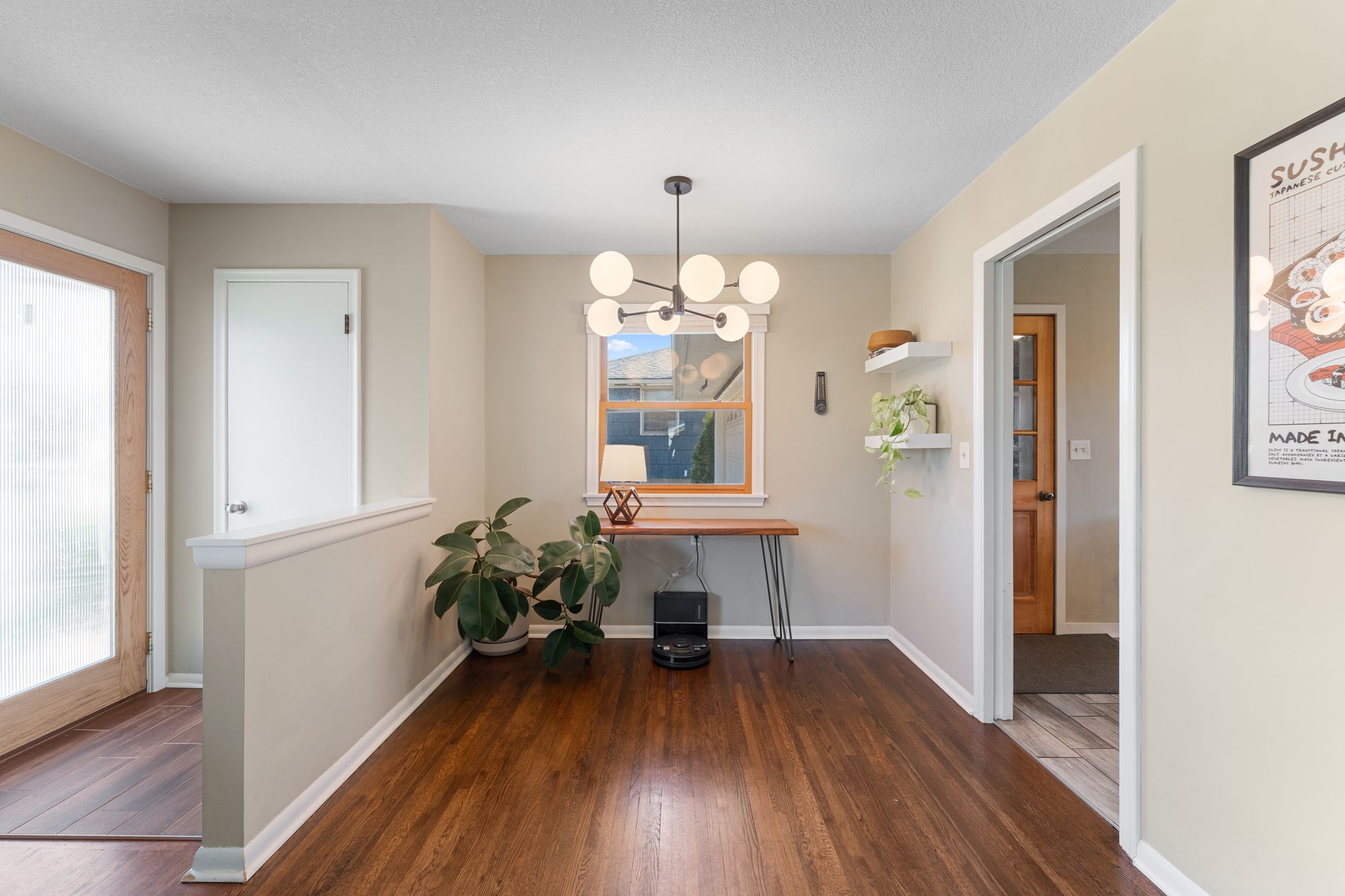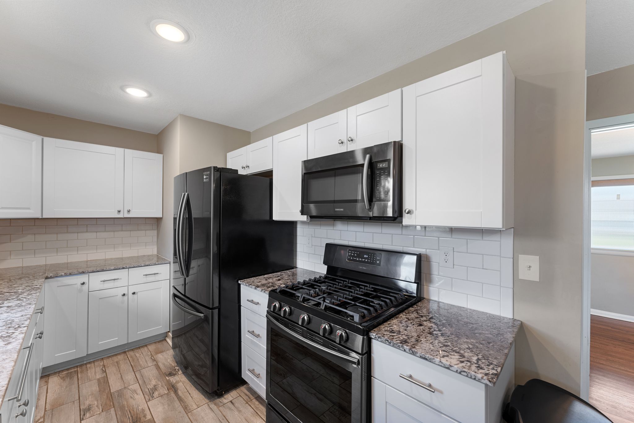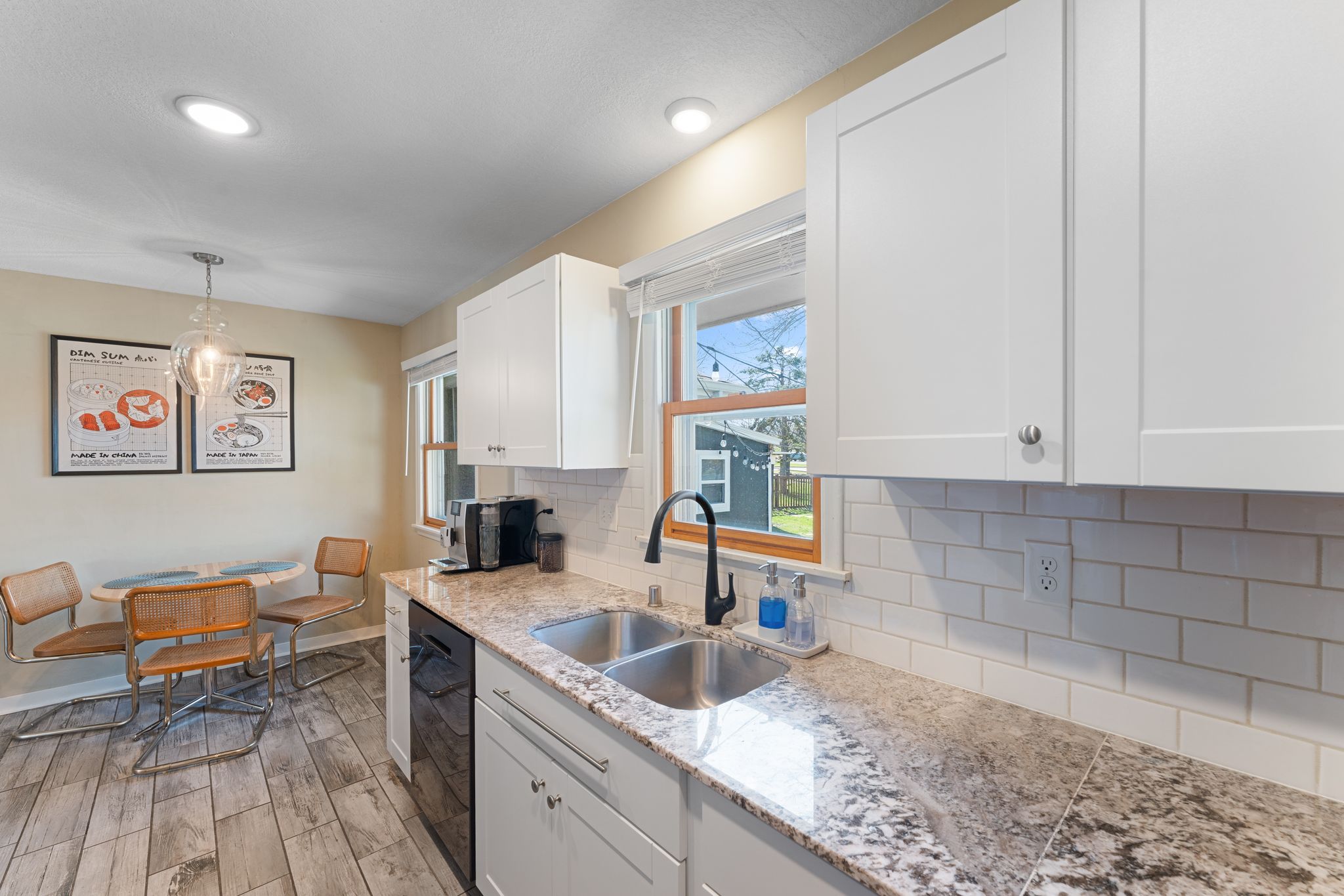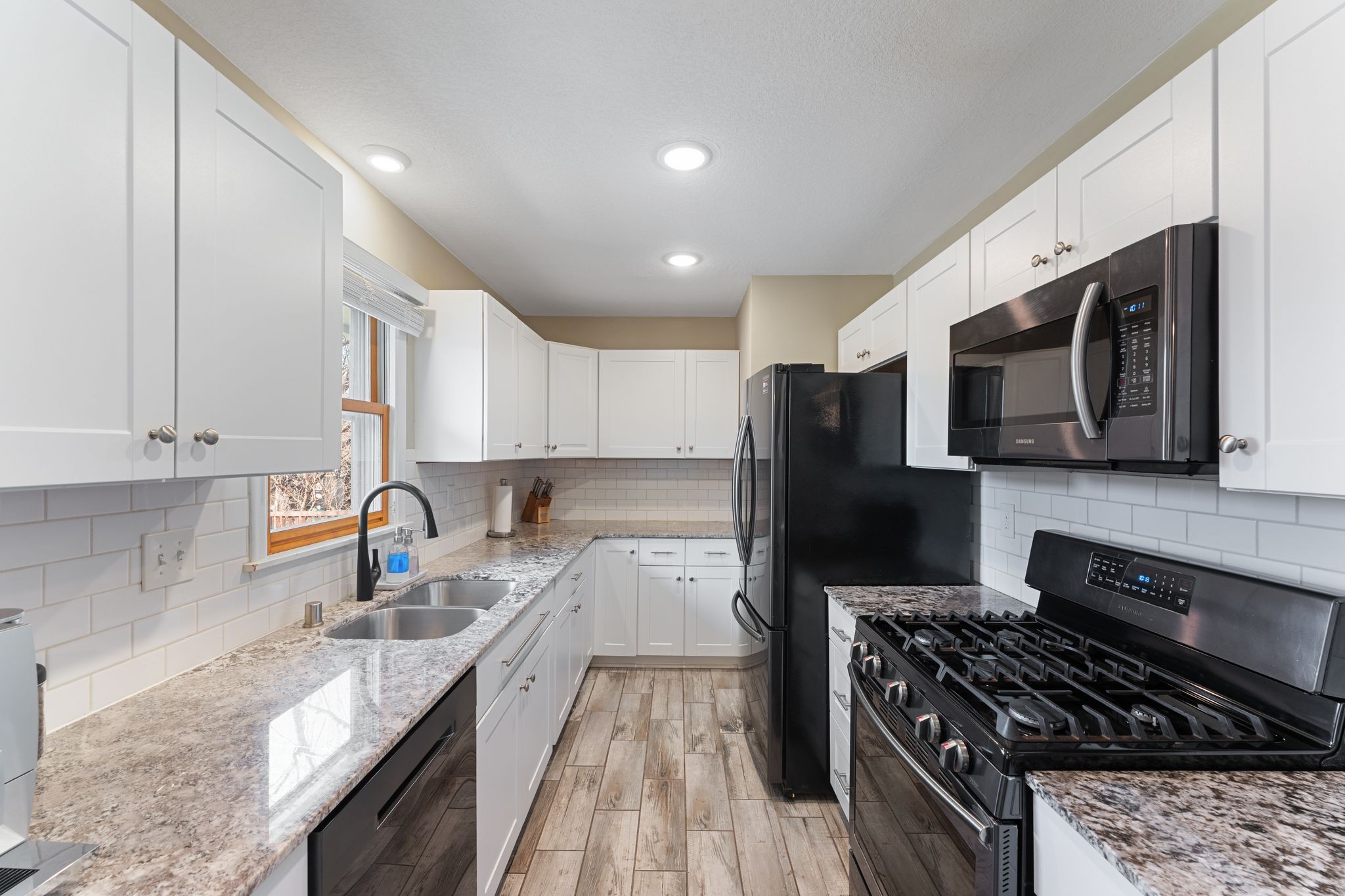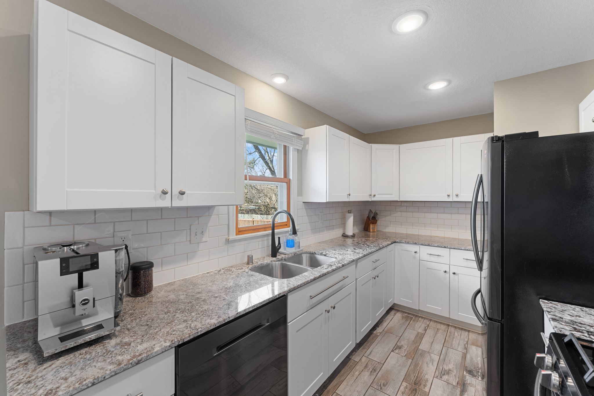 Welcome to 520 57th Ave NE in Fridley! This stunning 1950s one level home is bright and cheery, has great bones, and has been beautifully reconfigured and modernized to today’s living demands. Located on an oversized lot with a fully fenced backyard and large paver patio area. Convenient location close to major freeway access, shopping, dining, entertainment and situated nicely between downtown Minneapolis and St. Paul. Newer windows, HVAC and architectural roof. Spacious attached two car garage with extra storage area in back. Main floor features solid oak hardwood floors, white trim and fresh paint, updated kitchen with newer white cabinets, tiled floor, stainless appliances with gas stove, granite countertops, tiled backsplash, farmhouse undermount sink, sunny living room with informal dining area, a renovated primary suite with walk-in shower, newer white vanity, dual sinks and California walk in closet and bonus second closet, second bedroom and a second remodeled full bathroom with tiled floors and low maintenance shower/bath surround. The lower level features a gigantic family room/recreational area with newer carpet, third bedroom with egress window, office and updated ¾ bath with tiled floors. Truly turn-key and move in ready condition. See 3D tour and video for your own private showing today!