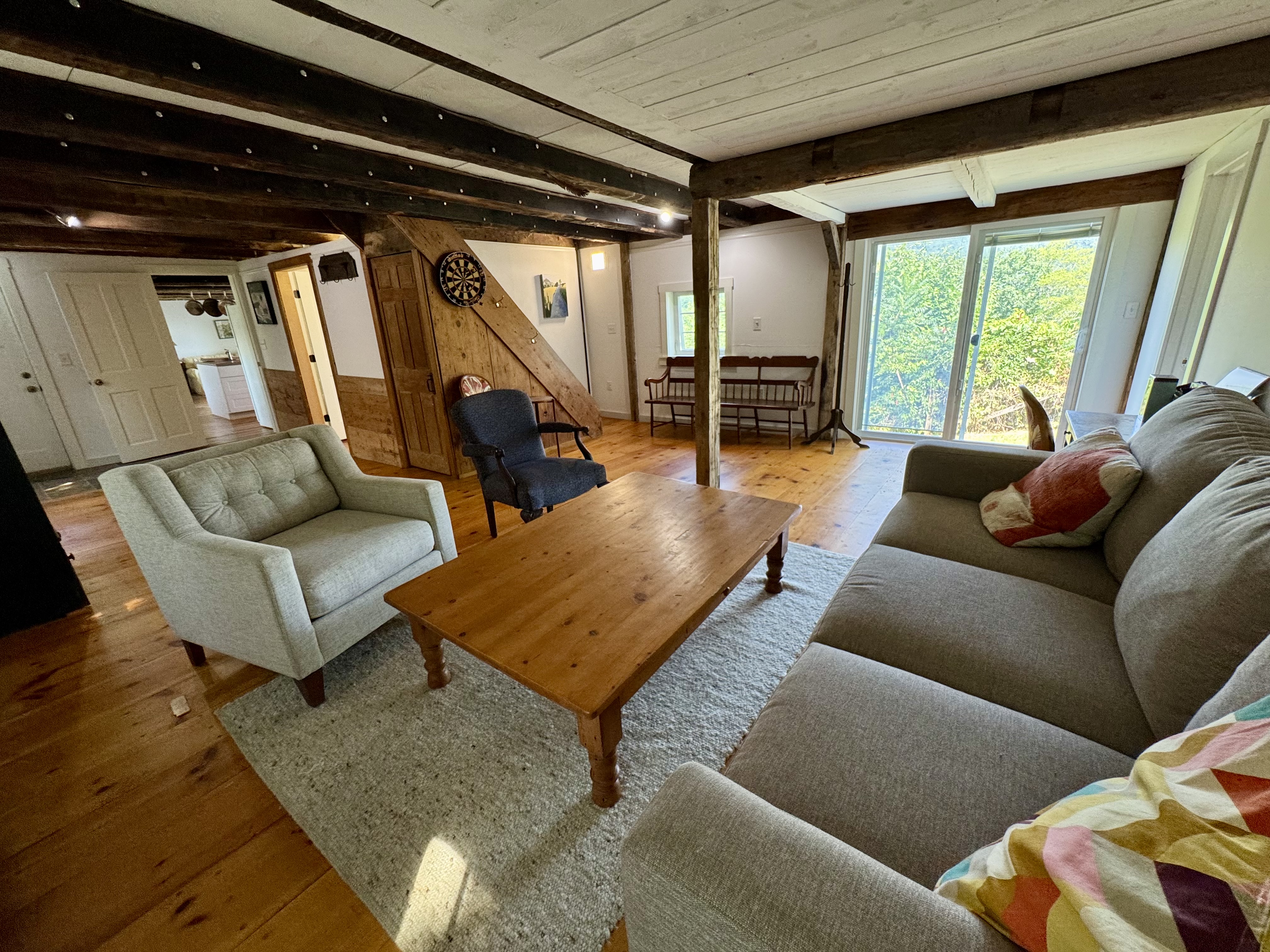 Waterfront access on the Connecticut River with a historic Farmhouse, sprawling lawns, nature paths, 1600 feet of frontage, and a brand new dock system. The natural setting of this 7-acre property is unmatched, with views from every room overlooking the river and the Vermont hills. The rustic 1820s Farmhouse that anchors the top of the property on Littleton Road has been carefully renovated over the last decade, including preservation of the original pine floors, additional windows on the river, and a finished walk-out basement. Enter into a bright and airy eat-in kitchen with two sets of glass doors onto the covered porch. Past the kitchen, find the spacious living room, a bedroom, and a bathroom with washer and dryer. The upper level is a primary suite with a large, open bedroom lined with windows, and a new bathroom with soaking tub. Outside, a long upper lawn opens onto a path down to the lower riverside field, where two eagles often perch in the pine. A new stair-and-dock system has been installed on this private, secluded bend in the river, which is perfect for boating, swimming, and fly fishing, and world class skiing and mountain biking are less than 45 minutes away. Monroe has famously low taxes and high school choice, including St. Johnsbury Academy. Come see this charming, well-appointed home and its unparalleled natural setting.