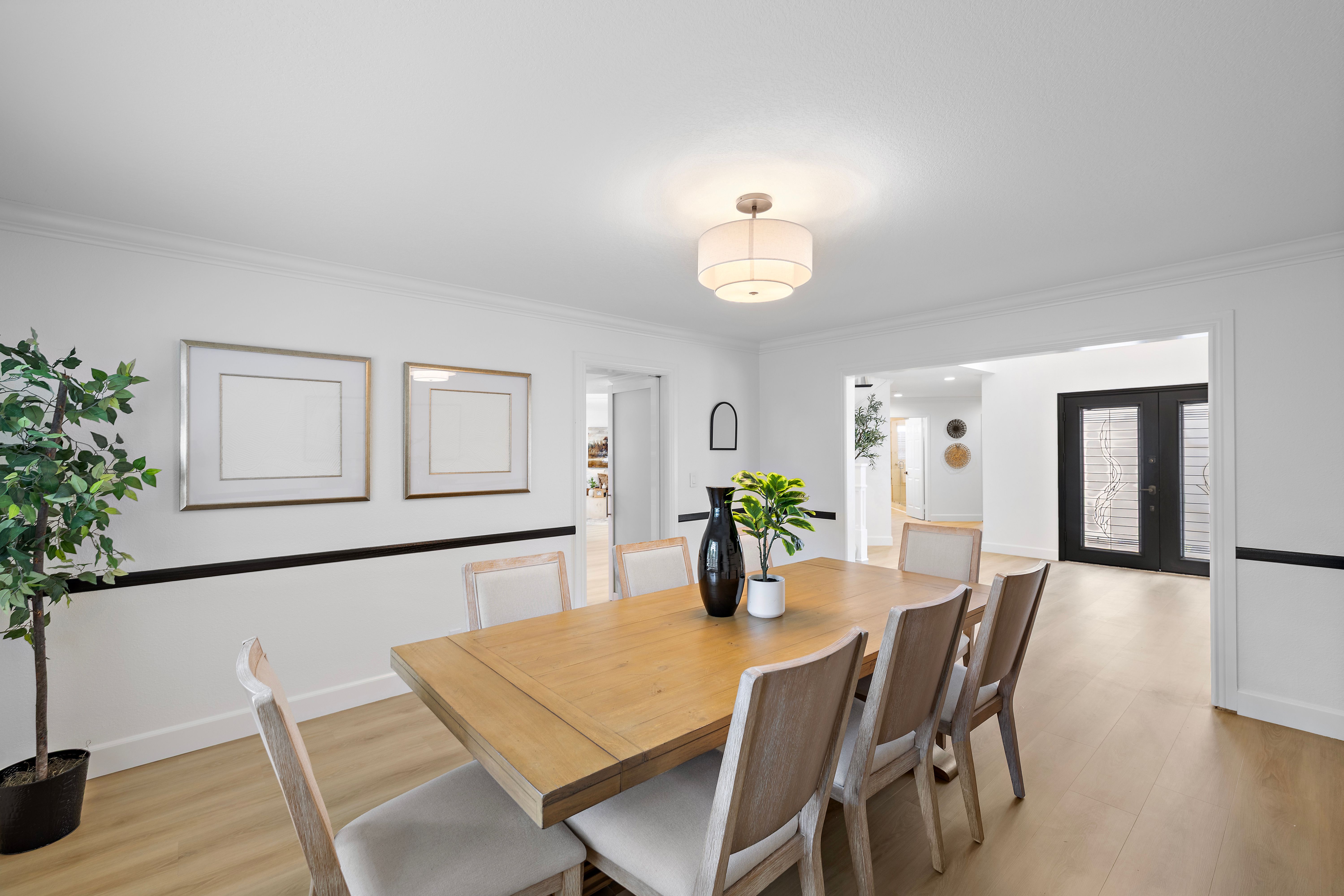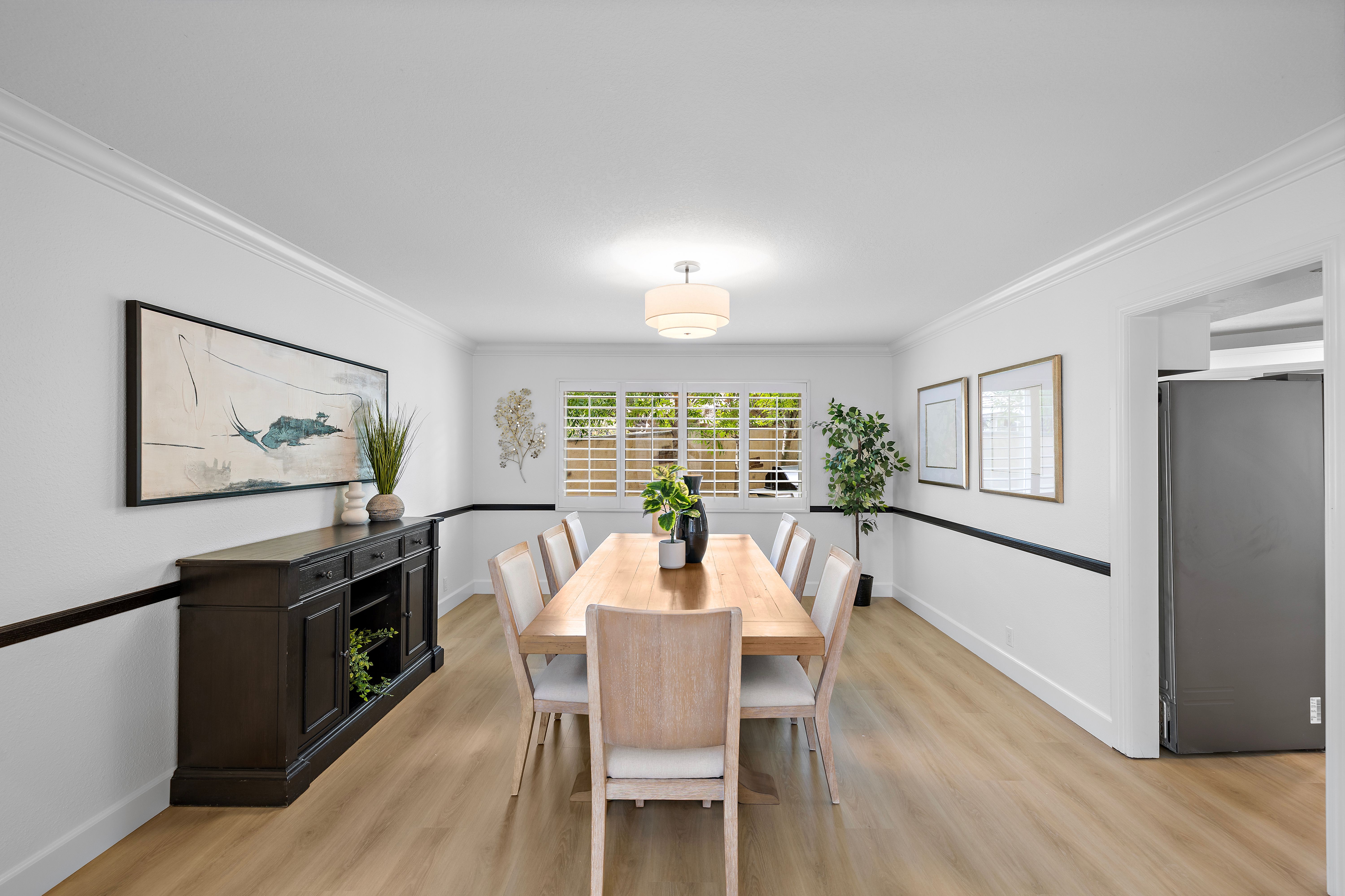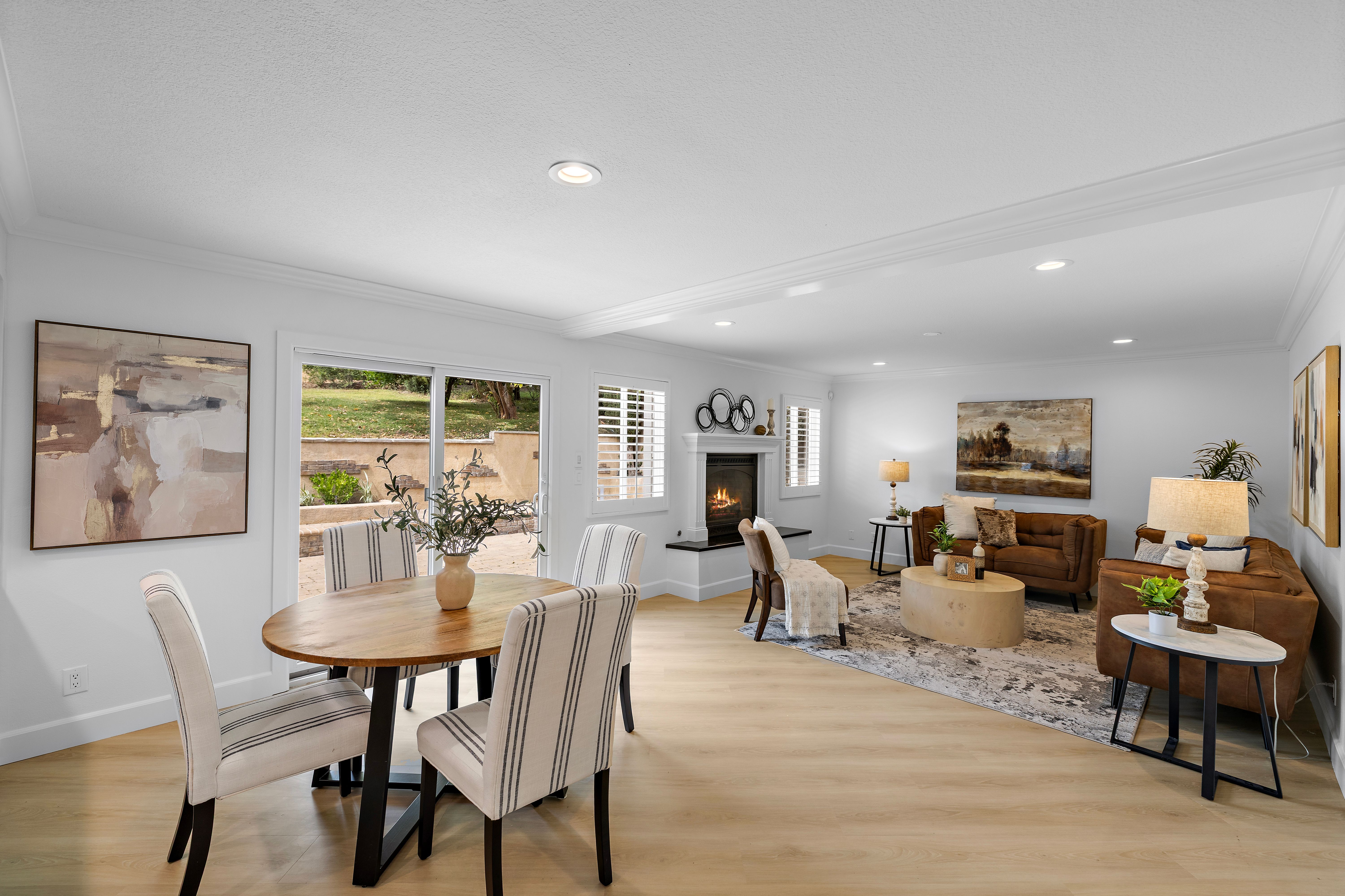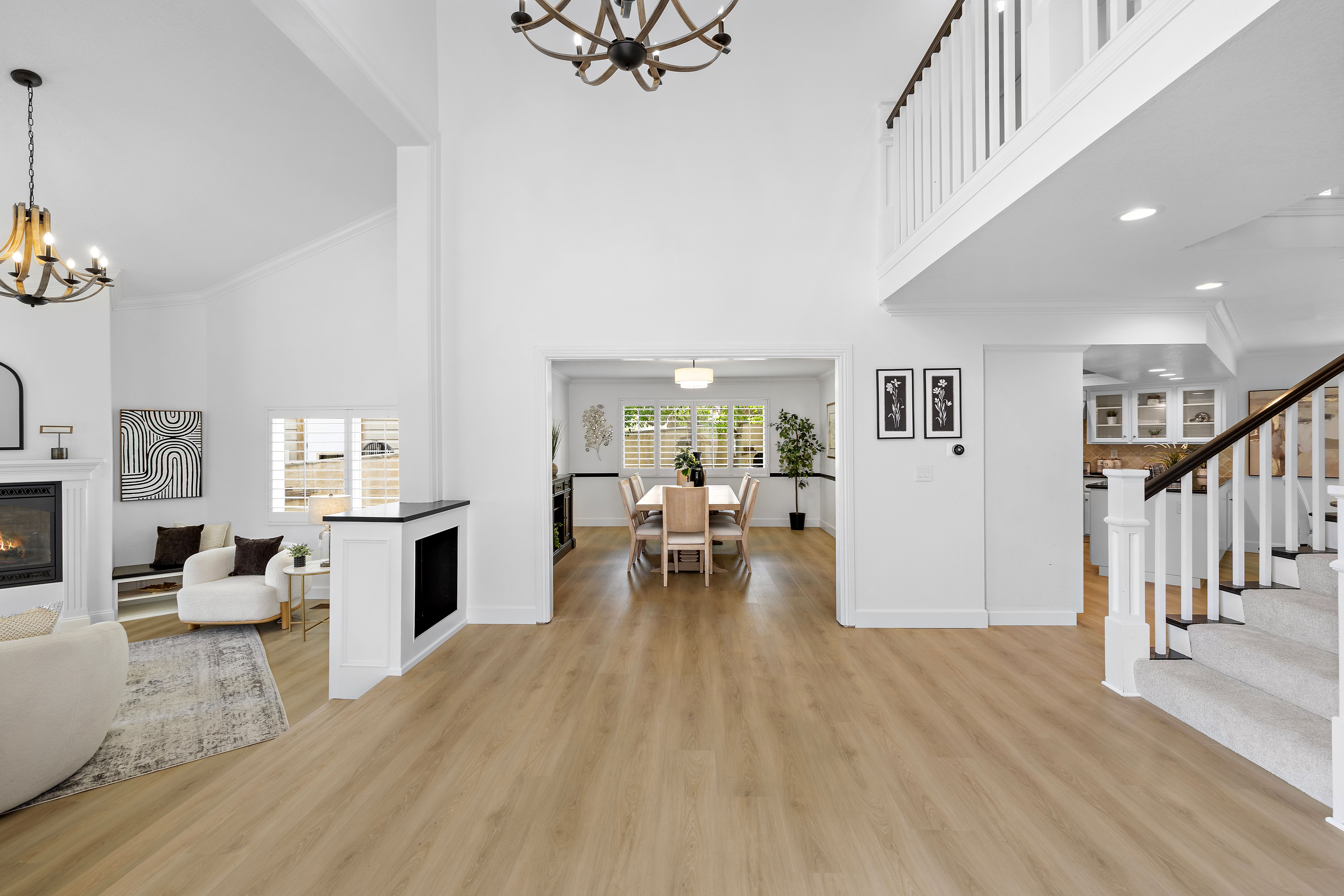 Nestled within the charming Village community of Coto de Caza, 31661 Via Coyote offers a beautifully appointed 5-bedroom, 3-bathroom home that blends comfort, space, and timeless design—enhanced by owned Tesla solar panels with a battery Powerwall for energy efficiency. Featuring a highly desirable floor plan, the home includes a main-level bedroom and full bathroom—perfect for guests, multi-generational living, or a private office. Step through the inviting entry into a stunning foyer with soaring ceilings and gorgeous custom trim work, setting the tone for the elegant interiors. The spacious living room is filled with natural light and anchored by a cozy fireplace, while the formal dining room provides an elegant space for hosting and entertaining. The eat-in kitchen opens seamlessly to the family room, creating an ideal layout for everyday living and gatherings. Upstairs, the expansive primary suite is a true retreat, complete with its own fireplace, a generous sitting area ideal for a home office or lounge, and a luxurious spa-inspired bathroom featuring a jetted soaking tub, separate shower, and a large walk-in closet. Three additional upstairs bedrooms and a large bathroom offer ample space and flexibility for family or guests. The serene backyard is a peaceful escape, beautifully finished with pavers and thoughtfully designed seating areas—perfect for relaxing and taking in the natural surroundings. Numerous mature fruit trees enhance the setting, creating a private, tranquil outdoor retreat. Ideally located in the sought-after Village neighborhood, this home enjoys a quiet and natural setting while remaining close to all the amenities that make Coto de Caza such a special place to live.