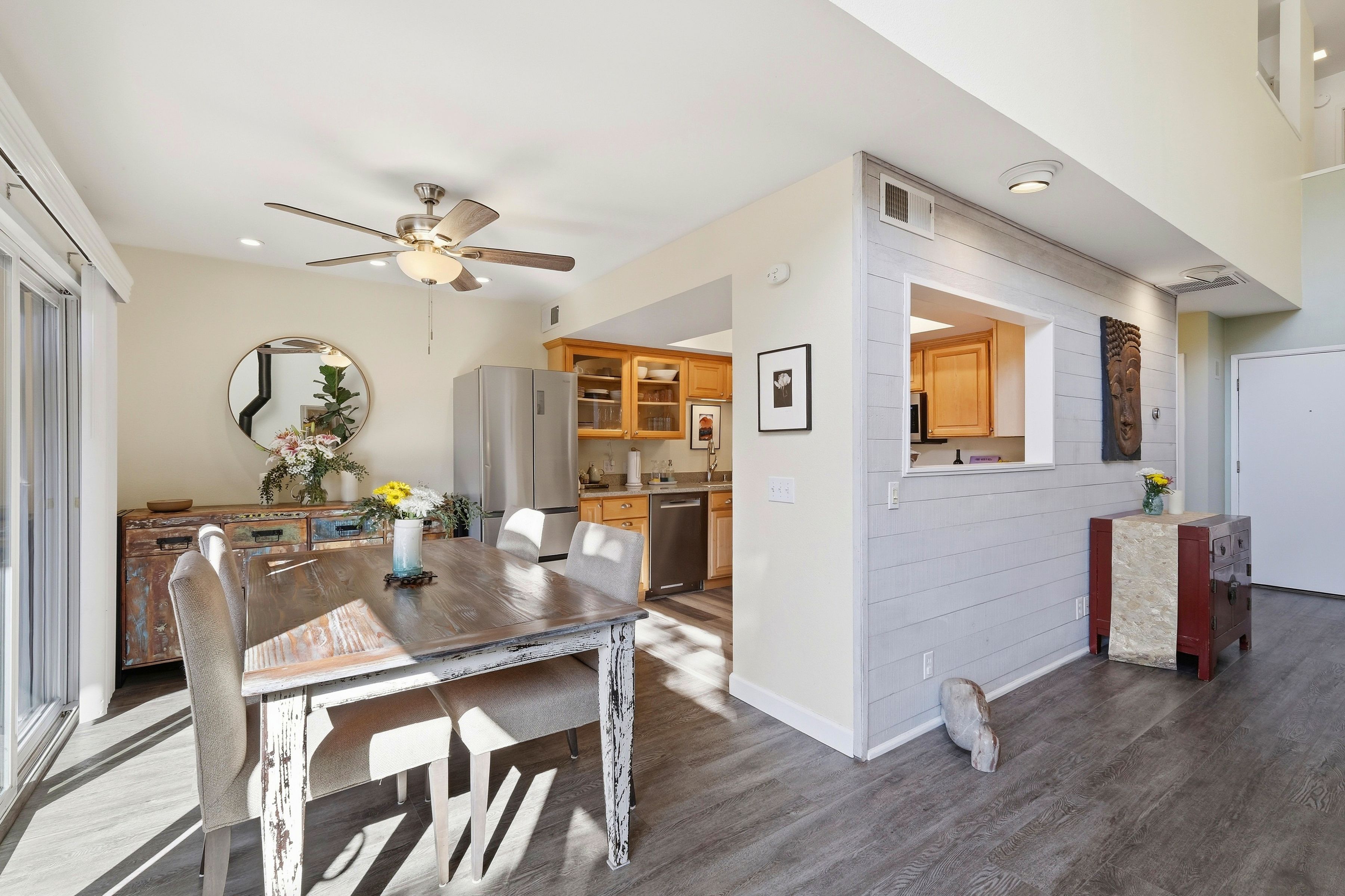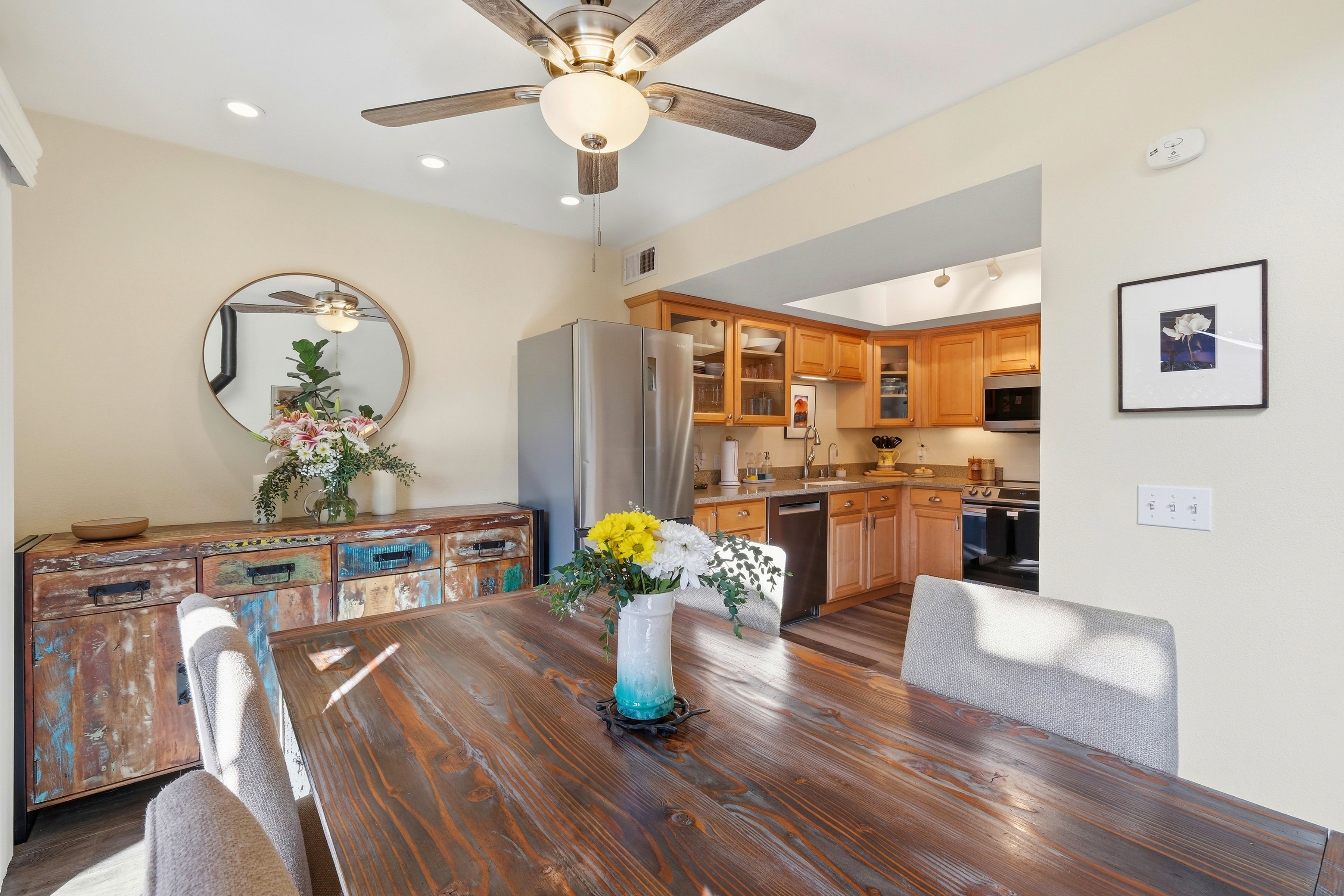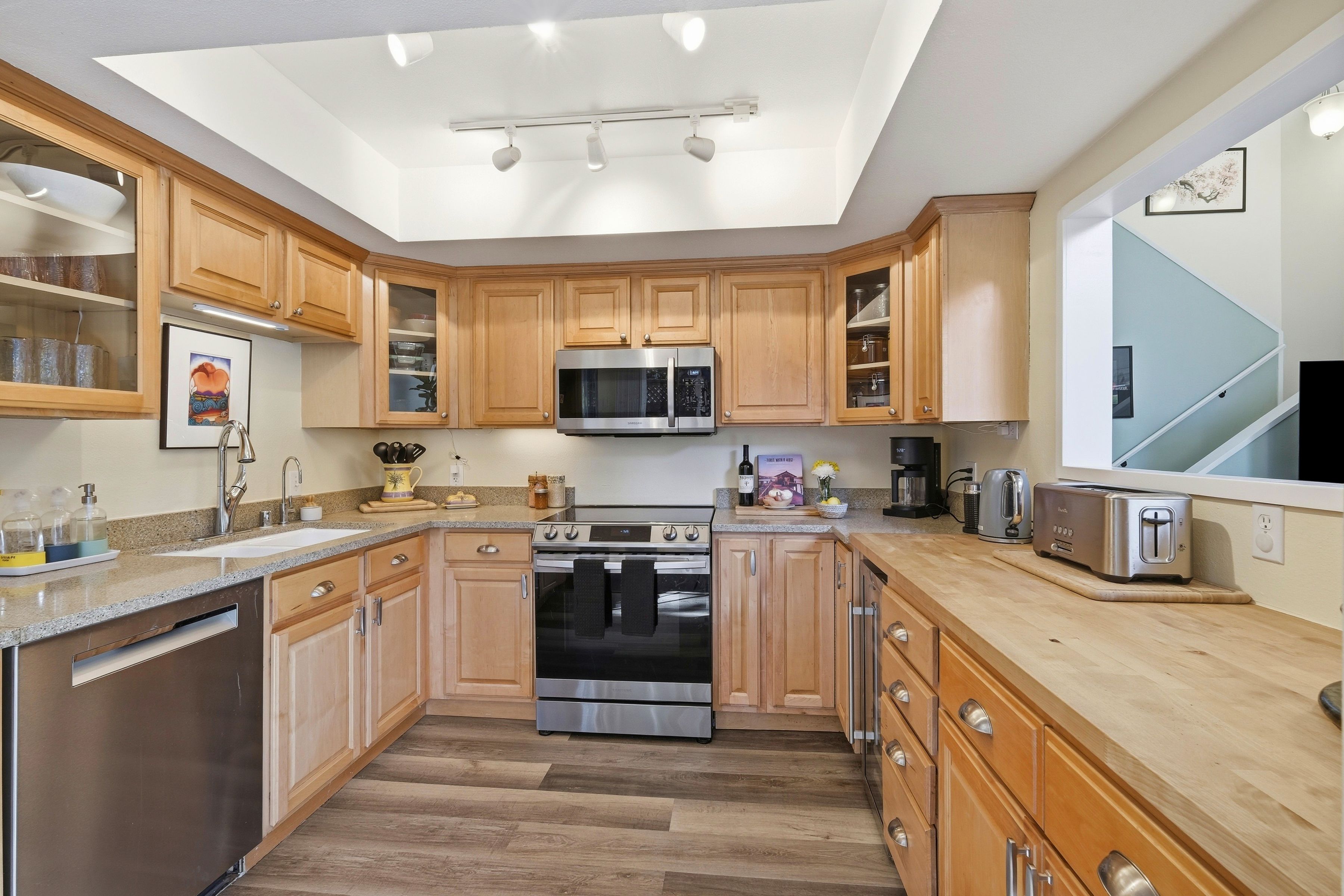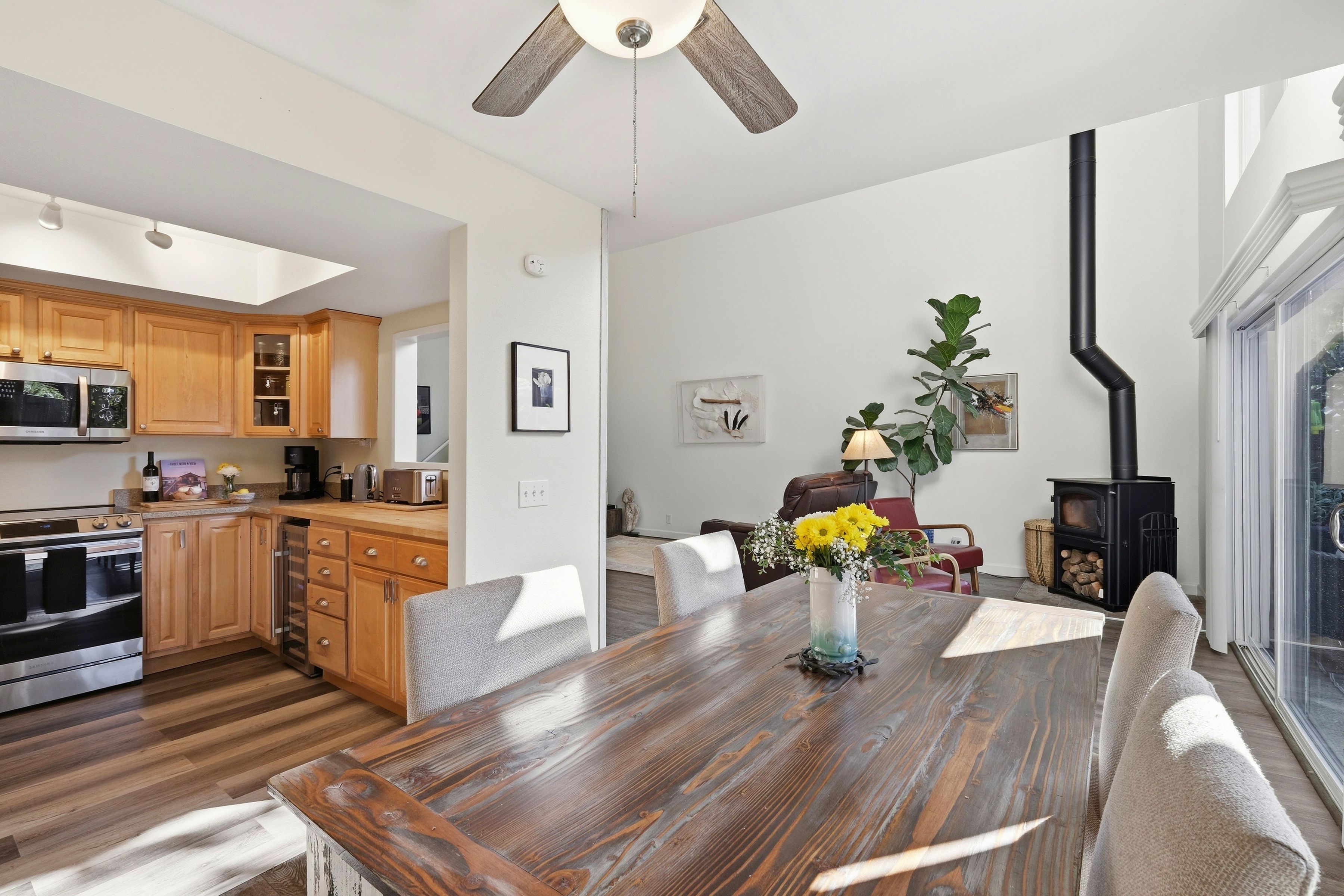This beautiful, well appointed home offers a comfortable layout with thoughtful upgrades throughout. The updated kitchen features refreshed cabinetry and countertops, a Samsung electric stove with airfry capability (2020), refrigerator (2020), and Bosch dishwasher (2026), along with a custom wine and drink cabinet added in 2023 that enhances everyday living and entertaining. Major system upgrades include Alterra solar panels and an EV charger installed in 2020, plus a new gas heater and ductwork completed in 2020. The former woodburning stove was replaced in 2023, adding to the homes modern efficiency and comfort. The primary bathroom features radiant heated floors, and the home is equipped with a wholehouse water purification system, along with a RO drinking water system at the kitchen sink. Additional highlights include a functional floor plan, comfortable living spaces, and practical upgrades that support modern lifestyles. Residents also enjoy access to a newly remodeled community pool, spa, and cabana, completed between 2021 and 2022, providing a resortstyle amenity close to home. With its combination of updates, energy efficiency, and community amenities, 5525 Scotts Valley Drive presents an excellent opportunity to enjoy convenient and comfortable living in Scotts Valley.