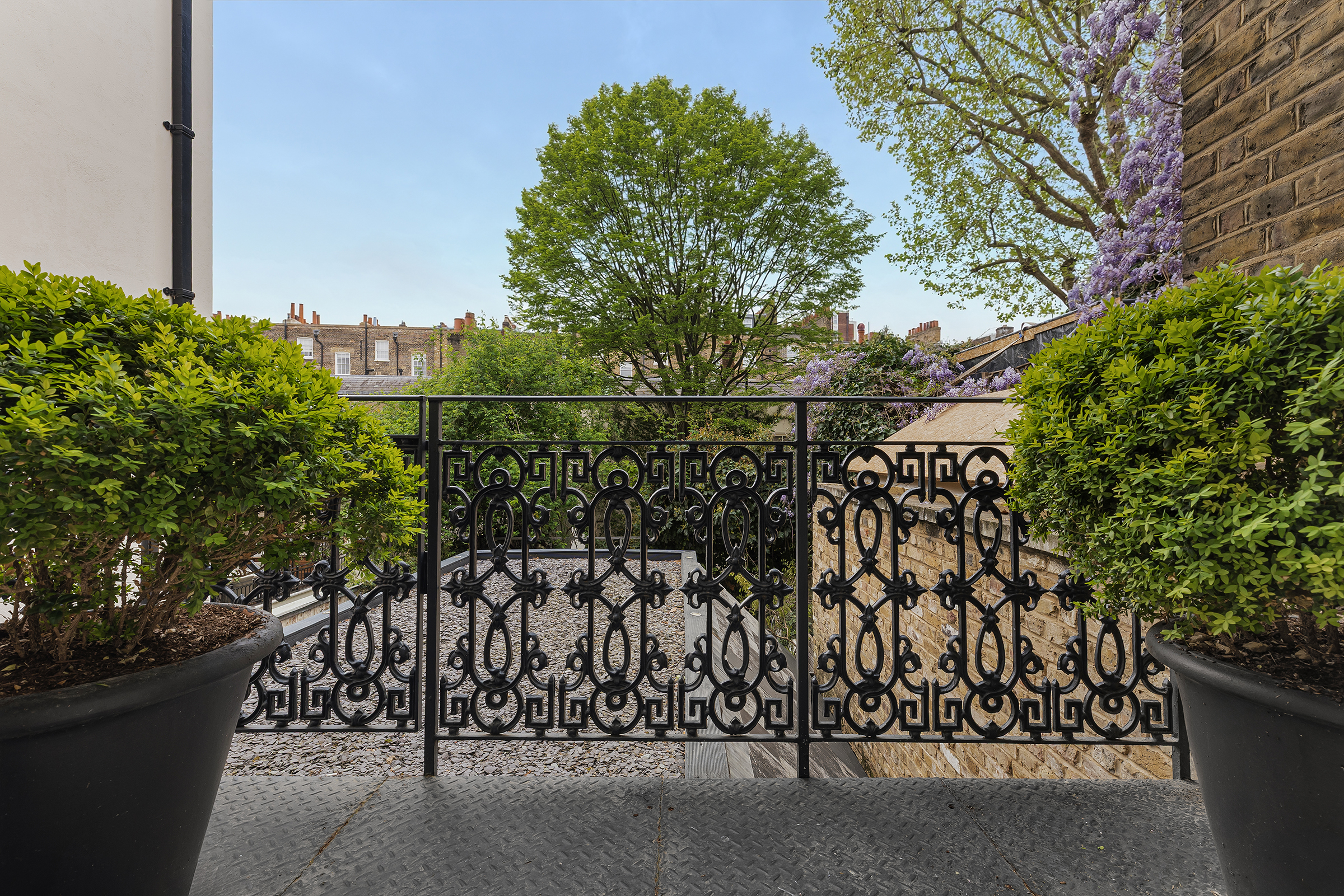 Positioned along the preferred south side of Gerald Road, this beautifully proportioned five-bedroom townhouse unfolds across multiple floors defined by a classical sensibility. Behind its white stucco façade, the house offers over 3,000 sq ft of well-balanced accommodation, where natural light and thoughtful planning shape each space.