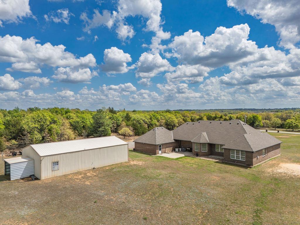 Welcome to your private retreat at 18831 Rockcreek Rd in Harrah - an exceptional executive brick home on 5.33 acres with the perfect blend of wooded beauty, open pasture, and everyday comfort. Located in Choctaw Schools and less than 2 miles from the Kickapoo Turnpike, this property offers peaceful country living with quick access to the city - just 22 minutes to Tinker AFB and 27 minutes to Bricktown. Inside, you'll find 4 bedrooms, 3 full baths, 2 living areas, and 2 dining areas, with large windows and abundant natural light throughout. The home has been freshly painted throughout, including the garage, and features new carpet, double ovens, a new garage patio storm door, a ceiling fan in the garage, and forever filters in the air returns that can simply be rinsed and reused. The primary suite is a true retreat with a luxury bath featuring a new quartz tub surround and double vanities. For added peace of mind, the roof was replaced in 2024. Step outside and enjoy the beauty and versatility of the land, complete with a pond, fenced sides, and a wonderful mix of mature trees and open space. The impressive 30x50 shop offers endless possibilities, with half dedicated to shop space and the other half finished as 1-bedroom guest quarters with a full bath and laundry area. With new tile floors, fresh paint, and updated light fixtures, this flexible space would also make an ideal art studio, home office, or private guest suite. An in-ground 8x12 storm shelter adds even more value and security. Located in Rock Creek Estates, a scenic neighborhood with approximately 27 lots and only around 11 homes built, you'll appreciate the space, privacy, and quiet surroundings. HOA dues are just $180 annually for maintenance of the private road. This is a rare opportunity to own a beautifully updated home with acreage, a shop, guest quarters, and an unbeatable location.