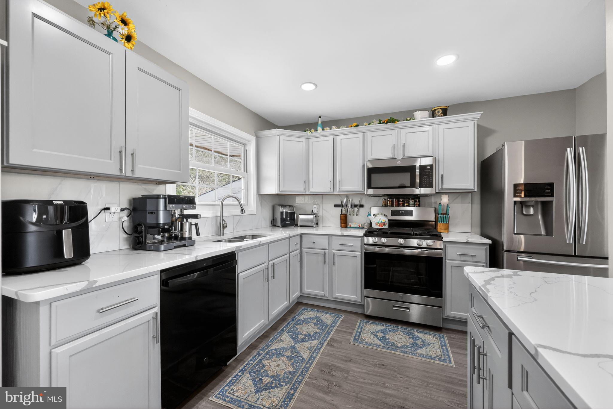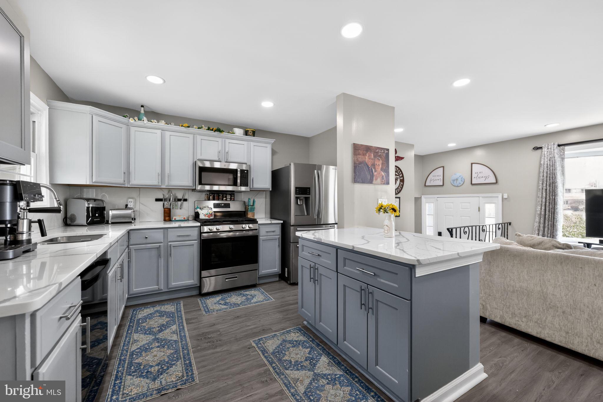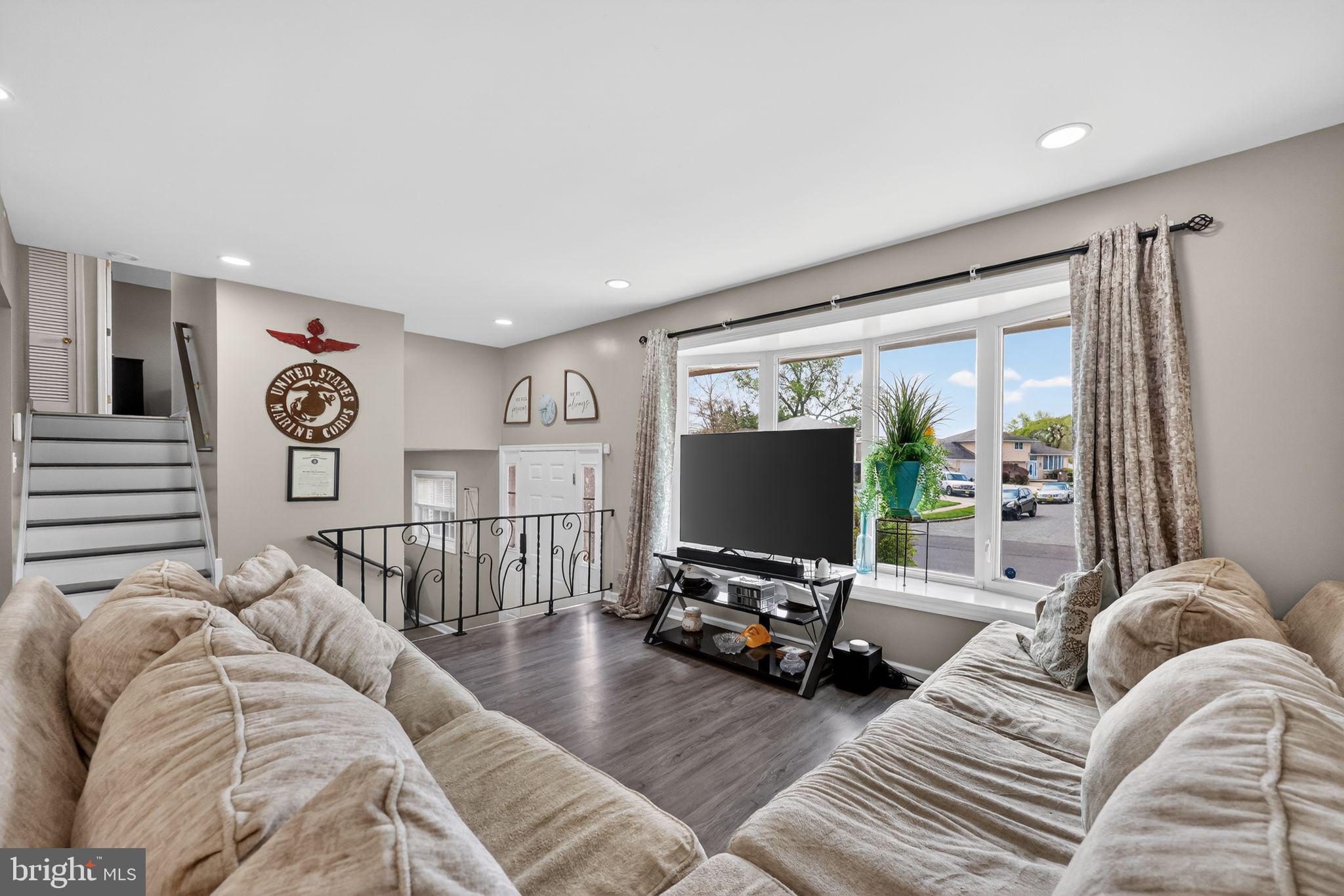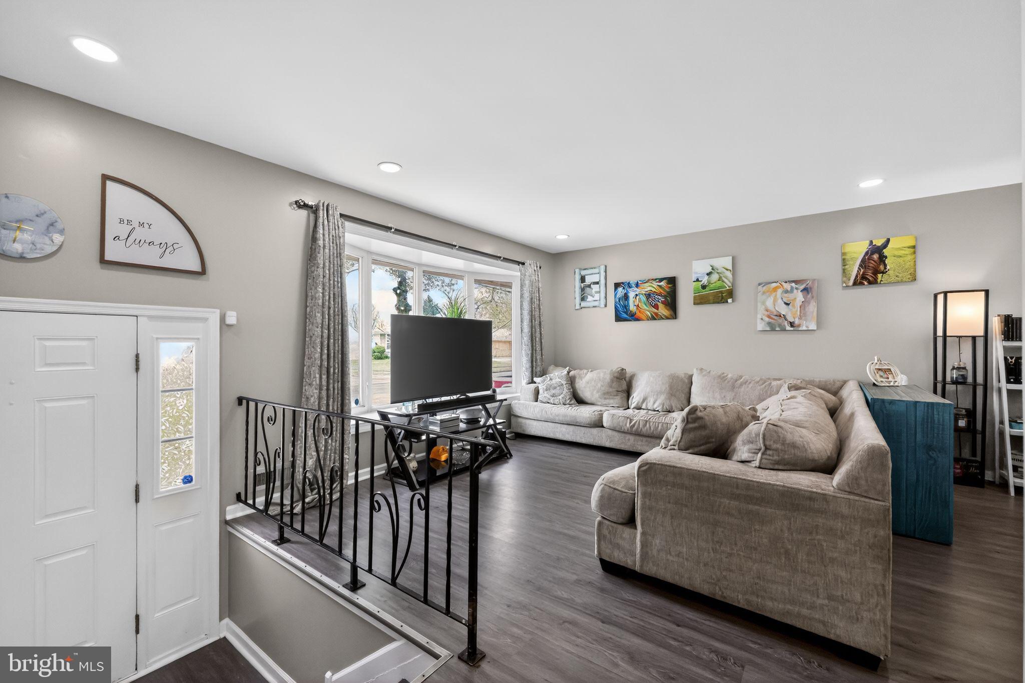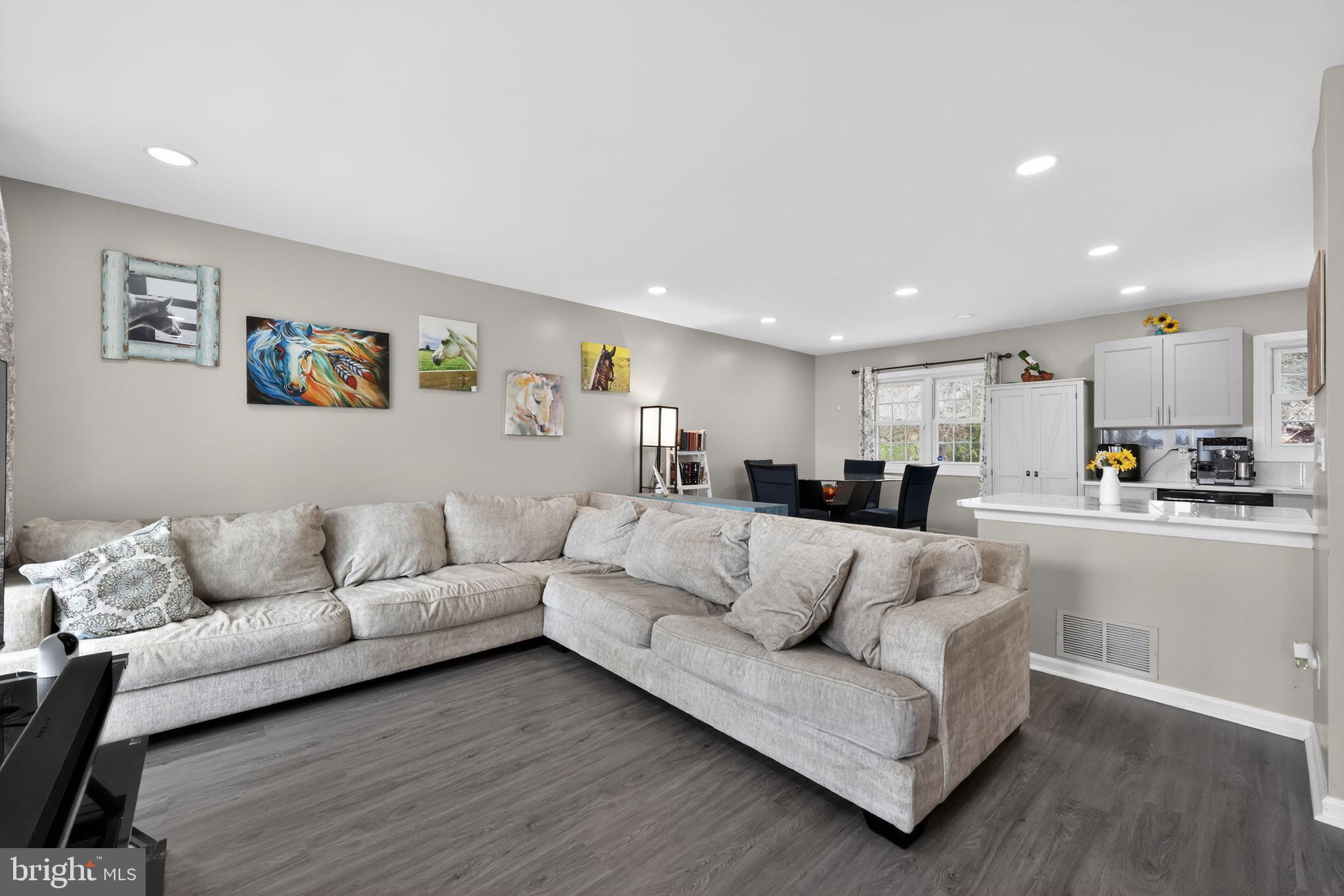 Beautifully updated split-level home in the White Birch neighborhood of Glendora. This residence features an open-concept living and dining area highlighted by a modern kitchen with elegant white quartz countertops and neutral cabinetry. The home offers four bedrooms and two full bathrooms, including a renovated second-floor bathroom featuring a marble vanity and seamless shower doors. With two spacious living areas located on the main and lower levels, the property provides ample space and contemporary finishes throughout.Exterior features include a large backyard ideal for entertaining and a one-car garage equipped with an EV hookup. The property is conveniently situated for commuting to Philadelphia with easy access to major highways.
