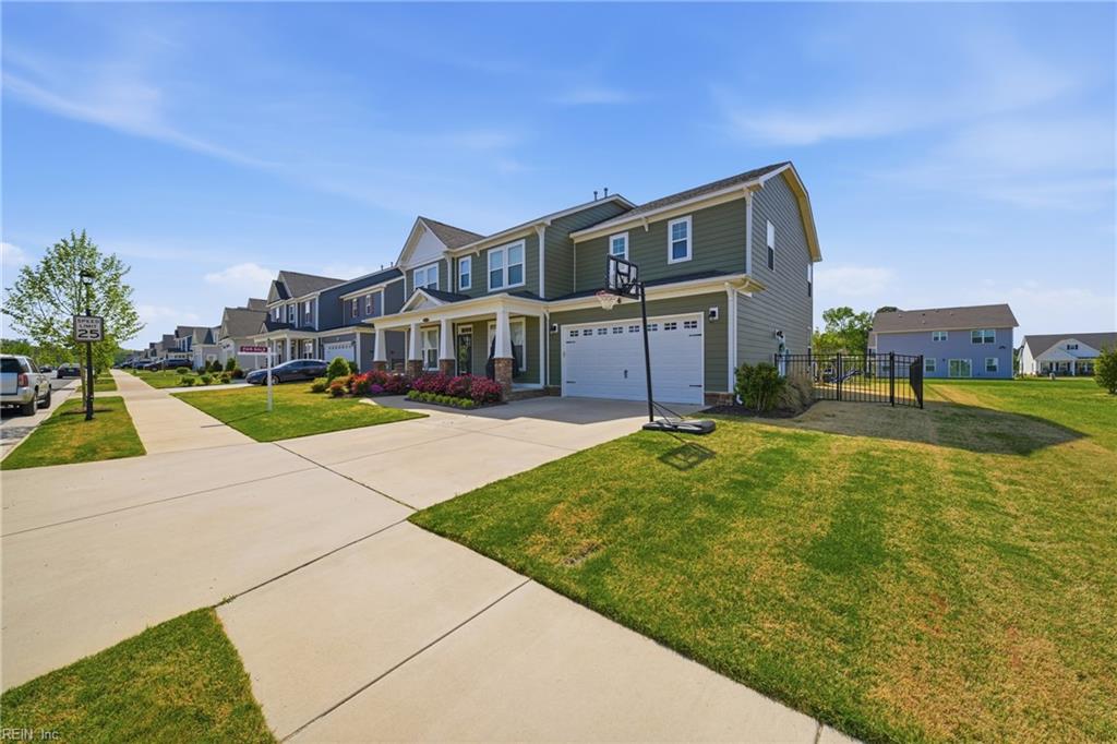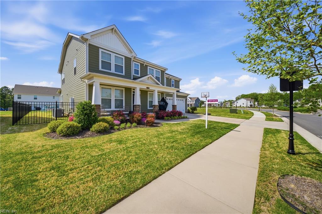 Luxurious Craftsman-style home on a prime corner lot in a sought-after neighborhood, offering modern design and everyday comfort. This 5-bedroom home features a first-floor guest suite and private home office with French doors. The gourmet kitchen includes quartz countertops, custom cabinets, gas cooktop, stainless steel appliances, large island, and walk-in pantry, opening to a spacious great room and breakfast area. The primary suite offers a tray ceiling, spa-like bathroom, and walk-in closet. Additional highlights include a second-floor laundry room, screened-in patio, fenced backyard, and storage shed. Community amenities include trails, playgrounds, picnic areas, and pickleball courts. Conveniently located near top-rated schools, shopping, dining, interstates, and military bases.