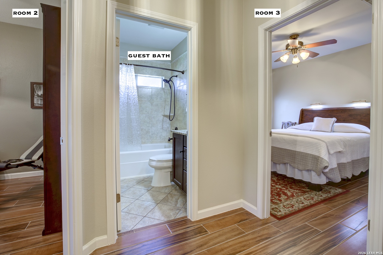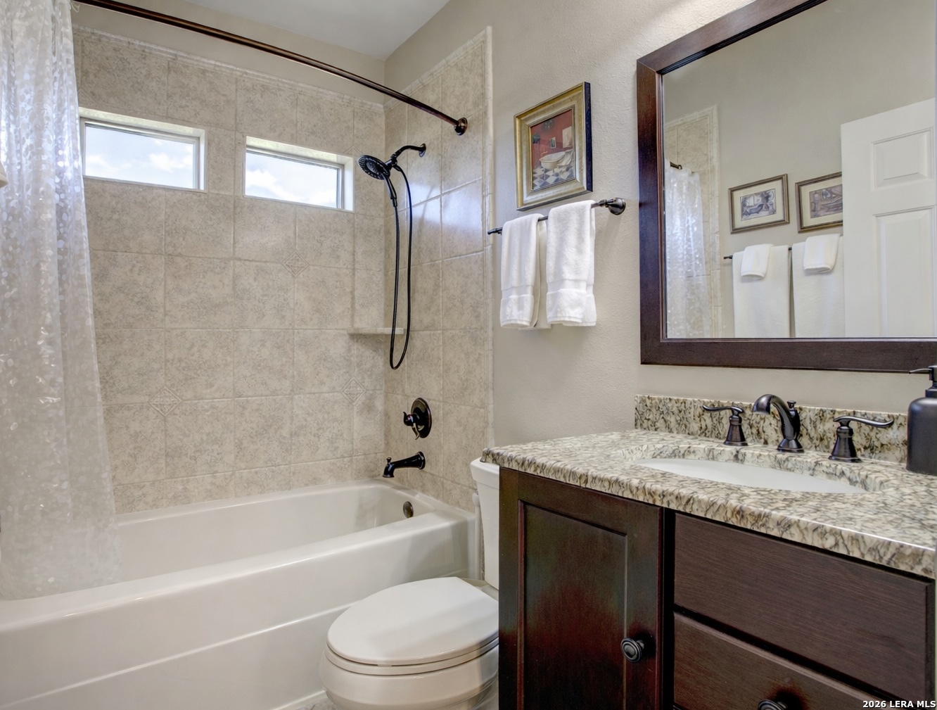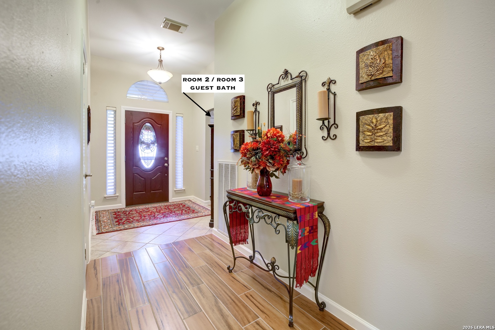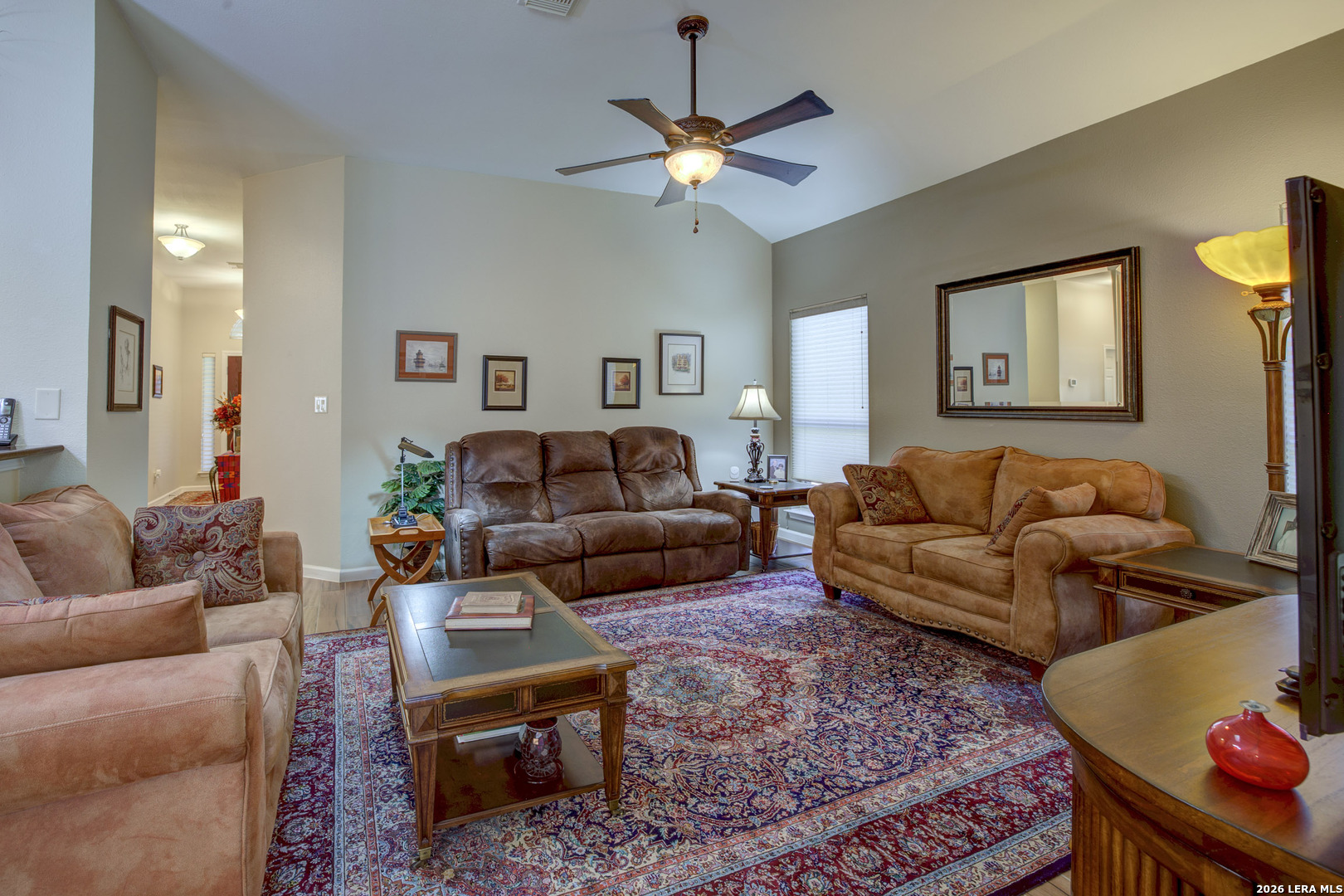 Cute garden home in 55+ community of Scenic Hills in Schertz. (one owner must be over 55). This home has 3 bedrooms, 2 bathrooms, ceramic and wood tile flooring throughout (no carpet), window coverings, generous kitchen storage, granite countertops, and an office/sunroom off the dining area. Outside you have 4 side brick masonry, 2 car garage with epoxy flooring, full gutters and large shade tree. HOA fee covers complete front and back yard maintenance - mowing, edging, watering, and sprinkler upkeep - so there is nothing to worry about outside your front door. The 24/7 staffed gate keeps the community private and secure, and full access to the clubhouse, pool, fitness center, and all amenities is included. Each homeowner also receives one complimentary secure storage space for an RV/boat with electronic access. On top of all that, a packed social calendar means a built-in community is right outside your door. Active living with small town charm.