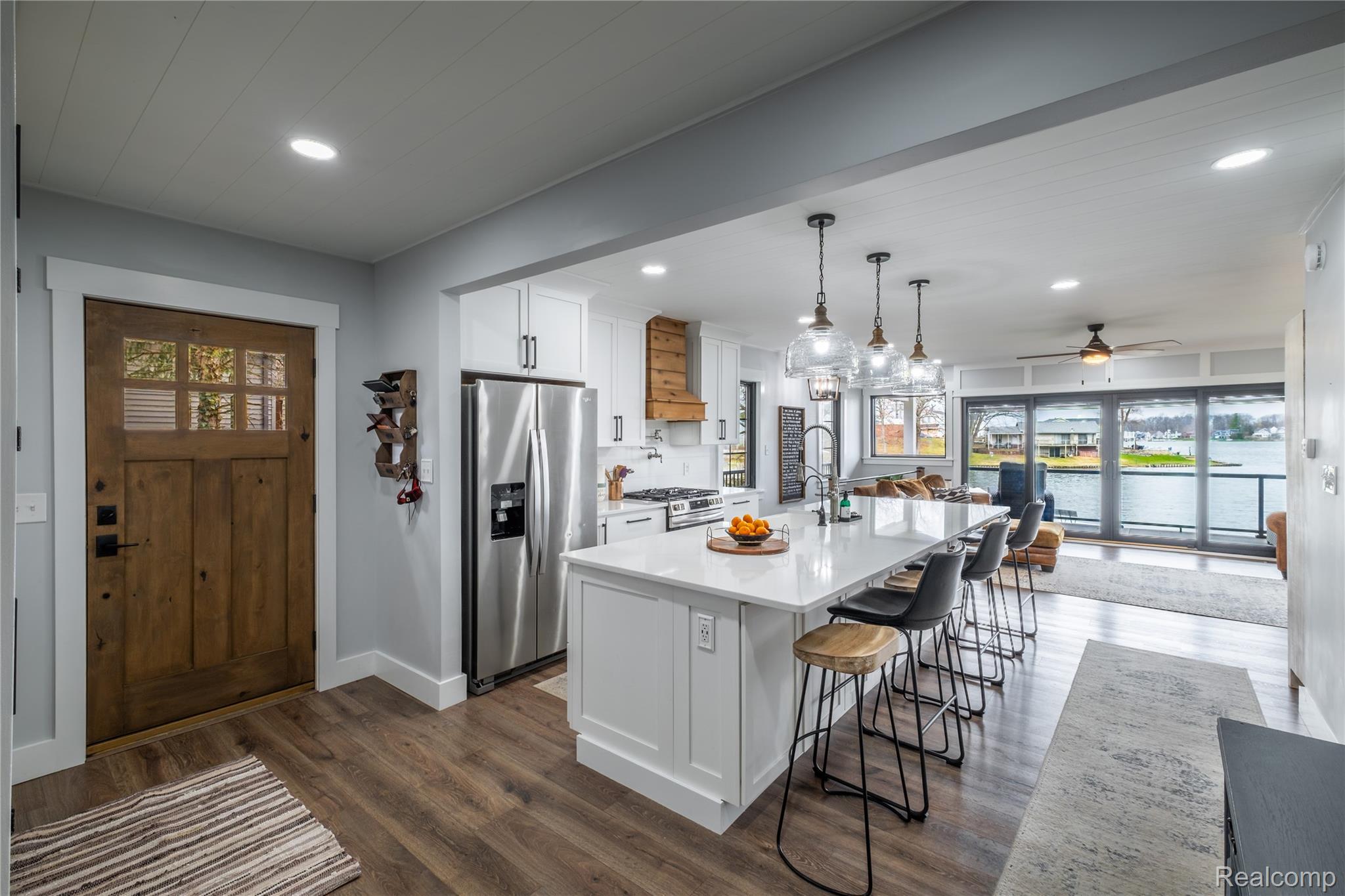 Lake life starts here! Welcome to 16436 Hilltop Drive in Linden, MI. An absolutely stunning, fully remodeled walkout ranch on all-sports Lobdell Lake. From the moment you step inside, you're greeted by a bright, open-concept layout designed to make the most of every inch, featuring a show-stopping 11-foot island, beautiful finishes, and panoramic lake views that steal the spotlight. This 2-bedroom, 2.5-bath home was thoughtfully renovated from top to bottom, offering true peace of mind with a new metal roof, Pella windows and doors, updated kitchen and baths, new life proof flooring, siding, insulation, and more. The walkout lower level provides additional living space with a cozy family room, non conforming bedroom, and half bath, perfect for guests after a long day on the lake. Whether you're entertaining on the brand-new composite deck with glass railing, relaxing on the patio just steps from the water, or enjoying sunset views from inside, this home was made for unforgettable Michigan summers. The only thing missing is you. (Other updates include Gutter guards, All new appliances, lighting and fixtures as well)