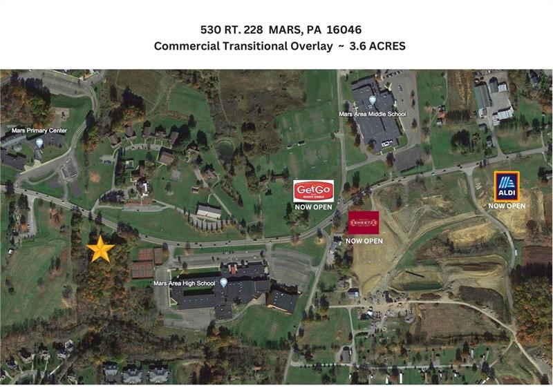Over 400 feet of frontage on Rt. 228. Fantastic opportunity for commercial development along rapidly expanding State Route 228 in Adams Township. Zoned transition overlay. Ideal location nestled between schools, high traffic retail and residential developments. Multiple uses. Water and sewage available. Trees have been cleared from the property. Neighboring property is a golf center - green #3 is part of subject property.