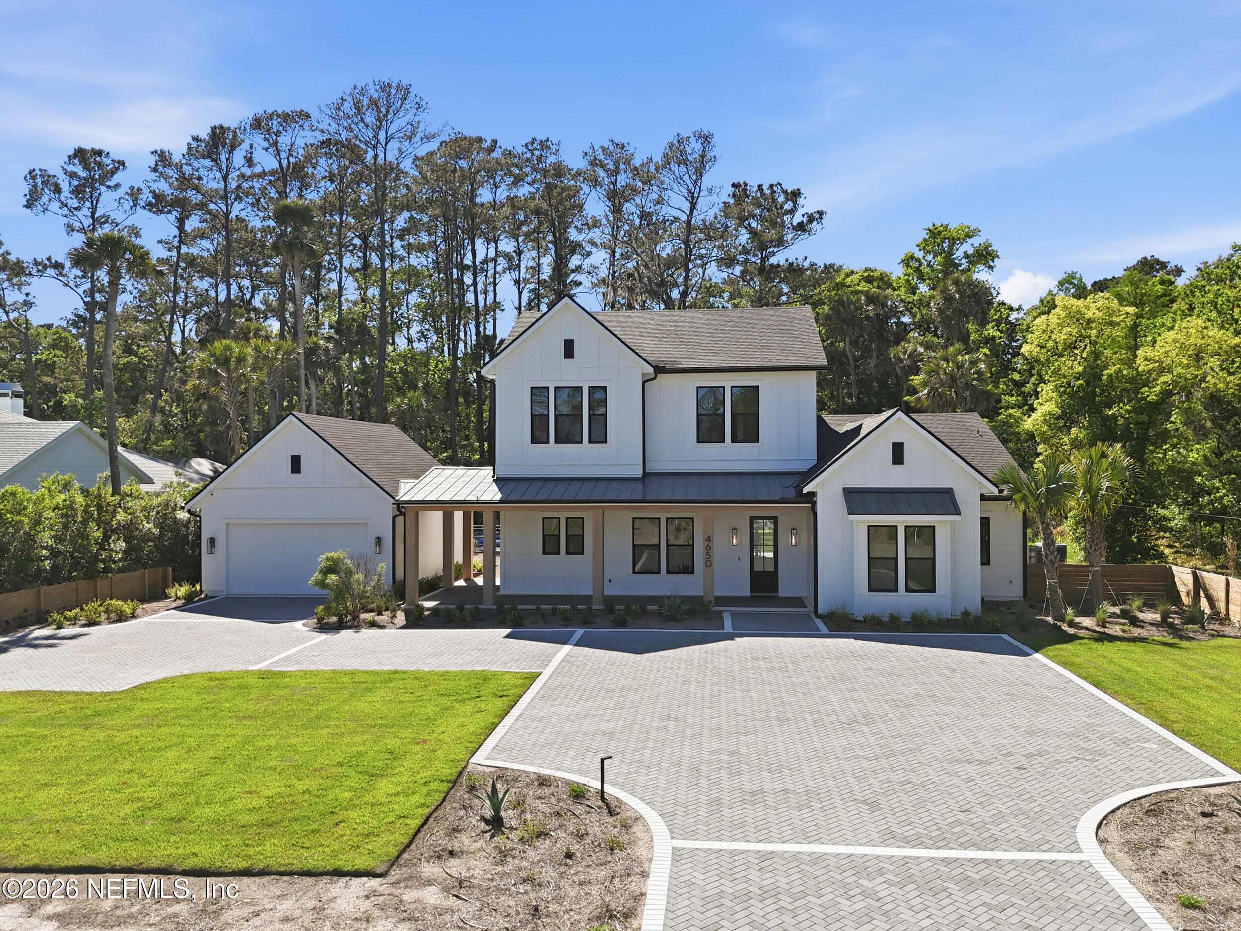 There is a different rhythm to this stretch of Palm Valley Road. More space. More privacy. A setting that feels removed, yet still connected to everything that defines Ponte Vedra Beach. Set on more than 1.05 acres, this modern farmhouse, completed just last May, offers something increasingly rare, the feeling of new construction paired with land, privacy, and room to live beyond the walls of the home. A place where mornings feel quiet, evenings unfold naturally, and outdoor living becomes part of your everyday rhythm. From the moment you arrive, the setting defines the experience. Mature trees create a sense of seclusion, while the home itself opens with light, volume, and an effortless flow that feels both refined and livable. Inside, more than 3,800 square feet unfolds with wide plank wood floors, soaring ceilings, and a natural connection to the outdoors at every turn. At the center, the kitchen is designed as both a gathering place and a workspace, anchored by an oversized island, Thermador appliances, and a butler pantry tucked just beyond, allowing everything to function beautifully behind the scenes. Living and dining spaces move seamlessly together, extending toward the covered patio where mornings begin quietly and evenings settle in with ease. The layout is both thoughtful and highly functional. The primary suite is located on the main level, along with a second bedroom and a dedicated office, creating flexibility for guests or working from home. The primary suite itself is a retreat, with a spa like bath and a calm connection to the landscape beyond. A spacious laundry room supports the rhythm of daily life without interruption. Upstairs, three additional bedrooms, two full baths, and a loft come together to create a separate living space that feels ideal for family or guests. Whether used as a media room, playroom, or quiet retreat, the loft adds another dimension to the home's design. Outside, the experience shifts. The scale of the land allows for something rarely found in Ponte Vedra Beach, space not just to design, but to live. A newly installed pickleball and basketball court introduces a natural gathering place, where afternoons turn into evenings and time with friends and family unfolds with ease. And still, there is room for more. The remaining acreage offers a blank canvas for a custom pool, guest house, or a fully realized outdoor living environment, all without compromise. And yet, for all of its space and privacy, you are only minutes from the beach, TPC Sawgrass, and the area's most sought after dining and shopping. Zoned for top rated St. Johns County schools, the location offers both convenience and long term value. A newer home, land to grow into, and a setting that allows you to live differently. This is where space, design, and lifestyle come together in a way that is no longer easy to find.