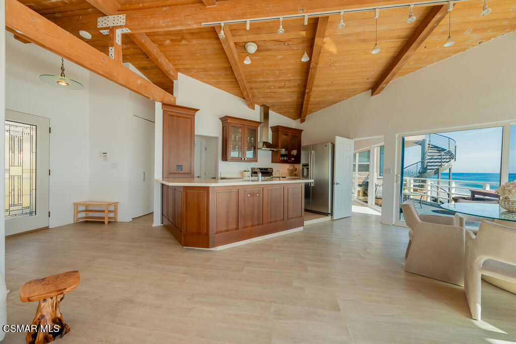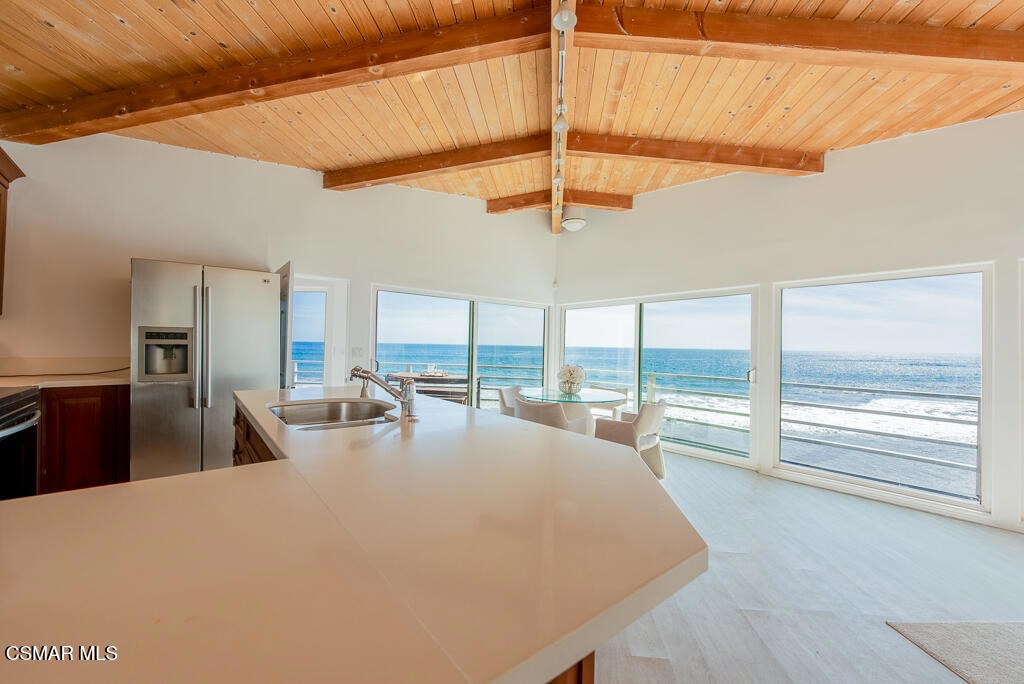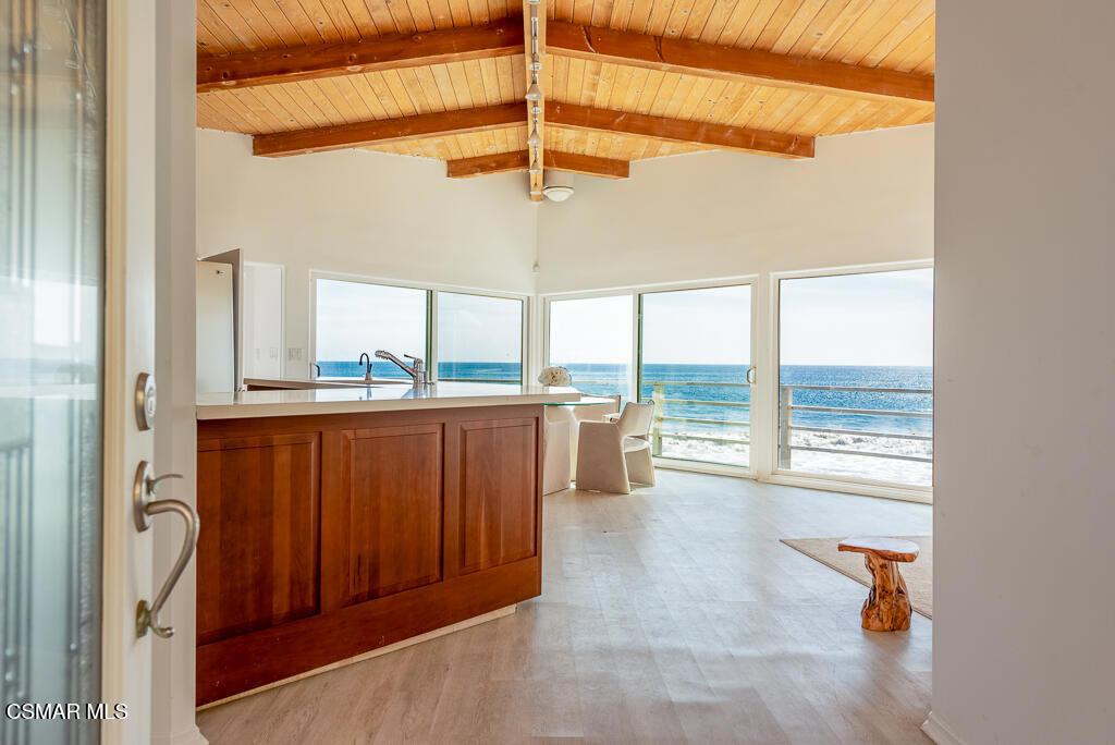 Welcome to 43300 Pacific Coast Highway, a rare fully furnished beachfront retreat along Malibu's coveted coastline offering approximately 60 feet of prime ocean frontage. This pristine coastal cottage captures sweeping, unobstructed panoramic views and sits just moments down the sand from the iconic surf break at County Line. Designed for effortless indoor-outdoor living, the open-concept floor plan flows seamlessly to an expansive beachfront deck-perfect for entertaining, relaxing, and enjoying breathtaking sunsets over the Pacific. Inside, the home features three bedrooms and two bathrooms, highlighted by charming wood-vaulted ceilings, an open kitchen with a breakfast bar, and an oceanfront dining area that showcases the stunning surroundings. The outdoor setting invites true coastal living, where the sound of the waves and fresh ocean air create a peaceful, private escape. A rare offering that captures the very best of Malibu's beachfront lifestyle.