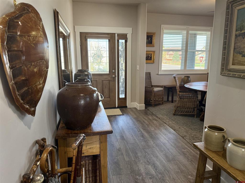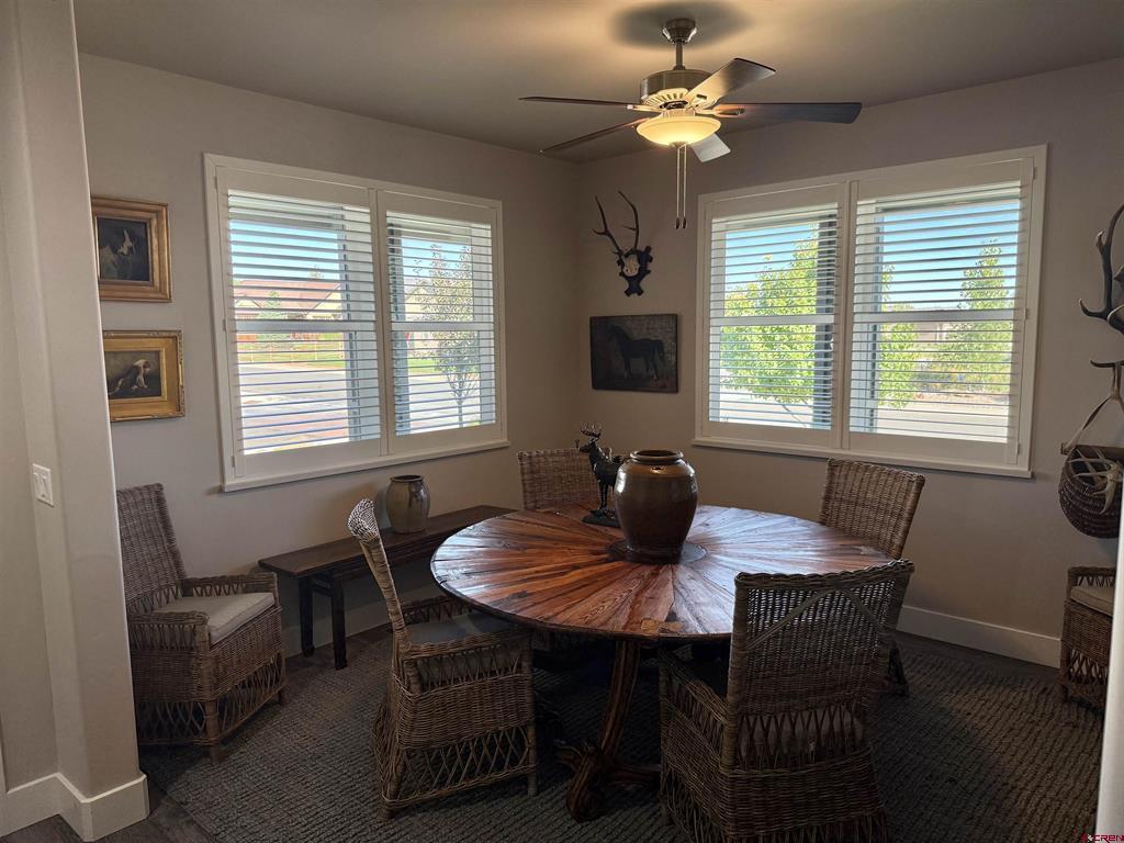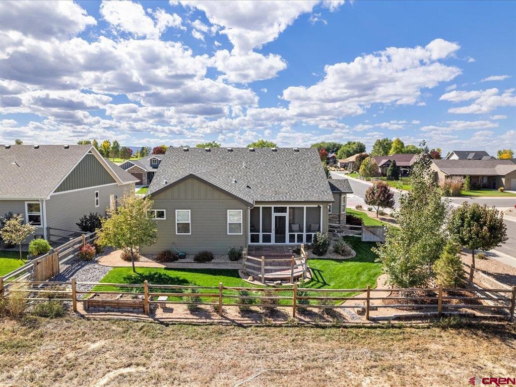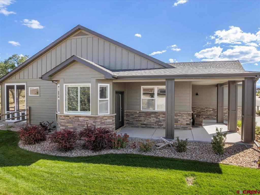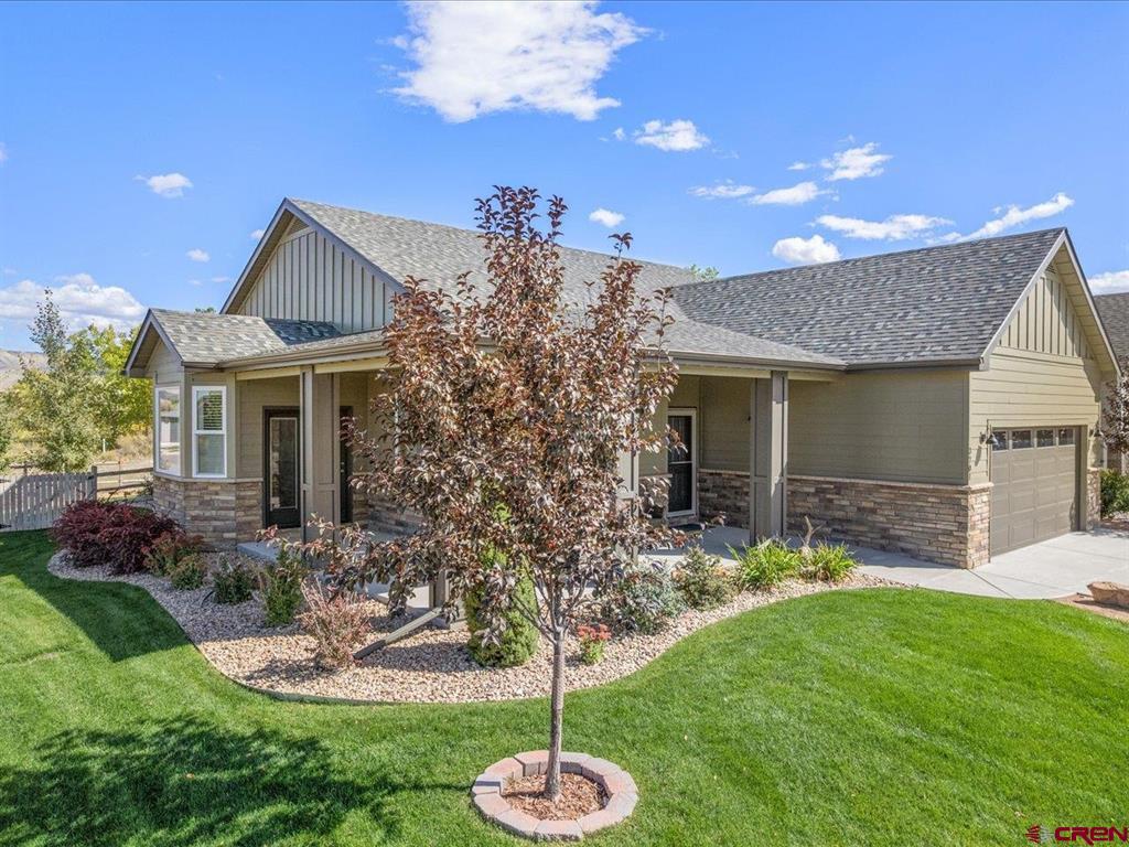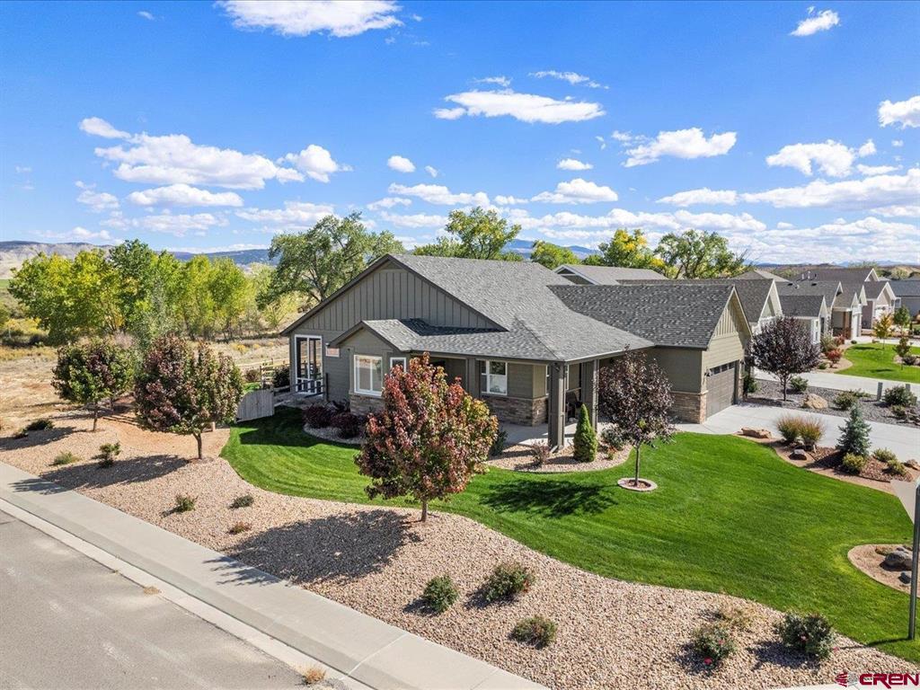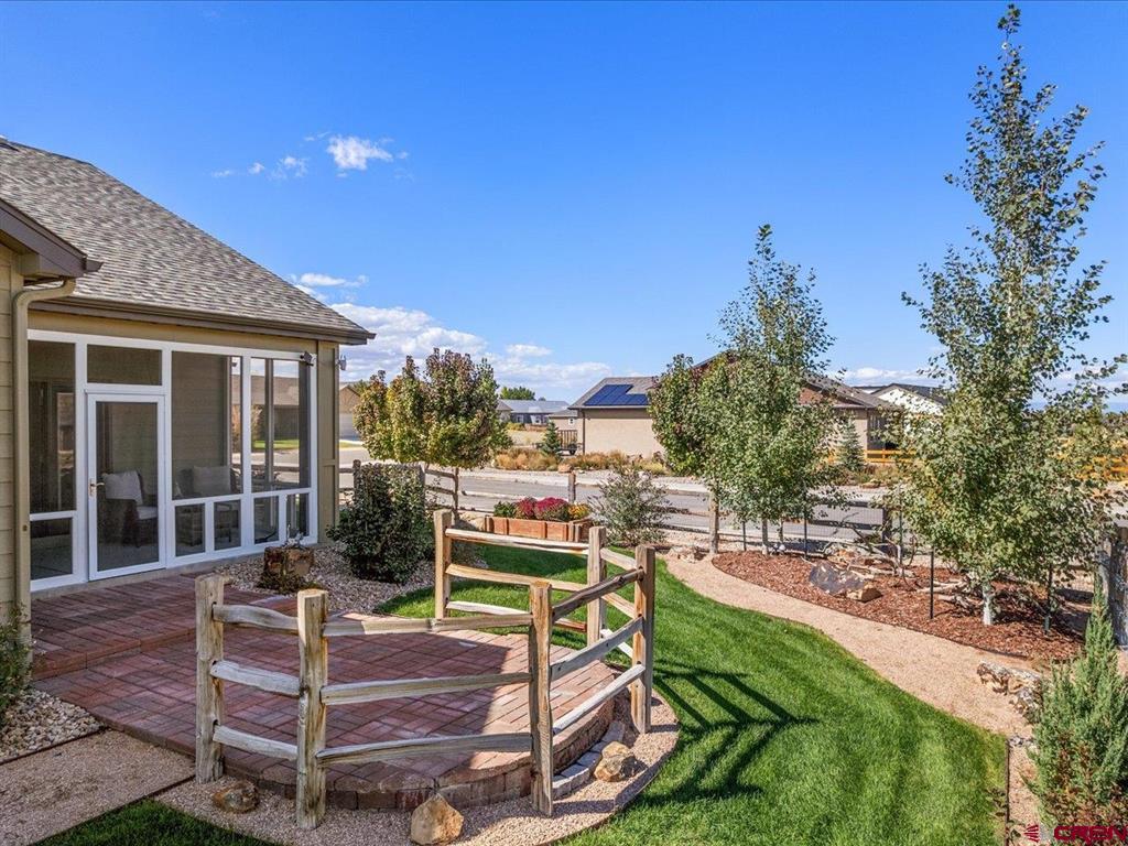 Immaculate ranch style patio home featuring a stunning backyard, exceptional landscaping, breathtaking views, and high-end finishes throughout. Enjoy a low-maintenance lifestyle with exterior landscaping, irrigation, and snow removal included - plus the rare benefit of a fully fenced backyard. This like-new home has been meticulously cared for and offers a thoughtfully designed layout with 3 bedrooms, 2 bathrooms, and a versatile flex space ideal for a home office, gym, or studio. New interior and exterior paint, as well as a high efficiency Fujitsu heat pump, heat and air conditioner. The charming craftsman exterior delivers outstanding curb appeal, while the interior welcomes you with an open and functional floor plan. The kitchen is beautifully appointed with quartz countertops, custom soft-close shaker cabinetry, under-cabinet lighting, ample workspace, a large pantry, and a bright breakfast nook with access to the front porch. The living room impresses with vaulted ceilings, a custom quartz-accented built-in feature wall, and seamless access to the expansive back patio. The primary suite offers a luxurious retreat, complete with a spacious walk-in closet, dual vanities, a beautifully tiled walk-in shower, and private access to the backyard. Step outside to a true highlight of the home - a newly screened-in back porch overlooking a lush, landscaped yard with sweeping open-space views. This outdoor oasis includes ceiling fans, roll-down shades, and extends to a two-tier paver patio surrounded by aspens, pines, garden beds, and mature greenery. Located in the peaceful Brown Ranch community, this home offers tranquility just minutes from Montrose's top amenities, including healthcare, dining, shopping, recreation, breweries, art galleries, and scenic parks and trails. Experience elevated Colorado living with the ease and convenience of a low-maintenance patio home.