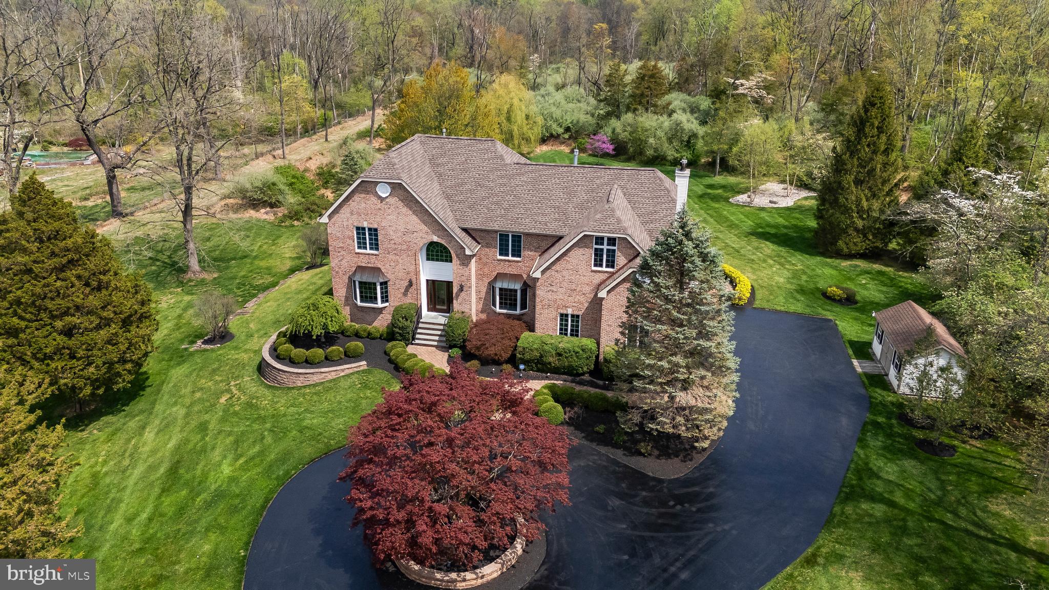 4.99 acres, preserved land views, 2001 custom build, skylit kitchen and family room, walkout finished basement, 3-car garage, rear deck. Set well back from the road on 4.99 landscaped acres in Hopewell Township with a Lambertville postal address, 80 New Road presents a polished country retreat defined by privacy, scale, and uninterrupted views of preserved land. A dramatic two-story foyer introduces interiors of generous proportion, where hardwood floors, abundant natural light, and a thoughtful balance of formal and casual spaces create a home that feels both elegant and inviting. The kitchen anchors the main level with cherry cabinetry, granite countertops, double ovens, a wraparound island, and skylights above, opening directly to the family room with fireplace and a wall of glass doors overlooking the rear grounds. Designed for effortless entertaining, the layout transitions beautifully from the formal dining room to the main gathering spaces and out to the rear deck, where the landscape becomes part of the experience and outdoor living feels private and serene. A dedicated office behind French doors offers flexibility for work or study, while the walkout finished basement provides substantial bonus space for recreation, fitness, media, or hobbies. Upstairs, the primary suite offers a spacious private retreat with a sitting room and a two-sided fireplace shared between the bedroom and sitting area, along with a renovated bath featuring a heated limestone floor. Everyday function is equally well considered with a 3-car garage and detached shed. Significant improvements include a new roof and all eight skylights in 2020, attic furnace in 2021, updated A/C systems in 2011 and 2021, natural gas conversion in 2015, whole-house generator in 2015, well pump replacement in 2016, reverse osmosis in 2019, and a Thermador double oven in 2023. Built in 2001, this 4-bedroom, 3.1-bath residence offers a refined blend of timeless design, modern comfort, and elevated country living.