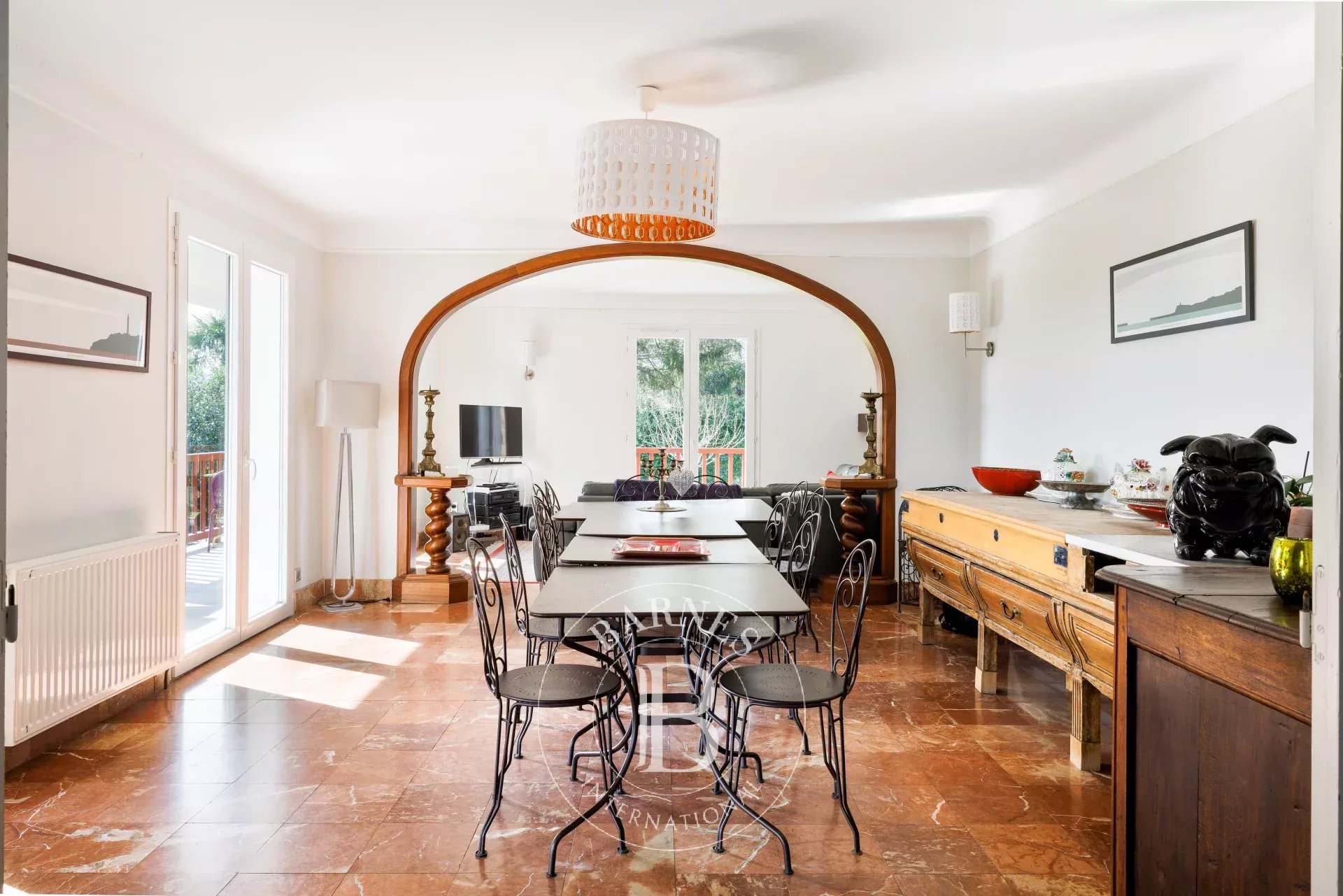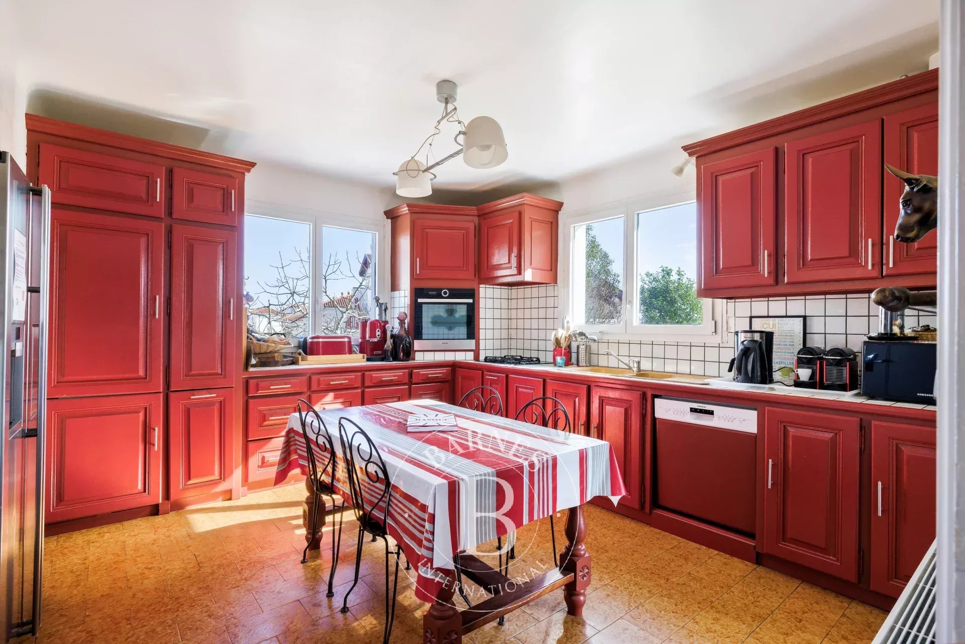 A few minutes walk from the city center of Ciboure, in a quiet cul-de-sac, a house of approximately 300 m² of living space on a plot of 1,250 m² with a view of the Rhune. The house is divided into 3 levels. A mezzanine of approximately 150 m² with a large garage as well as a part that can be converted into a dwelling. The ground floor consists of an entrance hall, a living-dining room, a kitchen, a storeroom, 3 bedrooms, a bathroom and a shower room. On the first floor, 5 bedrooms, a bathroom, a shower room and a kitchen.