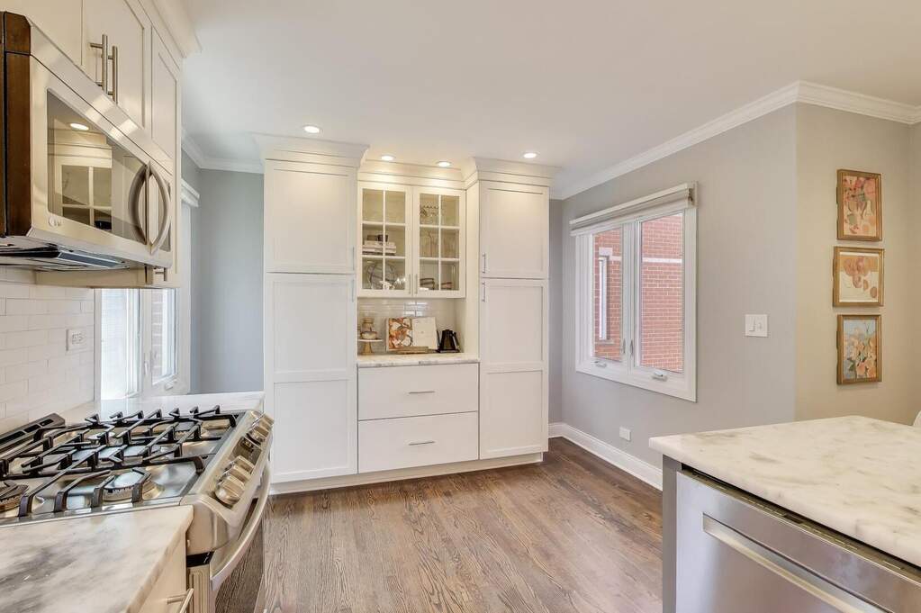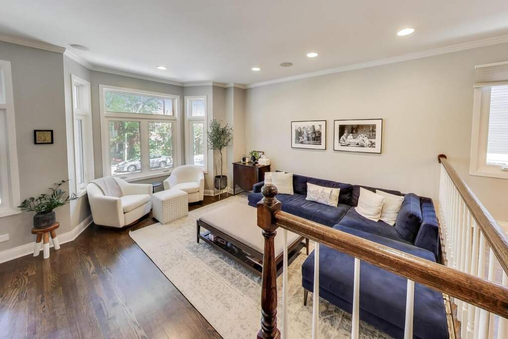 Rarely available end unit triplex with attached 1.5 car garage in a prime West Lincoln Park location, just steps from Wrightwood Park! This beautifully renovated 3 bed, 2.1 bath townhome provides single-family style living with only one shared wall and exceptional natural light from multiple exposures. The flexible first level offers a spacious living area ideal for a home office, gym, or playroom, plus direct access to the garage with added storage. The main level features an open-concept layout with hardwood floors, a designer kitchen with oversized island, farmhouse sink, quartz countertops, white cabinetry, subway tile backsplash, and designer lighting. Expansive east/west/north exposures flood the space with light, while the dining and living areas showcase large windows and a wood-burning fireplace with gas starter. A well-appointed powder room completes the level. Upstairs, two generous bedrooms include a stunning primary suite with cathedral ceilings, custom closets, and a spa-caliber bath with dual vanities, oversized shower, soaking tub, and quartz finishes. Laundry is conveniently located on this level. The top floor offers a versatile third bedroom with skylight, closet, and additional storage. Turnkey and move-in ready in a professionally managed community with strong reserves, low assessments, private courtyard, and beautifully landscaped shared green space. Major improvements include water heater (2023), new furnace control board & electrical contractor (2023), replaced 1st floor sliding glass door (2022), & Windows replaced (2018). Must see!