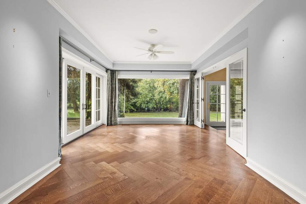 Reimagined and inspired, the 1125 Longvalley Estate offers a rare opportunity on one of the largest remaining acreages on the North Shore. Privately set behind mature trees and bordered by a rolling river, tranquil pond, and sweeping golf course views, this exceptional property delivers a true 360-degree natural setting just moments from town, Metra, top-rated schools, and only 25 minutes to downtown Chicago and O'Hare. Originally built in 1927, the home blends timeless architectural character with thoughtful updates and incredible potential. Re-envisioned with virtual renderings by Lauren Collander Interiors, the residence showcases expansive living spaces designed for both everyday living and grand entertaining. A formal living and dining room feature a classic limestone fireplace, herringbone wood flooring, and floor-to-ceiling windows overlooking the pool and scenic grounds. A dramatic 40-foot family room flows seamlessly into a billiards area, bar, and sun-filled atrium with soaring ceilings and radiant heated floors. The separate chef's kitchen includes an adjoining family room and breakfast area with views of the expansive west drive-ideal for future recreation or sport court possibilities. Outdoor living is equally impressive, with heated bluestone patio floors, an outdoor fireplace, and year-round enjoyment of the surrounding landscape. The renovated pool house includes a full bath and kitchenette, complemented by Ipe decking and bluestone surround. Upstairs, a grand library and private office capture panoramic views, while six additional bedrooms and baths include a spacious primary suite overlooking the pool and grounds. The lower level offers flexible space for recreation or future customization. A rare offering combining scale, privacy, and unmatched natural beauty. *Some Photos are Virtual Renderings of what a buyer can do with the current space