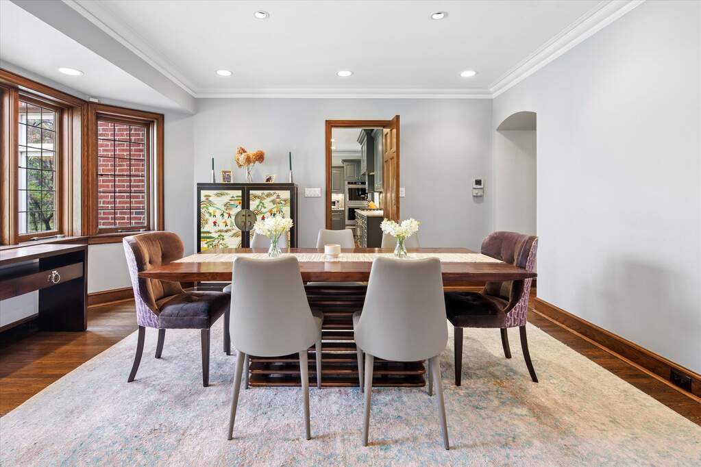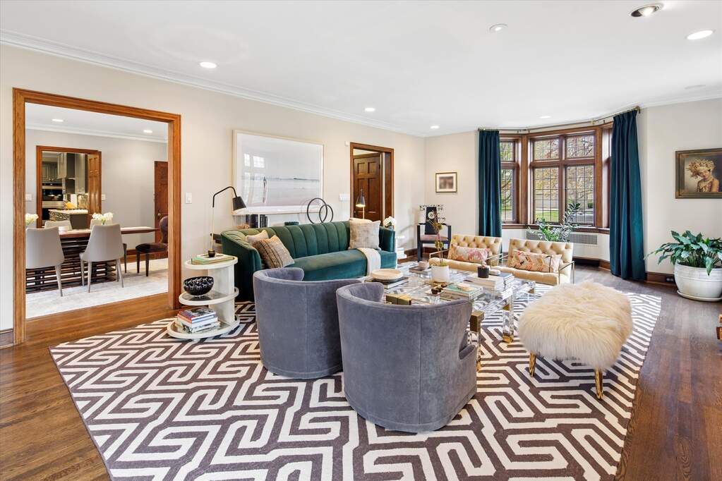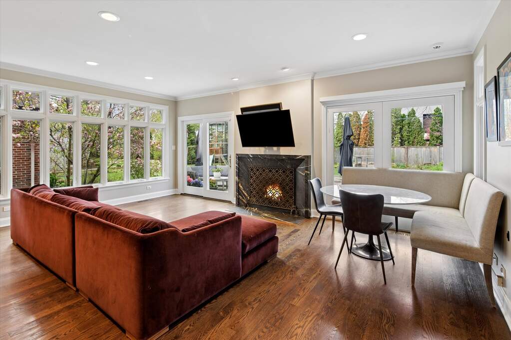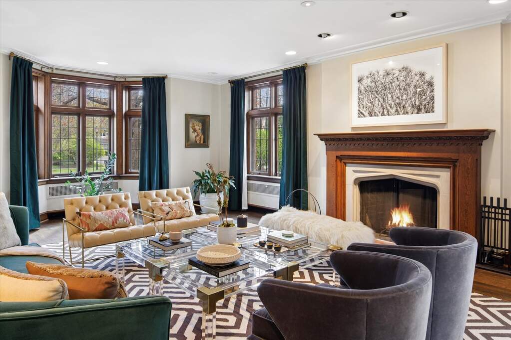 The perfect blend of vintage character along with today's modern design and amenities in this stately brick English Tudor on nearly 4/10th of an acre in a prime Glencoe location. This honorary landmark home offers great flow, gracious rooms and amazing details with an addition that fosters modern day living. The heart of the home is the addition where a 2019 renovated kitchen opens to a family room overlooking your impressive backyard. The kitchen features 3 walls of gray shaker cabinets, high-end stainless steel appliances, Ann Sacks tile backsplash and an oversized island with natural quartzite countertops. The family room provides ample space for both dining and lounging, while natural light floods in through floor-to-ceiling windows and patio doors overlooking the lush yard. A smart layout separates a more formal wing, featuring a large dining room and oversized formal living room with wood burning fireplace and bay windows, leading to a sunroom that offers a great yoga or reading retreat. There's also a handsome 1st floor office walled with built-in bookshelves. The 2nd floor features 5 bedrooms and 3 full baths, including two ensuites. The spacious primary suite features a sumptuous, spa-quality bath with walk-in steam shower, separate modern air jetted tub and oversized quartz double vanity counters along with a large walk-in closet. Updated full hall bath w penny floor tile, subway wall tile and double vanity w quartz counters. A carpeted finished attic with vaulted ceilings and open trusses is perfect for another area to hang, play ping pong or use as a cinema room with plenty of bonus desk and office space. Large rec room with wood burning fireplace in the basement. Additional features include lovely built-ins, recessed lighting and hardwood floors throughout most of the home. A proper mudroom, two powder rooms on your main level and attached 2 car garage with epoxy floors make for easy living. Filtered drinking water system by Culligan and a whole house filtration and softener system. The professionally landscaped 100' x 168' lot offers an amazing, estate-like feel with a fully updated sprinkler system of over 13 zones, including water for the vegetable garden along with a hardscaped patio and fire pit. Amazing location where you can still walk to town and train but avoid the busier Glencoe streets.