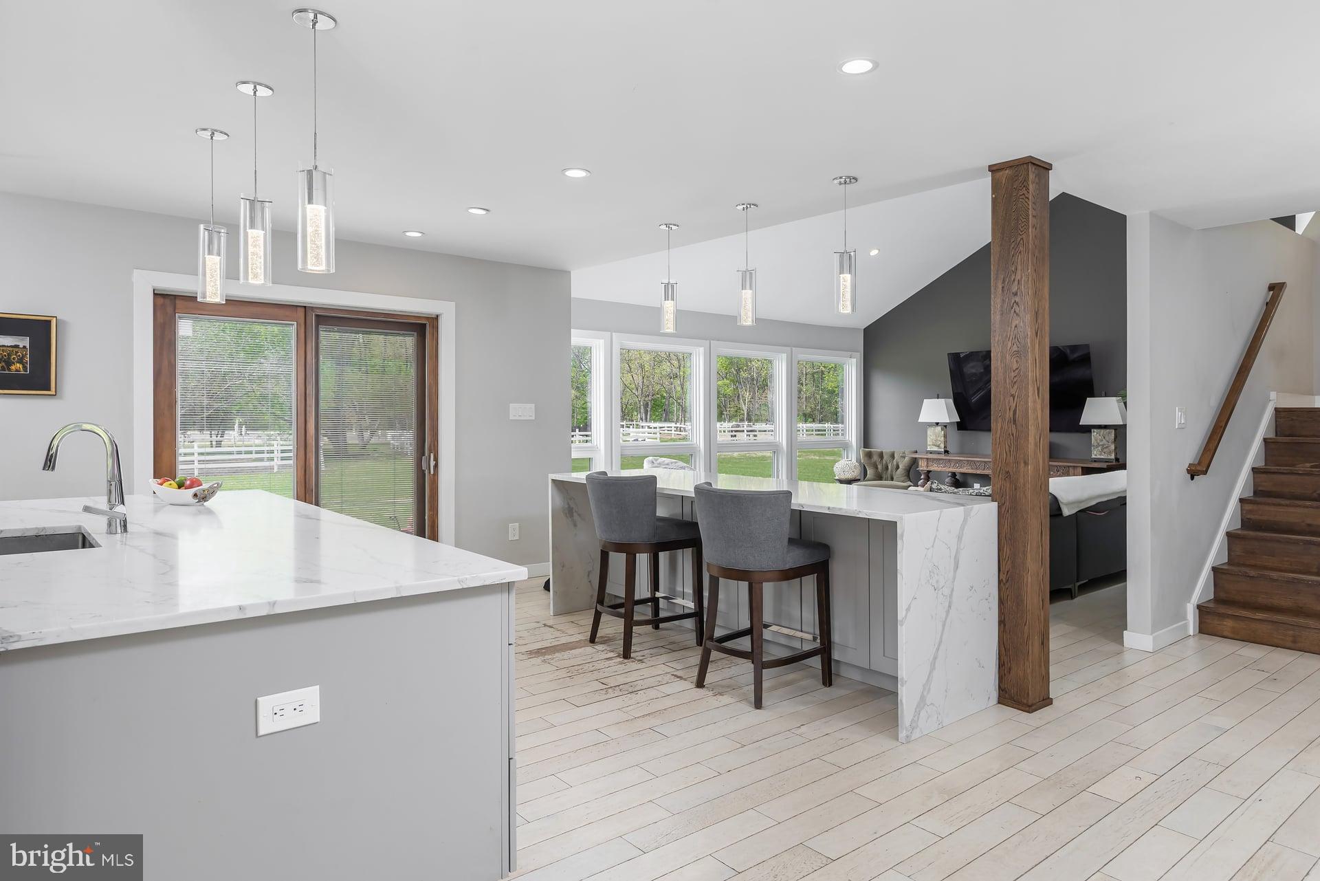 Welcome to 140 Colony Pl - a rare offering set on 6 private acres in Woolwich Township's highly sought-after 5 Acres & Independence neighborhood. Completely remodeled in 2020, this hidden gem blends modern living with exceptional equestrian amenities in a serene setting. The home offers approximately 2,100 square feet of beautifully designed space, enhanced by soaring cathedral ceilings and an abundance of natural light pouring in through windows at every turn. The open-concept layout showcases hardwood flooring throughout the main level and seamless flow between living spaces. At the heart of the home is a stunning, modern gourmet kitchen featuring striking double islands and thoughtfully designed Australian-inspired heavy-bottom cabinetry for both style and function. The kitchen opens to the dining area and an expansive living room, where a dramatic wall of windows frames breathtaking views of the property - overlooking pastures, horses, and the peaceful rear acreage.The main floor also includes a convenient half bath and a full laundry/mudroom with a side exterior entrance, ideal for country and farm living, along with access to the attached 2-car garage. Upstairs, the spacious primary suite offers a private retreat complete with a luxurious en-suite bath featuring a large walk-in shower, dual vanity, and walk-in closets. Two additional generously sized bedrooms with vaulted ceilings and ample closet space, along with a full bath featuring custom tile work, complete the second level. The finished basement provides additional living space, along with an unfinished mechanical room that offers extra storage and Bilco door exterior access. Major systems - including HVAC, roof, siding, plumbing, and well - were all updated in 2020, along with natural gas heating. Equestrian enthusiasts will appreciate the thoughtfully designed outdoor features, highlighted by a newer 36x60 barn built by Pioneer Pole Barns. This impressive setup includes eight 12x12 matted stalls with windows, electric, a large tack room with sink, a wash stall with heater and hot/cold water, and a concrete center aisle. Just outside, a professionally installed Olympic-sized dressage arena (20m by 60m) features premium sand, rubber mixture and GGT footing. Multiple private paddocks are tucked among mature trees, and the rear of the property backs to woods with trails - perfect for riding out after time in the ring. It's not often you find a move-in ready home paired with a fully turnkey equestrian facility in such a pristine and private setting. Located within the Kingsway Regional School District and offering easy access to major highways and bridges throughout South Jersey, this property delivers both convenience and lifestyle. Come see where refined living, natural beauty, and a fully realized equestrian setup come together to create a lifestyle that's as peaceful as it is inspiring. Pre-qualified buyers only for showings please.