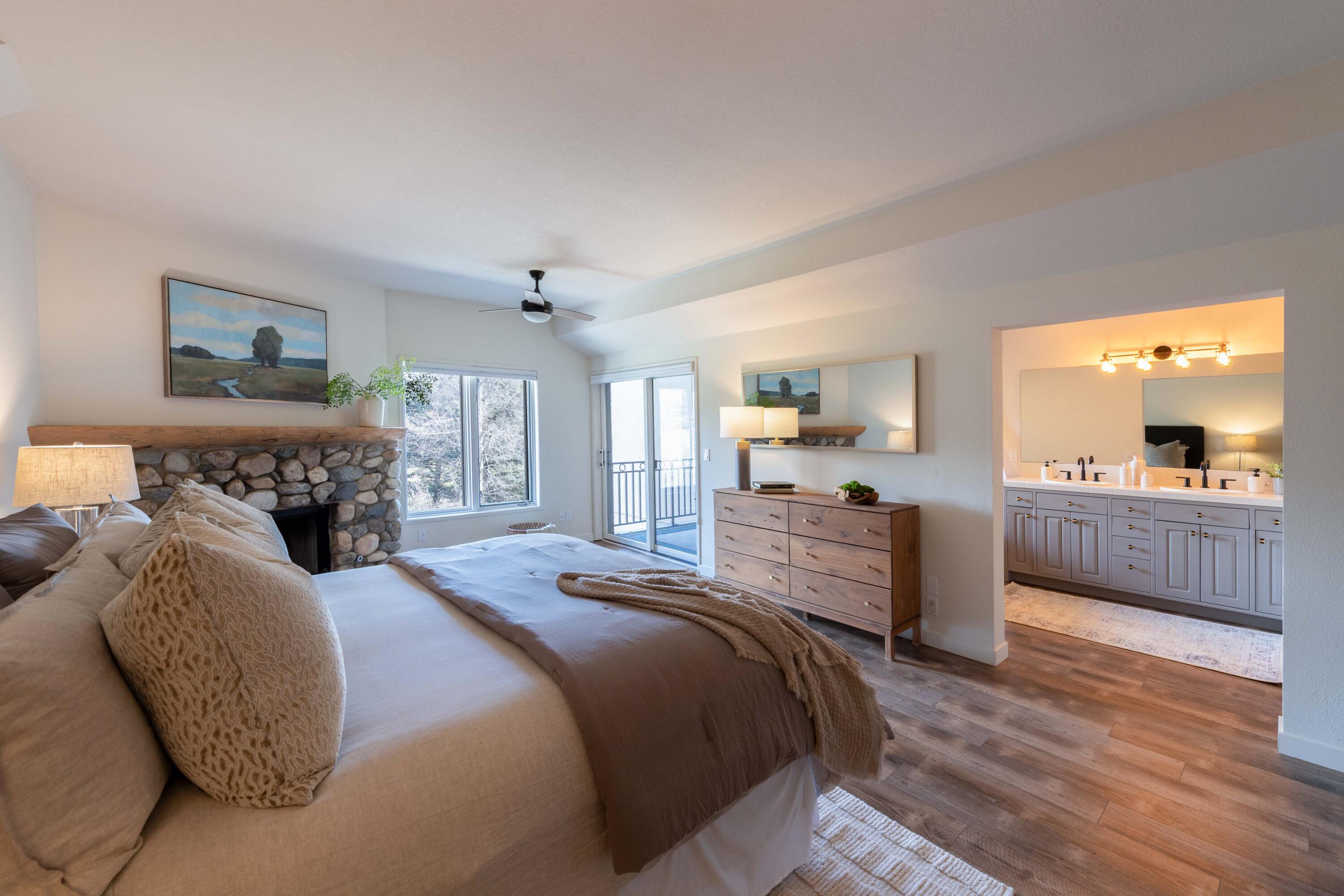 Nestled on the southern edge of Elkhorn Village, this refined three-bedroom, single-level condo offers a front-row seat to nature. Overlooking peaceful open space, this residence serves as a sanctuary of quiet beauty while placing world-class recreation right at your doorstep. Start your day on one of two east-facing decks, soaking in the morning sun as it rises over the hills. Wind down your evenings beside the cozy fireplaces. You are just steps away from Elkhorn's premier amenities, including Olympic-sized pools, tennis, and pickleball courts. For the golfer, the Elkhorn Golf Course Clubhouse is just around the corner. In addition, the Summit 1 buildings have been completely refreshed with new roofs, siding, stucco, and paint. Enjoy the convenience of a seamless, turnkey lifestyle with underground parking and elevator access. Whether you're seeking a high-energy home base for mountain adventures or a quiet escape with a view, this Summit 1 residence offers the best of both worlds in one of Sun Valley's ideal locations.