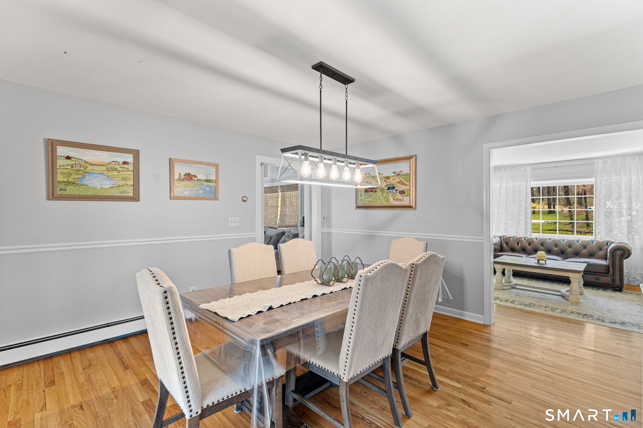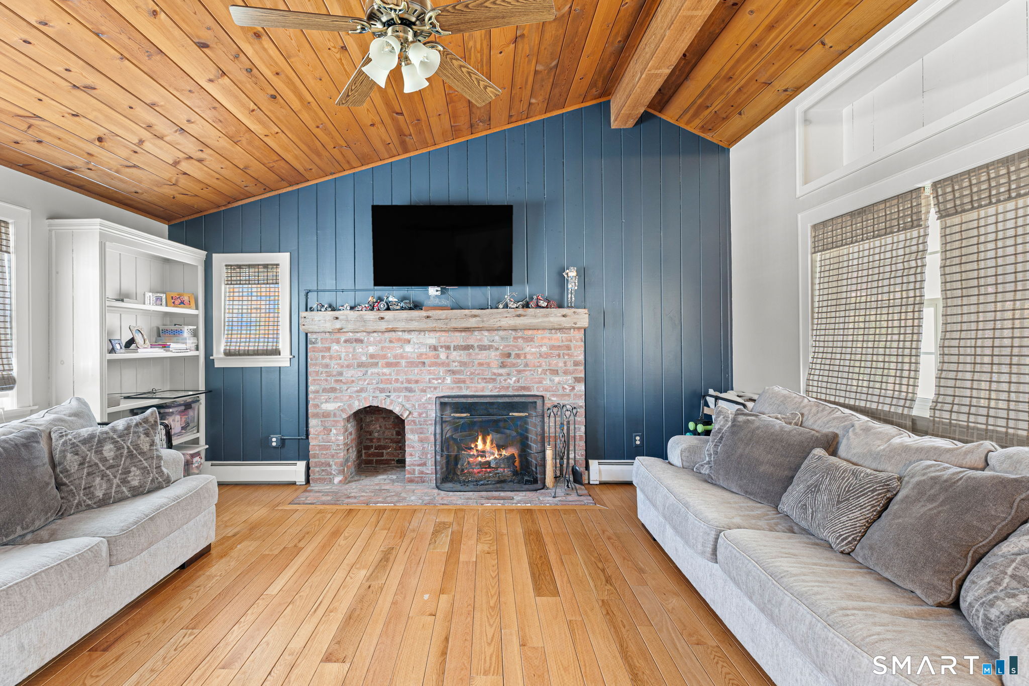 Single-family 3-bedroom, 2-bathroom Ranch in the Tashua neighborhood of Trumbull, Connecticut. This 1,680-square-foot home features hardwood floors, a living room with a wood-burning fireplace, and a bay window that fills the space with natural light. The family room offers a vaulted ceiling and a second fireplace, custom built-in shelving, creating two distinct living areas on the main level. A three-season enclosed porch extends the main living area and opens to a large renovated patio in the backyard - expansive and private backyard designed for relaxed entertaining across spring, summer, and fall. The partially finished lower level includes a flexible-use space ideal as a home office, gym, or recreation room, with walk-out access to the 2-car attached garage. The garage is equipped with an electric vehicle charging station. A newer HVAC system provides efficient heating and cooling throughout the home. Located in the Tashua section of Trumbull, CT, residents enjoy access to Tashua recreation facilities, nearby parks, and nearby public transportation with convenient routes to the Merritt Parkway and Route 25. A well-maintained, single-level Ranch with dual fireplaces, EV charging, updated HVAC, and indoor-outdoor living in Tashua, Trumbull, CT 06611.