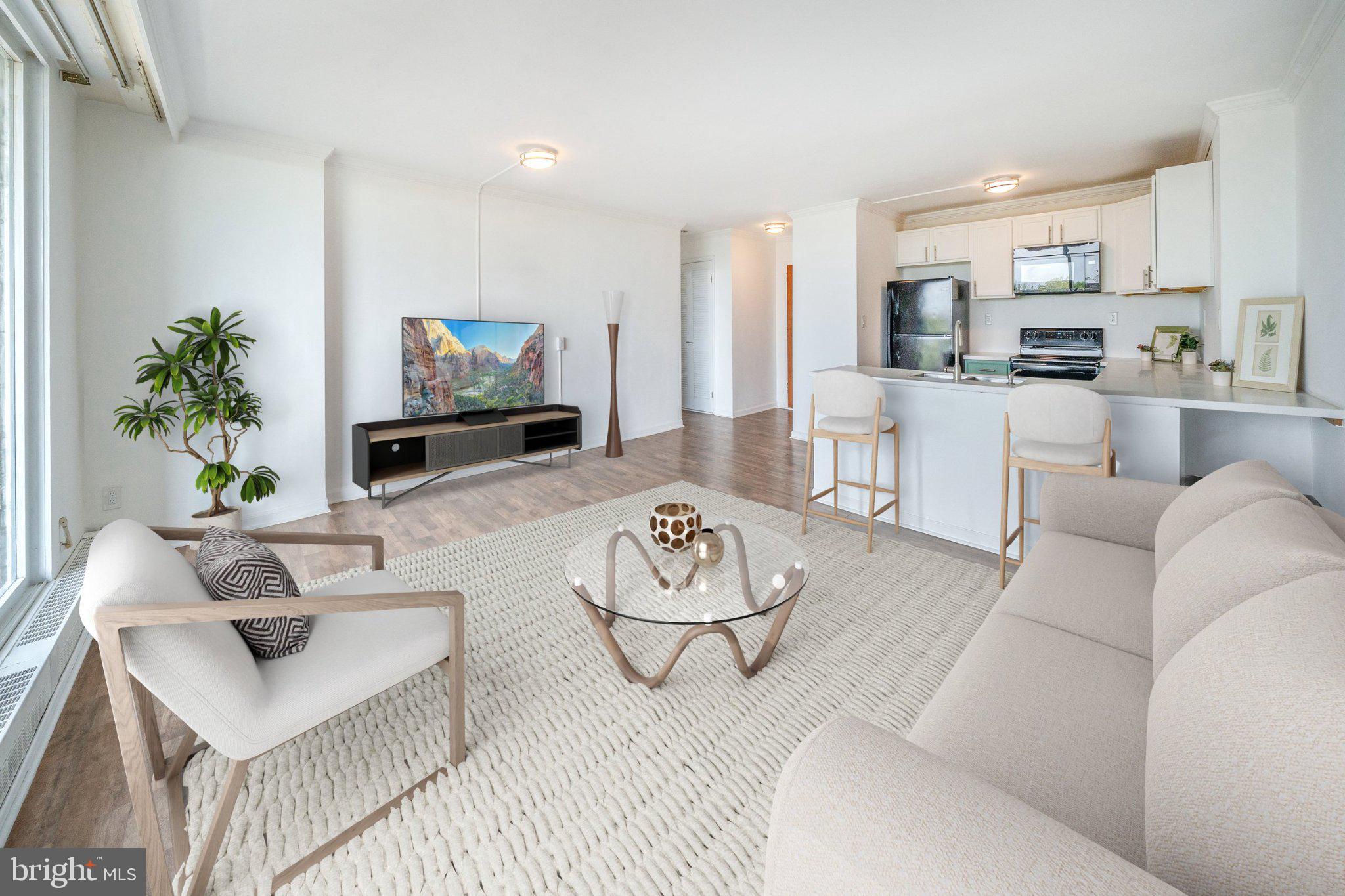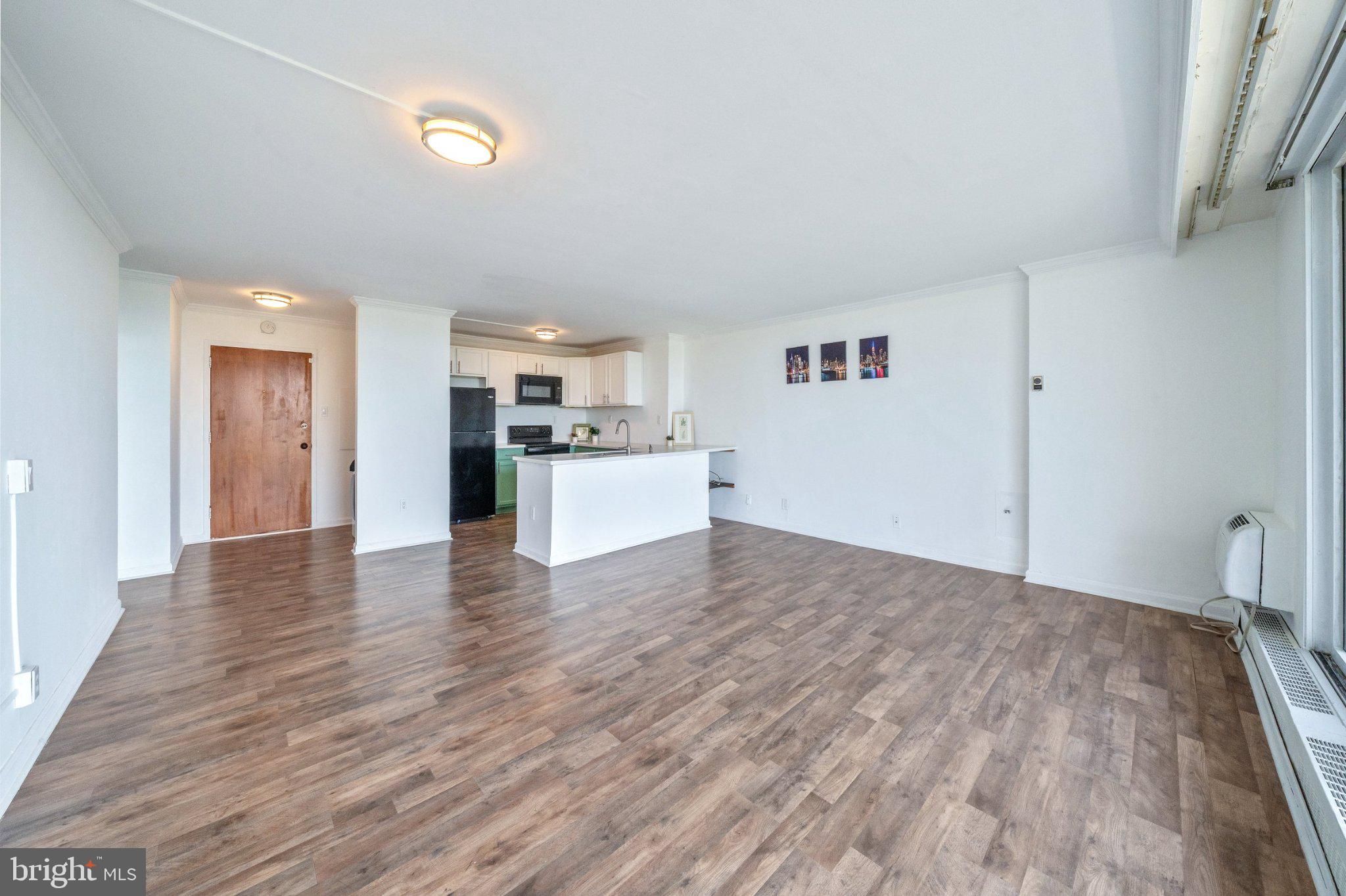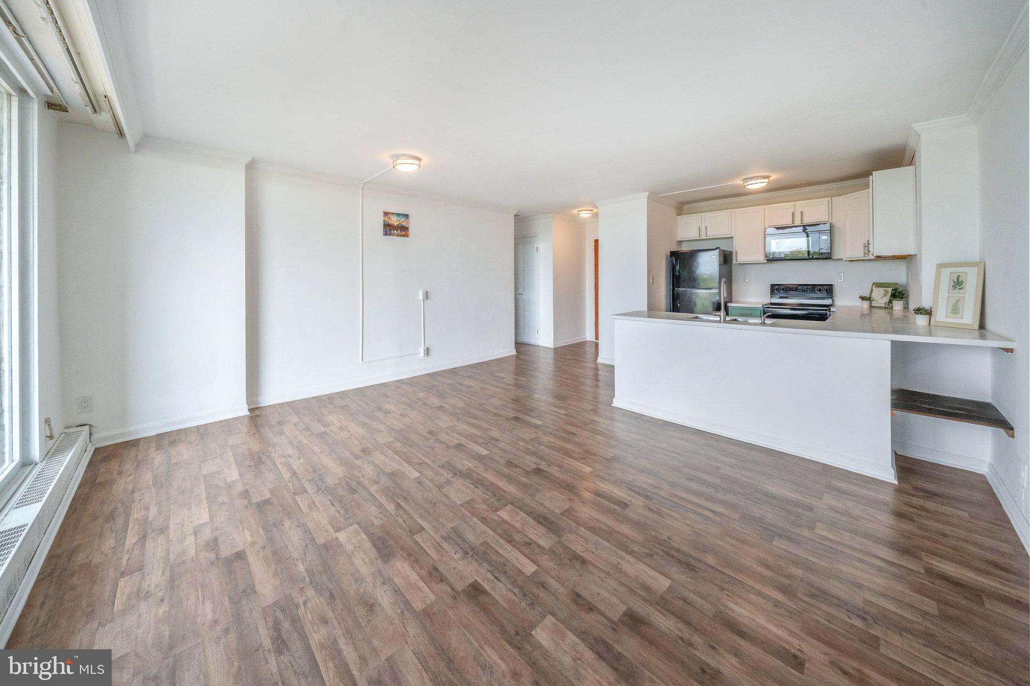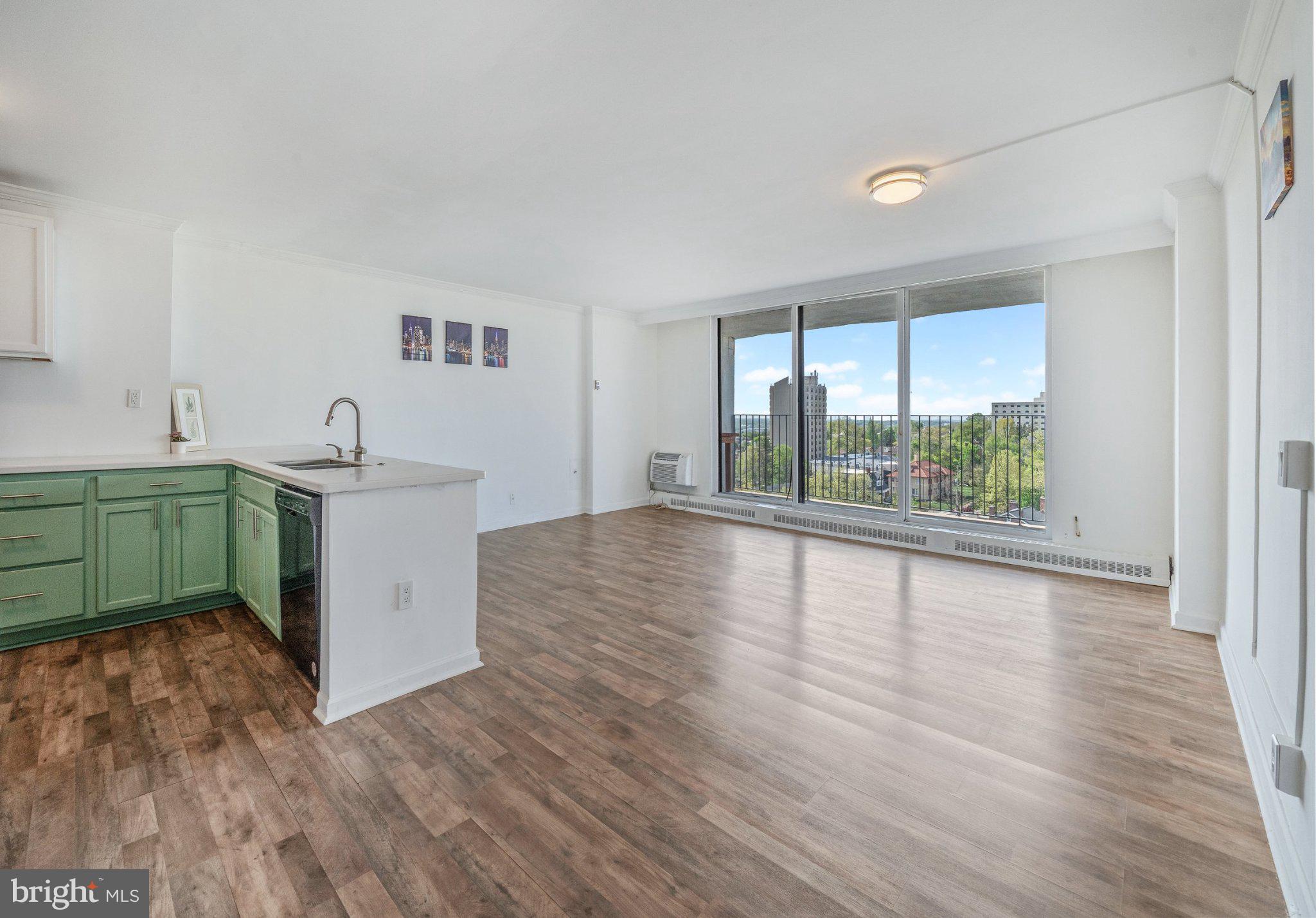 Welcome to Unit 1105 on the 11th floor at the 1401 Condominiums in the heart of Trolley Square. This move-in ready condo features luxury vinyl plank flooring throughout and an open concept layout. The updated kitchen offers newer appliances, including a built-in microwave, dishwasher, double-bowl sink, and an oversized peninsula, perfect for entertaining. Enjoy a bright, spacious living area with a wall of windows showcasing expansive city views, plus access to a large private balcony. The updated full bath features tile flooring, a walk-in shower, grey cabinetry, and linen storage. The bedroom includes custom built-ins and abundant natural light. Additional highlights include a brand new in unit washer and dryer, walk-in closet, and a garage parking space. The 1401 offers valet parking, 24-hour concierge, secure entry, elevators, a courtyard, game room and all utilities included (except internet) in the monthly fee. Ideally located with excellent walkability. Just a short drive to Philadelphia Airport, close to the Wilmington Amtrak station. Enjoy the theatre, great restaurants & everything Wilmington has to offer including the Riverfront.