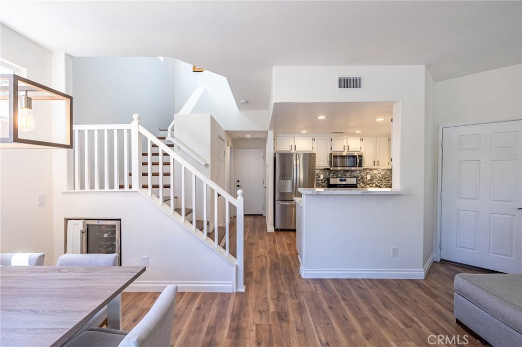 Fully upgraded, move-in ready, and set in a prime cul-de-sac location - this is the one that checks all the boxes. Located within the Magnolia Lane tract of Las Flores, this detached 3 bedroom, 2.5 bath residence offers the privacy and feel of a single-family home with a functional layout and thoughtful upgrades throughout. The interior has been updated with luxury vinyl plank flooring, complemented by a custom hardwood staircase that adds warmth and continuity between levels. The main living areas offer a comfortable flow for both daily living and entertaining. The kitchen has been upgraded with quartz countertops, a farmhouse sink, rollout cabinetry, and a wine fridge, offering both functionality and a clean, modern design that connects comfortably with the surrounding living spaces. Upstairs, the primary suite features a fully remodeled en-suite bathroom designed with both style and functionality in mind, including a Japanese soaking tub, walk-in shower, dual vanity, towel warmer, and custom oceanic tilework, along with a walk-in closet. Additional improvements include a recent PEX repipe, newer water heater, and updated vinyl/wood fencing. The backyard is designed for entertaining and everyday enjoyment, featuring lush landscaping, a tranquil water feature, and built-in surround sound, creating a private and inviting outdoor setting. Located within the Las Flores community, residents enjoy access to both the Magnolia Lane pool and spa as well as the resort-style Las Flores community pool and spa. Community amenities also include parks, hiking trails, sports courts, pickleball courts, tennis courts, a splash pad, and a baseball field along with access to exclusive community events. LOW HOA & NO MELLO ROOS.