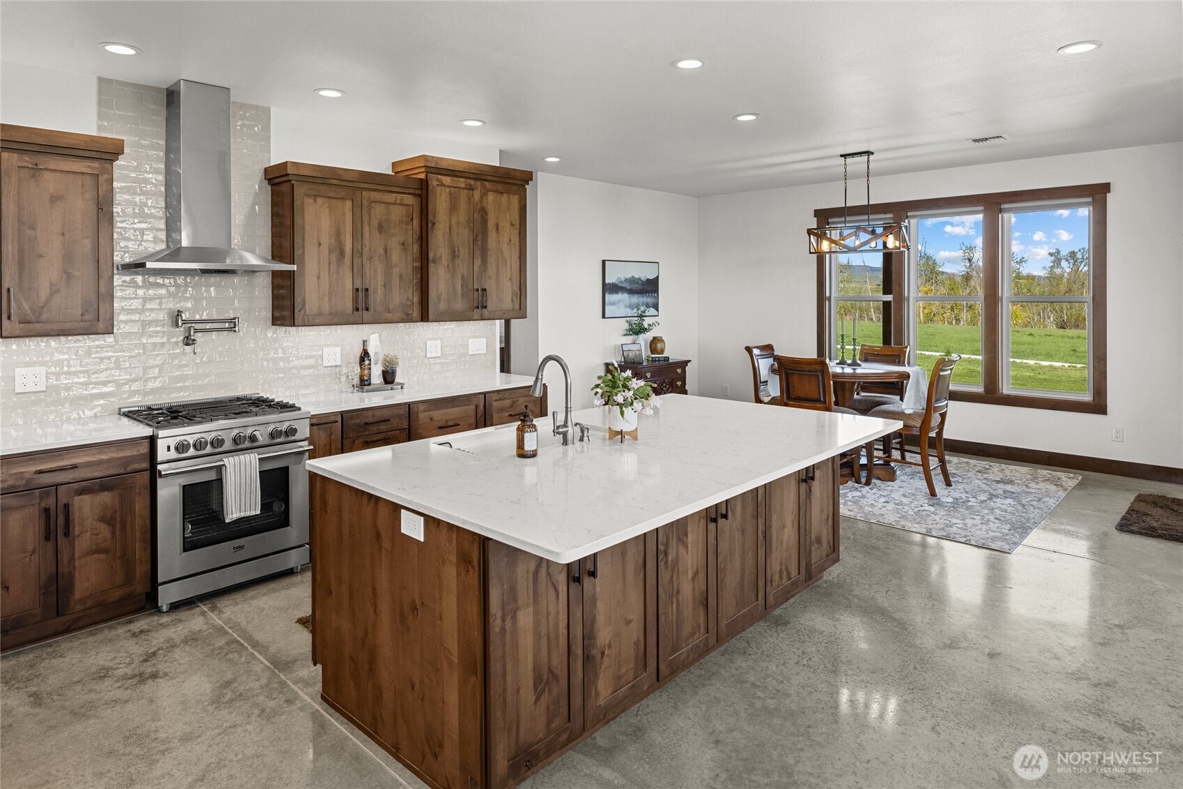 Discover ultimate tranquility on over 12 irrigated acres located on the valley's coveted Westside, where panoramic 360-degree views including views of the majestic Stuart Range create a breathtaking backdrop for this custom-built retreat. Positioned to maximize the scenery while maintaining an expansive, private feel , the home features an inviting layout centered around a gourmet kitchen equipped with custom cabinetry and a large walk-in pantry that serves as a functional butler's pantry. The residence includes a comfortable guest bedroom and a full guest bathroom, while the primary suite is a true sanctuary featuring a private slider that opens directly onto the oversized concrete patio. This primary retreat offers a spacious en suite with dual vanities, a large custom-tiled walk-in shower, and a generous walk-in closet with custom shelving. Car enthusiasts and hobbyists will marvel at the attached, extra-large 50' x 72' shop featuring 16-foot ceilings and a fully finished 50x12 flex room. For the equestrian, the property is fully equipped with a detached horse barn featuring four custom stalls and a 100 x 200 arena. Complete with a 24 kW automatic backup generator and substantial irrigation rights for the hay fields (currently in Timothy Hay), this estate offers a rare combination of luxury, utility, and peace.