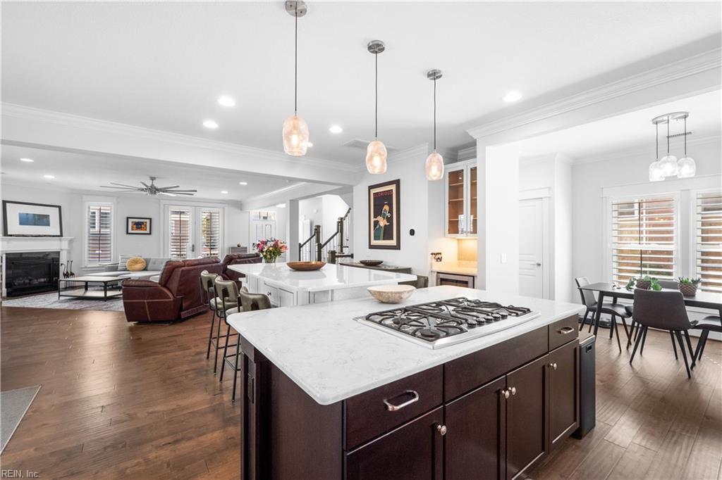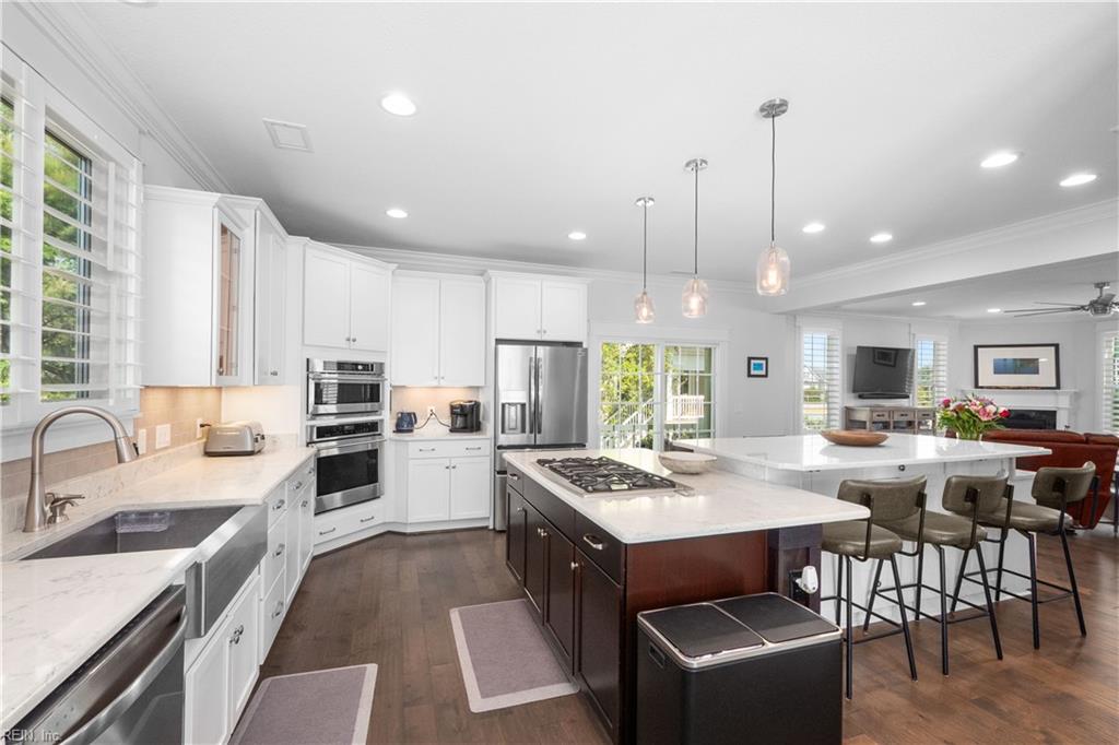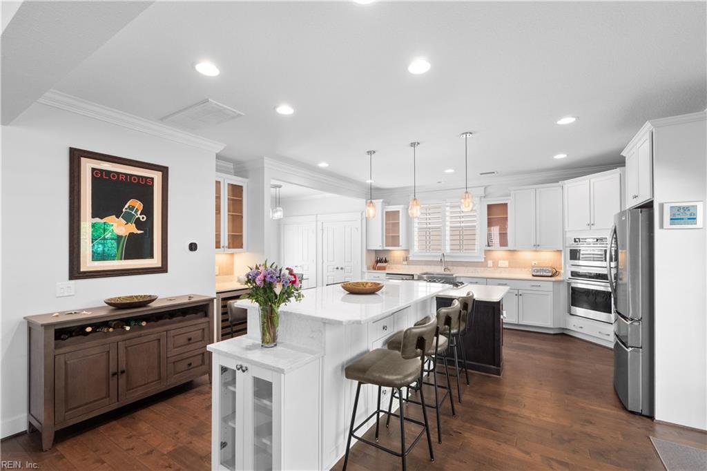 Coastal convenience meets modern luxury in this beautifully appointed North End single family style condo, offering four bedrooms and three full and one half bathrooms. Enjoy outdoor living with two covered decks plus a private covered patio, great for summer relaxation and hosting guests and family. The gourmet chef's kitchen features a large custom center island, gas range and high end finishes, opening to an inviting living room with bright natural light, accented by gorgeous, engineered hardwood floors throughout. Retreat to the spacious primary suite with a luxurious primary bath. Built with all fiber cement exterior, designed to be elevator ready, this home is equipped with a tankless water heater, two car attached garage, and in a prime location near First Landing State Park's 2,800+ acres of scenic biking trails, and North End beaches - ideal timing for summer living at its best.