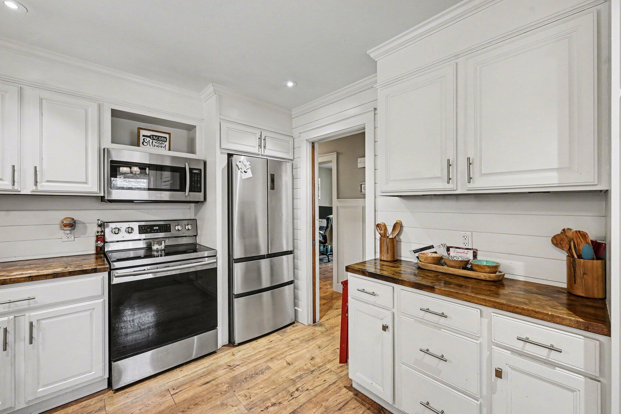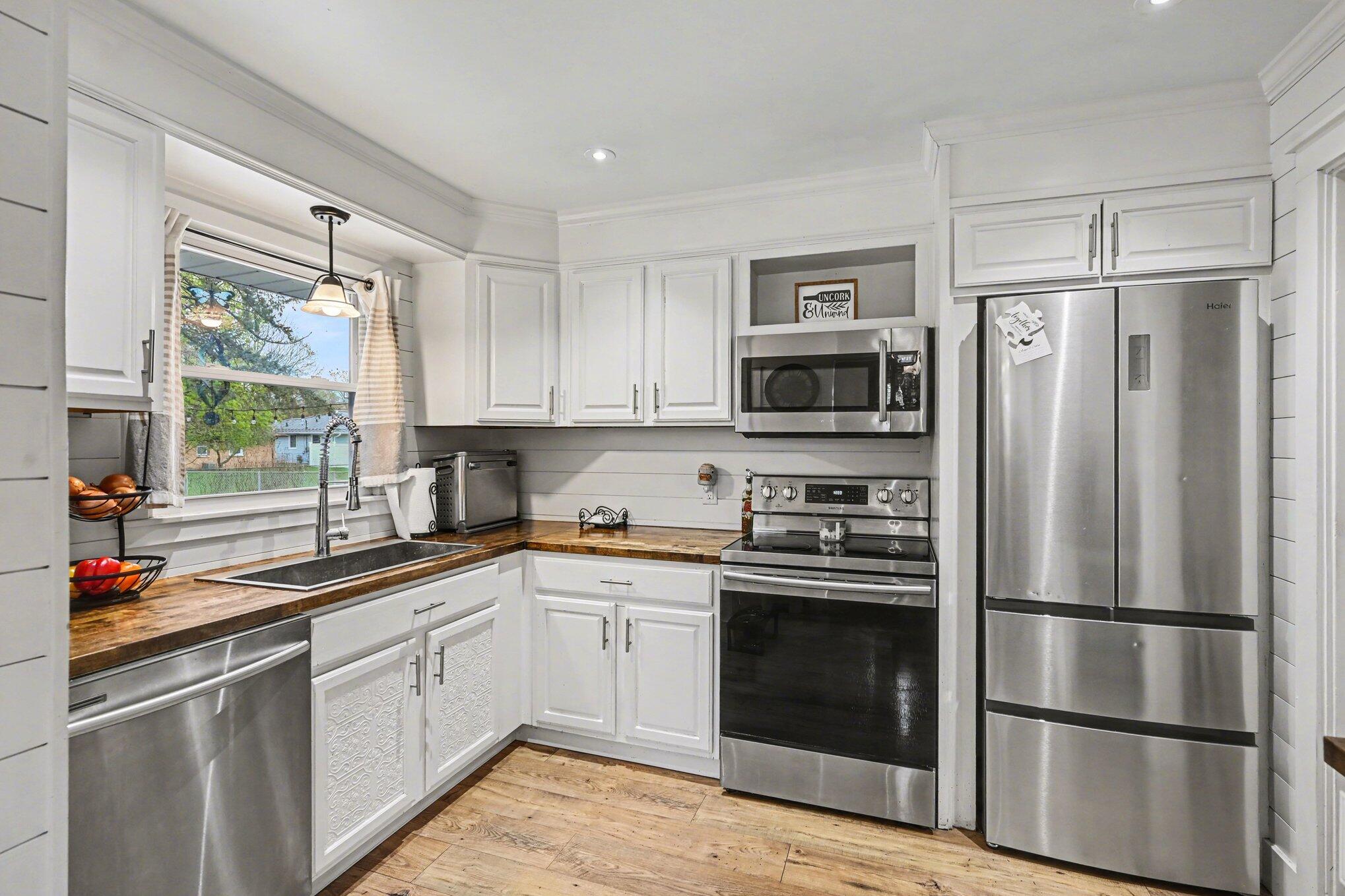Located in the highly desirable Westwood neighborhood, this beautifully updated and move in ready 3 bedroom, 1 bathroom home offers comfort, style, and a convenient location just minutes from Downtown Kalamazoo & West Main shopping and restaurants. Kalamazoo Promise Eligible! Step inside to a bright and inviting living room featuring a large picture window and cozy fireplace, a perfect place to kick up your feet. The updated kitchen showcases white cabinetry, stainless steel appliances, and butcher block countertops, creating a clean and modern feel. The spacious full bathroom includes double sinks for added convenience. This home also features a heated breezeway/sunroom that connects the house to the attached two car garage and also the backyard, offering a versatile space that can be a mudroom, a space to relax, or a place to entertain year round. Situated on a large corner lot, the fully fenced backyard includes a generous concrete patio, ideal for outdoor gatherings or quiet summer evenings, along with a shed for outdoor storage. The expansive unfinished basement offers endless potential for additional living space, storage, or both. With its thoughtful updates, functional layout, and prime location, this home is truly a must see!