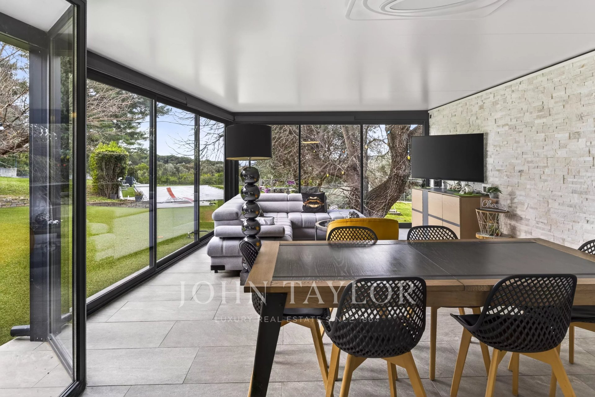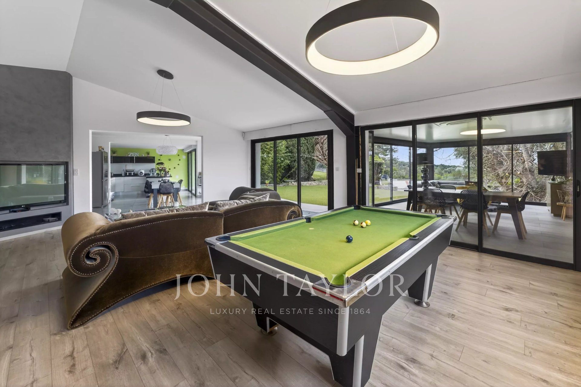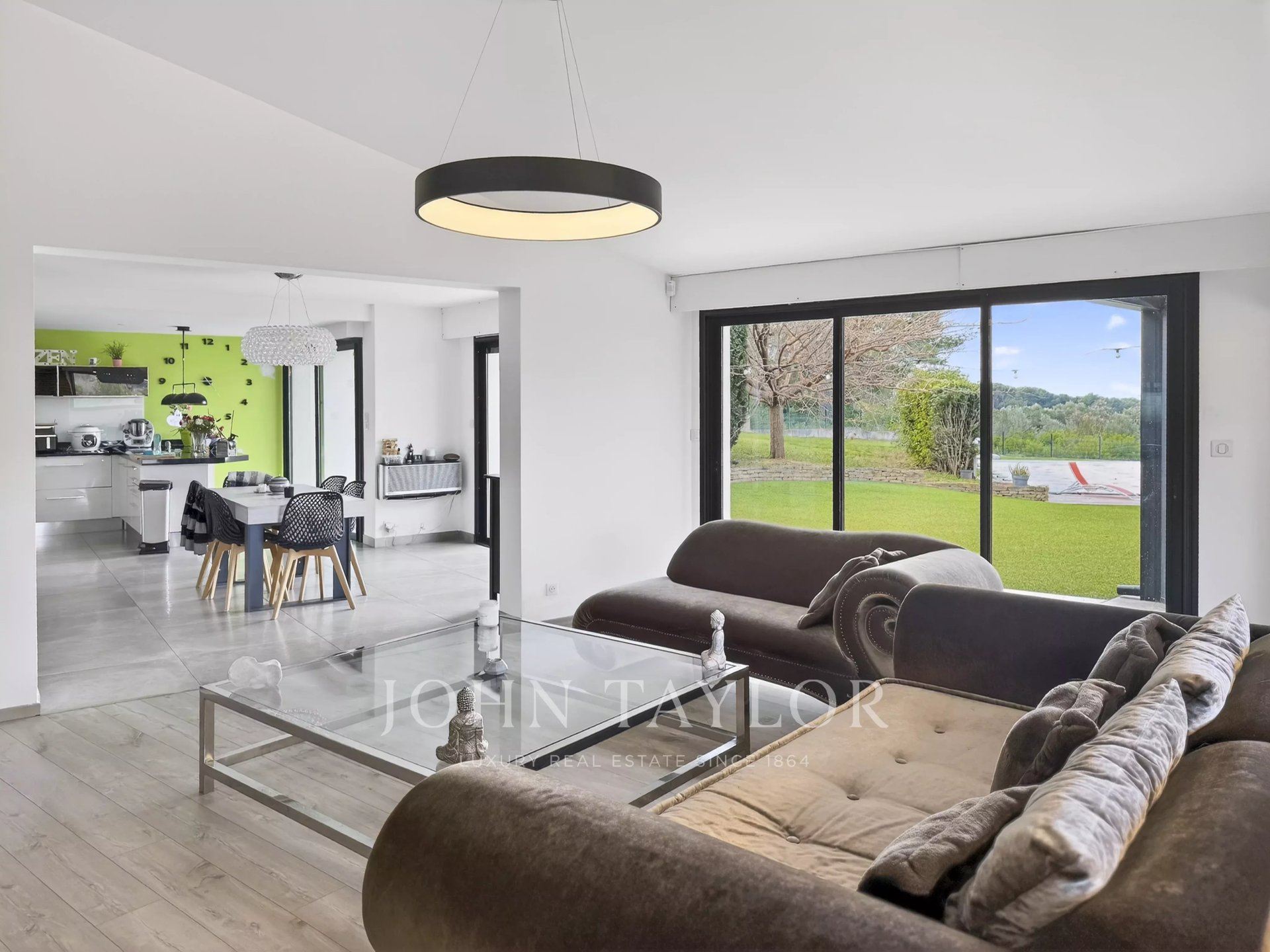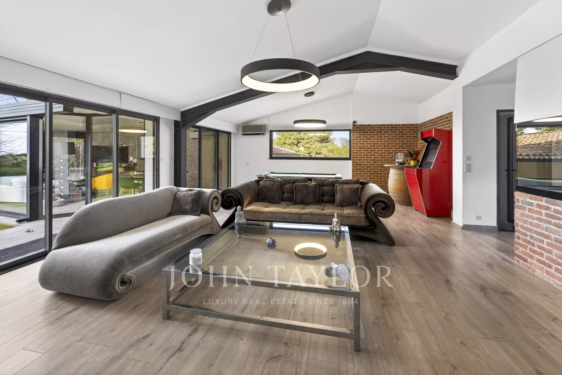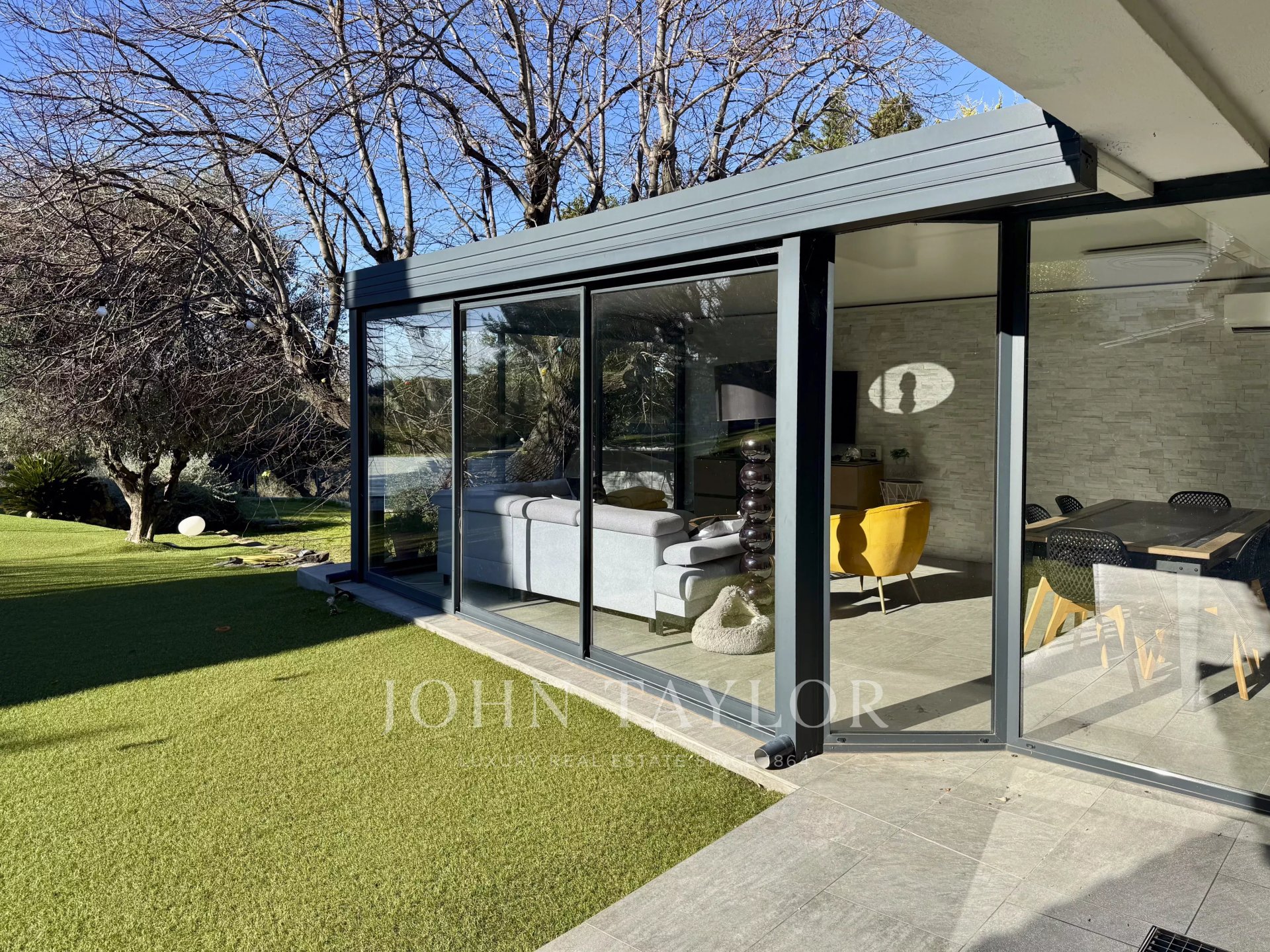 John Taylor Sanary/Bandol agency presents this property located in the municipality of Sanary, enjoying a convenient setting just a short distance from the town centre and the port, while offering quick access to the main motorway links.Set on a fully enclosed plot of approximately 3,000 sq.m, the villa offers around 410 sq.m of living space, designed to combine comfort, generous volumes and functionality.Upon arrival, a welcoming entrance hall with storage and guest restrooms leads to the main living areas. The reception spaces stand out for their spaciousness and natural light, featuring an open-plan kitchen with dining area, a large living room and a bright lounge, creating a warm and harmonious atmosphere.On the same level, the master suite enjoys complete privacy and includes a dressing room, a shower room and private toilets.The upper floor comprises two additional bedrooms and a shower room with WC. In addition, an annex houses two further bedrooms, each with its own shower room and sanitary facilities.The fully fitted lower level includes a large garage along with several additional rooms offering multiple possibilities of use.A separate one-bedroom apartment (T3 layout), an independent office and a second garage of approximately 40 sq.m further enhance the property’s flexibility and hosting potential.Outdoors, the villa extends onto spacious terraces, a salt-water heated swimming pool with sea view, and numerous parking spaces.Features include underfloor heating, air conditioning and a private borehole, ensuring optimal comfort and autonomy.A rare property, perfectly suited as a family residence or a refined home designed for entertaining in a peaceful and privileged environment.To arrange a viewing or for further information, please contactAlexis KOUVARIS – Real Estate Consultant+33 6 31 15 11 28