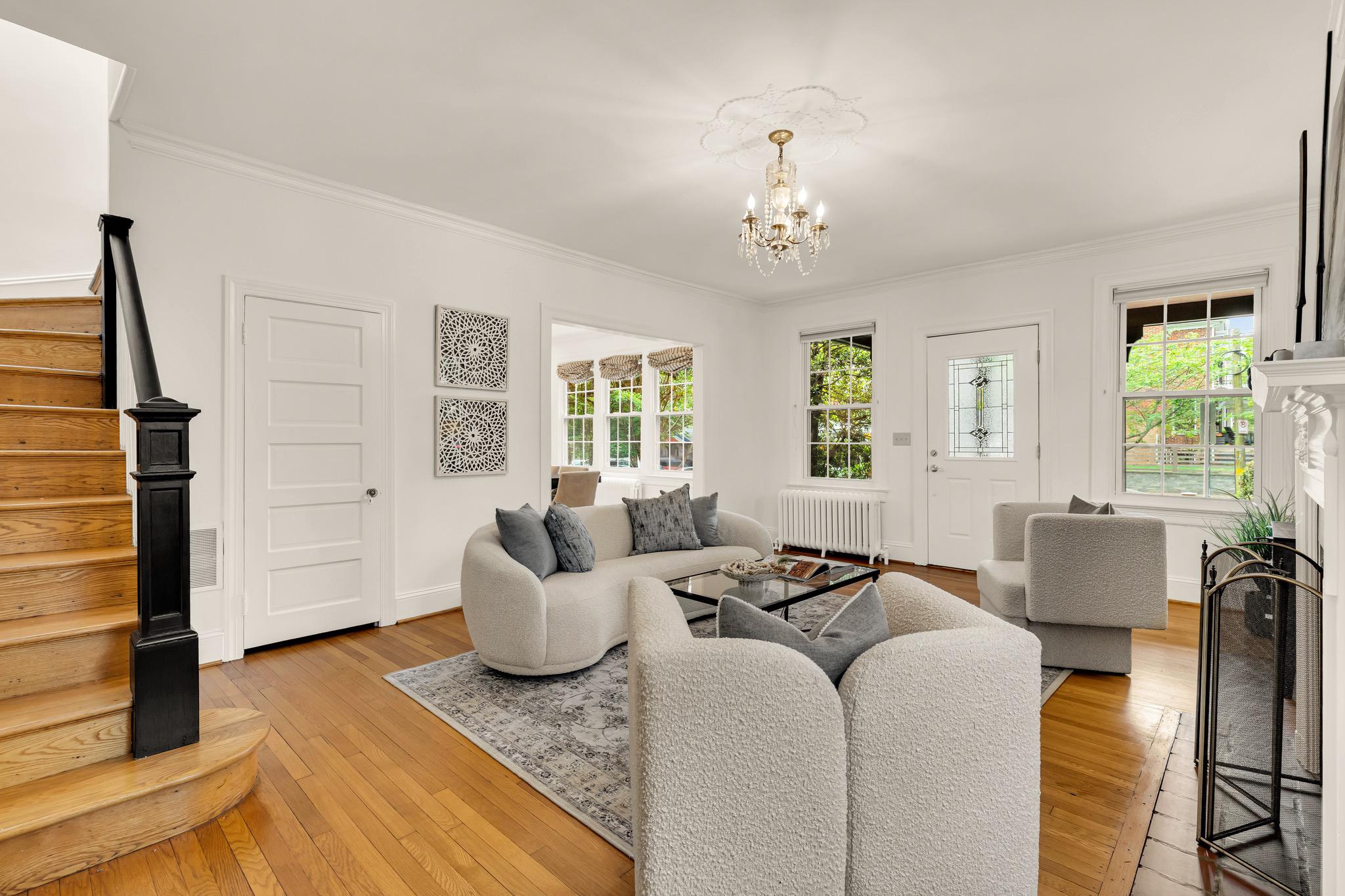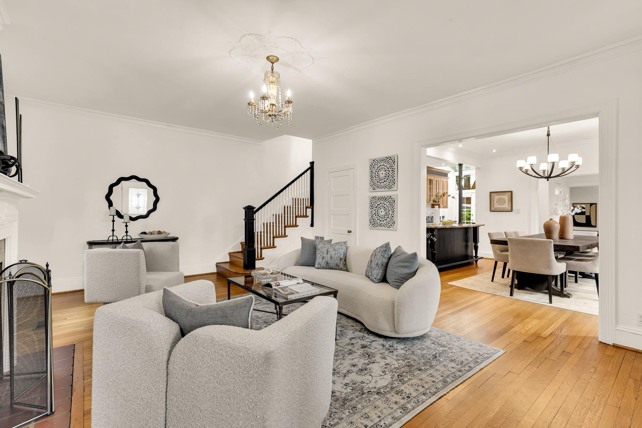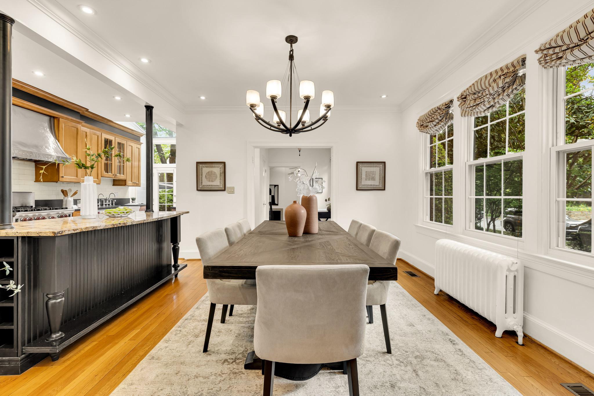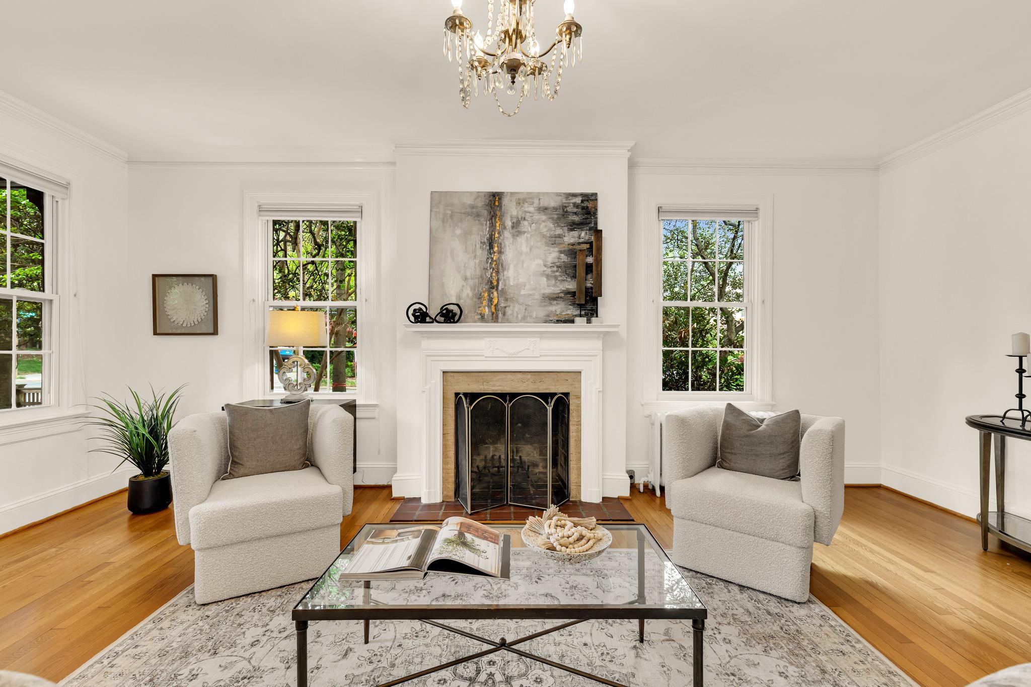 Classic Tudor elegance meets a highly functional, modern layout in this thoughtfully renovated 1926 semi-detached North Cleveland Park residence. A welcoming front porch leads into a gracious living room anchored by a stately fireplace with a period-detailed mantel. The unique architectural design places the staircase at the rear of the room, creating an exceptionally wide and airy main level. The heartbeat of the home is the stunning open-concept chef’s kitchen—with six-burner Wolf range, custom range hood, and thoughtfully designed custom cabinetry—that flows effortlessly into the dining room. Off the dining room is a versatile built-in workspace, offering a convenient area for a work or tech station, and a powder room. The spacious and inviting family room, also featuring its own fireplace and vaulted ceiling, provides the rare main-level recreational space. The attached one-and-a-half car garage offers uncommon urban convenience. And outdoor living is seamless with a brick patio tucked away under the trees for a private retreat. The upper level features three bedrooms and two renovated full baths, headlined by a spacious primary suite with en suite bath. The second bedroom is generously sized, while the L-shaped third bedroom offers a distinct sleeping area that transitions into a sun-drenched corner—a perfect sanctuary for a private office or reading room. The hall bath completes this level. The fully renovated lower level adds exceptional flexibility with its own private outside entrance and full bath, as well as a dedicated laundry room. This level includes space for multiple uses: possibilities include a perfect recreation room, an expansive library and office, or a guest suite. With over 30 windows flooding the home with natural light and a location just blocks from two Metro stations, this home is a rare find that perfectly balances historic charm with modern utility. The surrounding areas offer a perfect combination of suburban-style tranquility and high-end urban amenities. Just blocks from the vibrant Wisconsin and Connecticut Avenues corridors, and located between Tenleytown and the newly developed City Ridge, which serve as central hubs for the neighborhood. Connectivity is a hallmark of this location, with two Metros just blocks away. Choose between Tenleytown or Van Ness Metro with direct access to downtown. Outdoor enthusiasts also benefit from proximity to Hearst Recreation Center and Fort Reno Park, while the lush trails of Glover Archbold Park and Rock Creek Park are nearby.Square footage is estimated and calculated by independent third parties. Additional third party approximate estimates 2,604 SQ FT which includes the finished basement. All information is deemed accurate but not guaranteed.