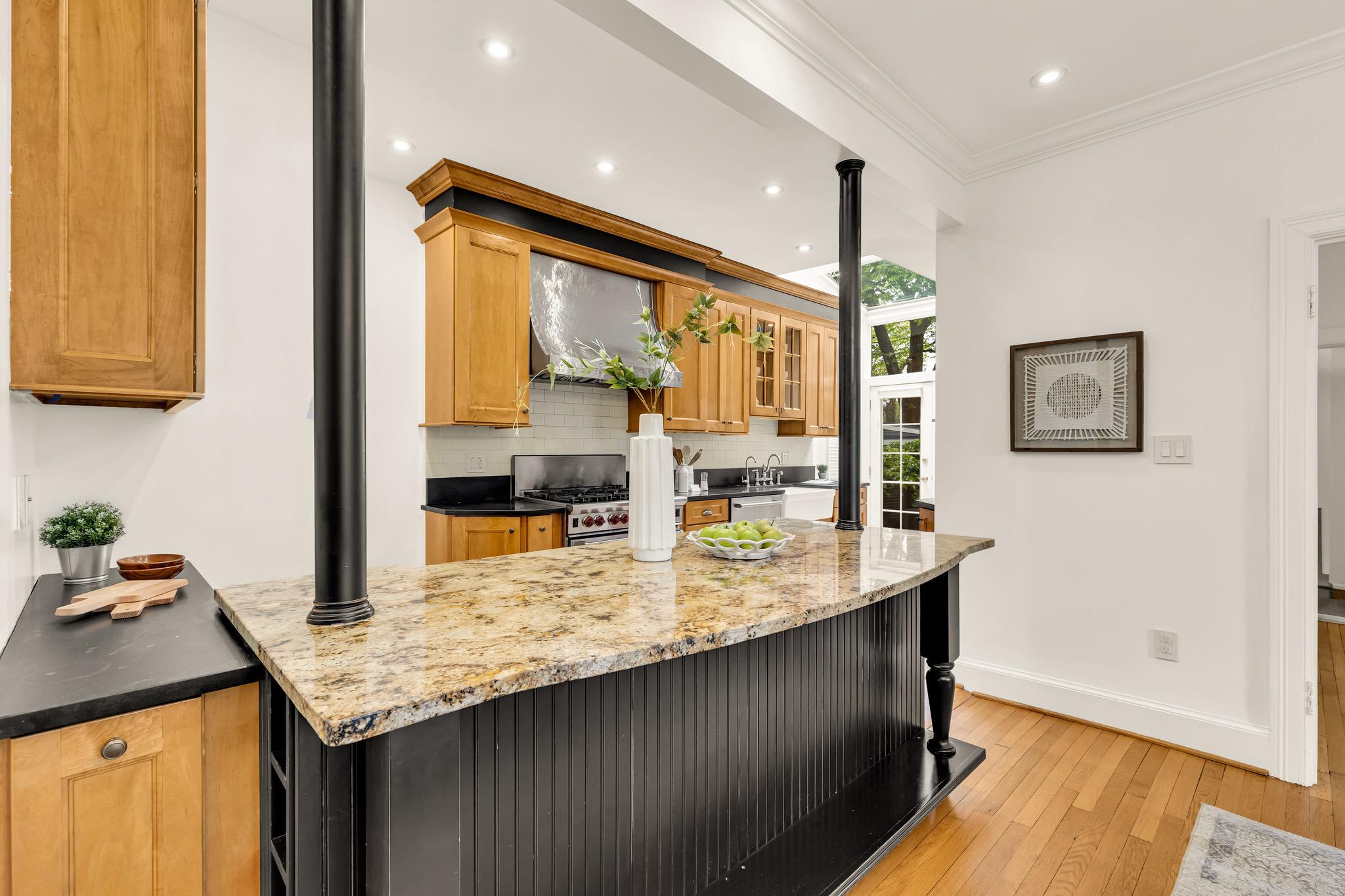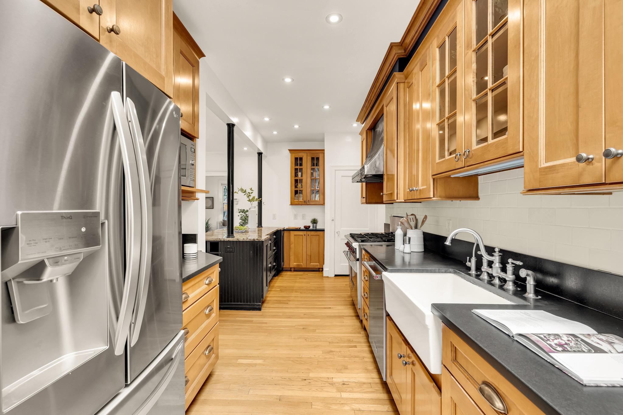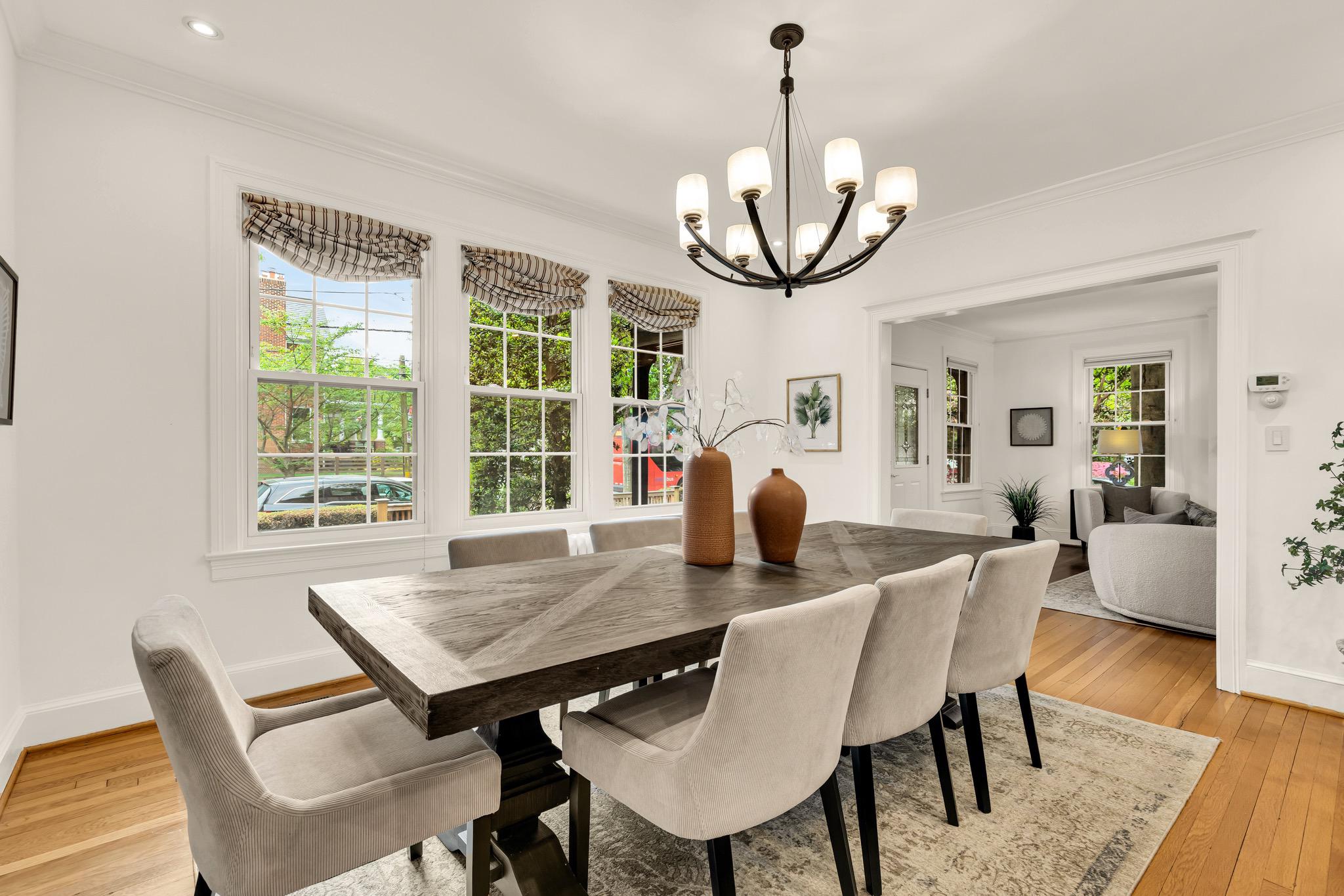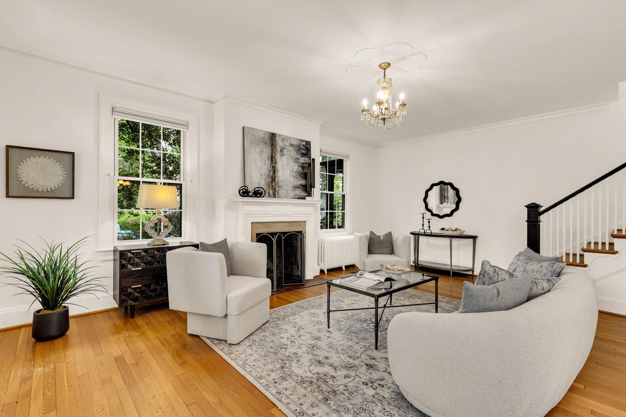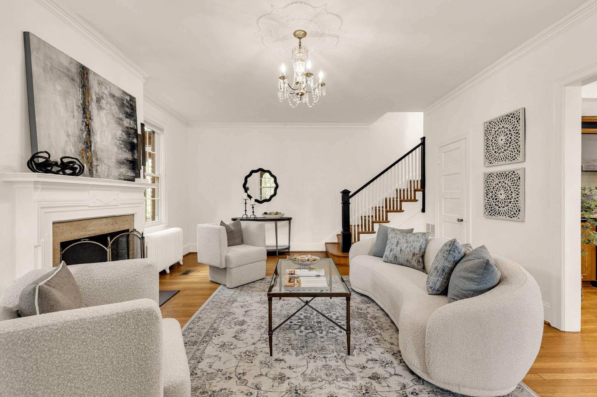 Classic Tudor elegance meets a highly functional, modern layout in this thoughtfully renovated 1926 semi-detached North Cleveland Park residence. A welcoming front porch leads into a gracious living room anchored by a stately fireplace with a period-detailed mantel. The unique architectural design places the staircase at the rear of the room, creating an exceptionally wide and airy main level. The heartbeat of the home is the stunning open-concept chef’s kitchen—with six-burner Wolf range, custom range hood, and thoughtfully designed custom cabinetry—that flows effortlessly into the dining room. Off the dining room is a versatile built-in workspace, offering a convenient area for a work or tech station, and a powder room. The spacious and inviting family room, also featuring its own fireplace and vaulted ceiling, provides the rare main-level recreational space. The attached one-and-a-half car garage offers uncommon urban convenience. And outdoor living is seamless with a brick patio tucked away under the trees for a private retreat. The upper level features three bedrooms and two renovated full baths, headlined by a spacious primary suite with en suite bath. The second bedroom is generously sized, while the L-shaped third bedroom offers a distinct sleeping area that transitions into a sun-drenched corner—a perfect sanctuary for a private office or reading room. The hall bath completes this level. The fully renovated lower level adds exceptional flexibility with its own private outside entrance and full bath, as well as a dedicated laundry room. This level includes space for multiple uses: possibilities include a perfect recreation room, an expansive library and office, or a guest suite. With over 30 windows flooding the home with natural light and a location just blocks from two Metro stations, this home is a rare find that perfectly balances historic charm with modern utility. The surrounding areas offer a perfect combination of suburban-style tranquility and high-end urban amenities. Just blocks from the vibrant Wisconsin and Connecticut Avenues corridors, and located between Tenleytown and the newly developed City Ridge, which serve as central hubs for the neighborhood. Connectivity is a hallmark of this location, with two Metros just blocks away. Choose between Tenleytown or Van Ness Metro with direct access to downtown. Outdoor enthusiasts also benefit from proximity to Hearst Recreation Center and Fort Reno Park, while the lush trails of Glover Archbold Park and Rock Creek Park are nearby.Square footage is estimated and calculated by independent third parties. Additional third party approximate estimates 2,604 SQ FT which includes the finished basement. All information is deemed accurate but not guaranteed.