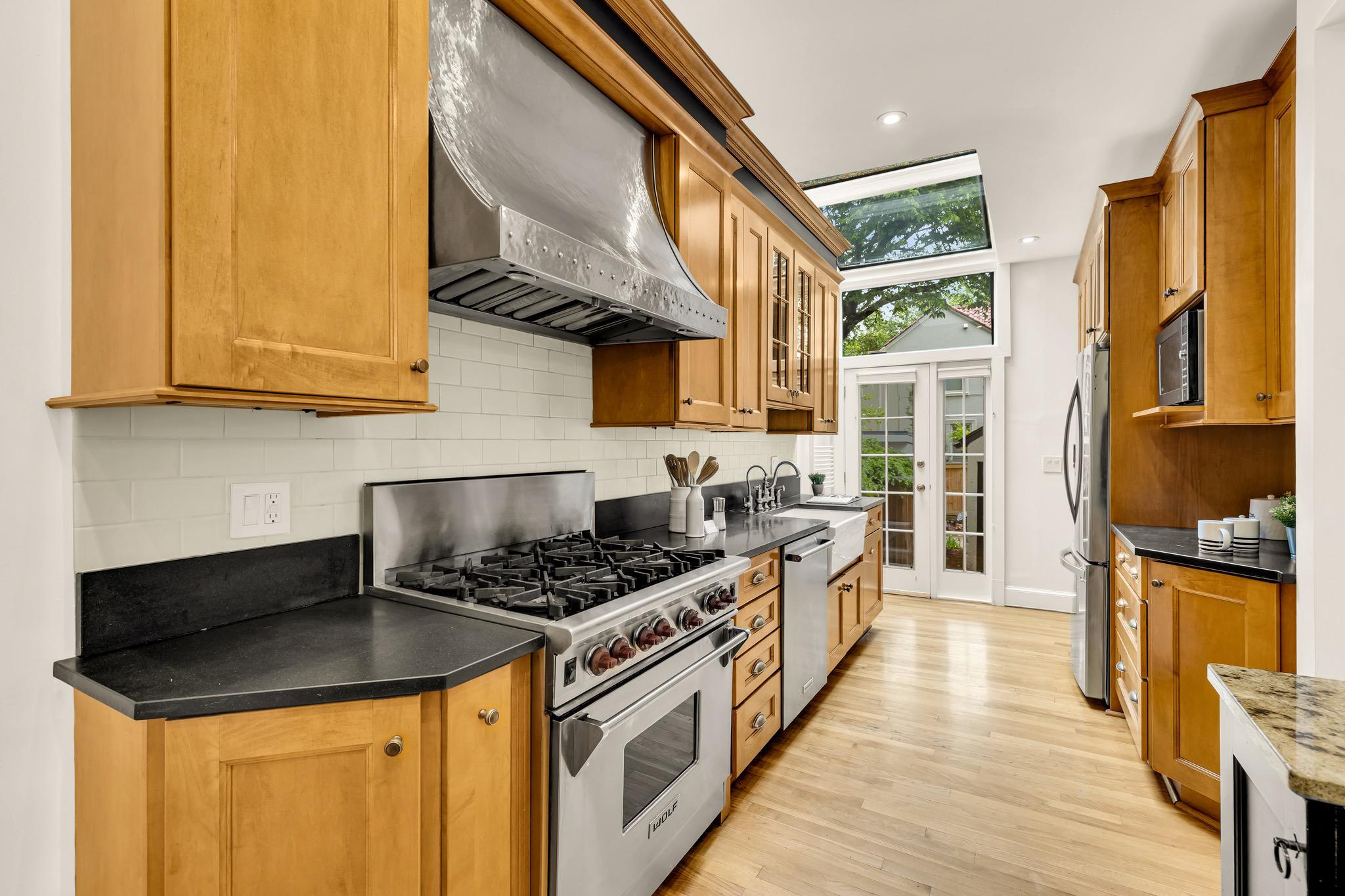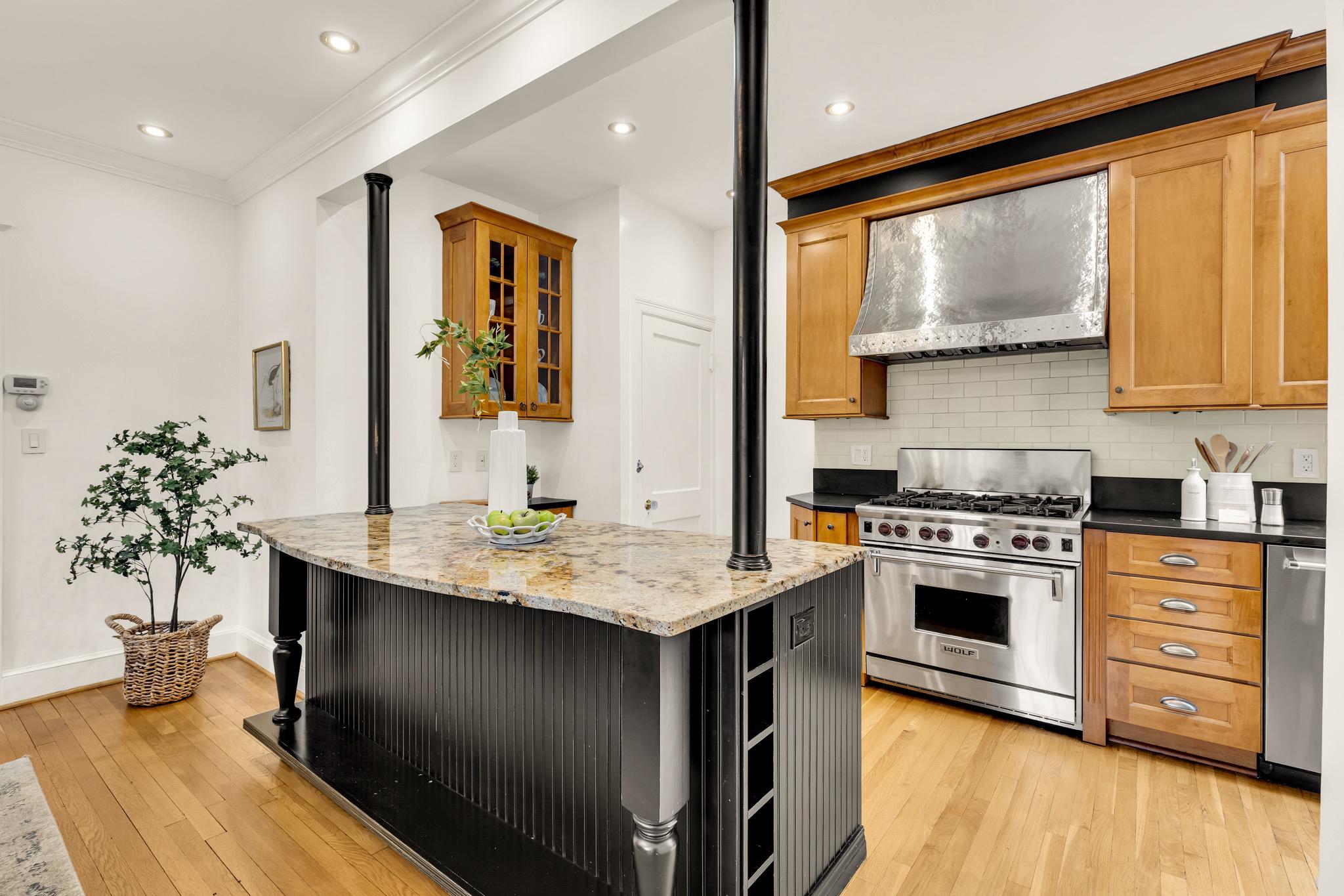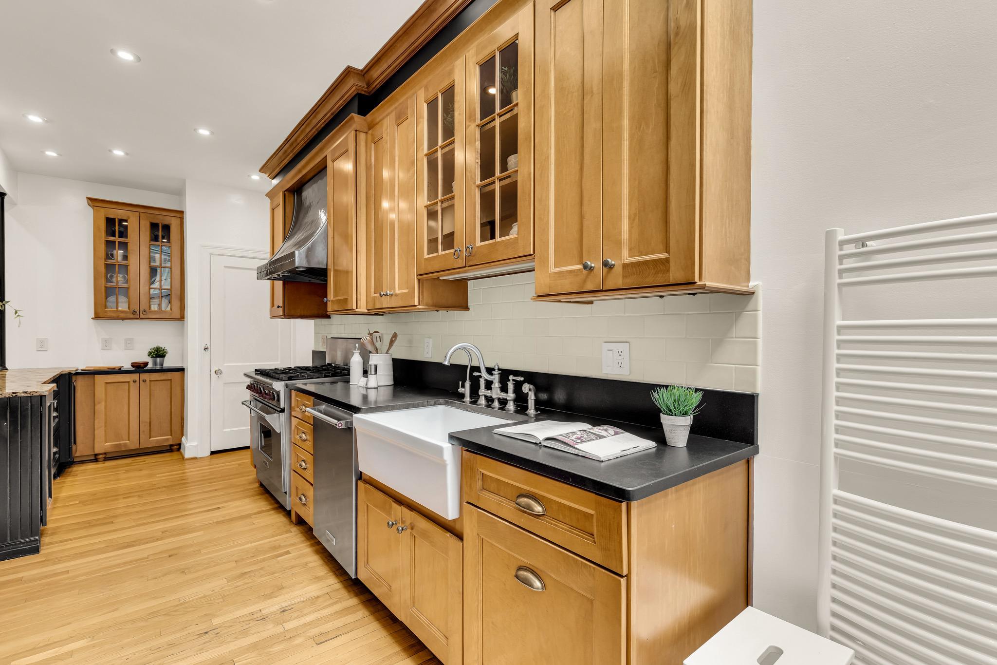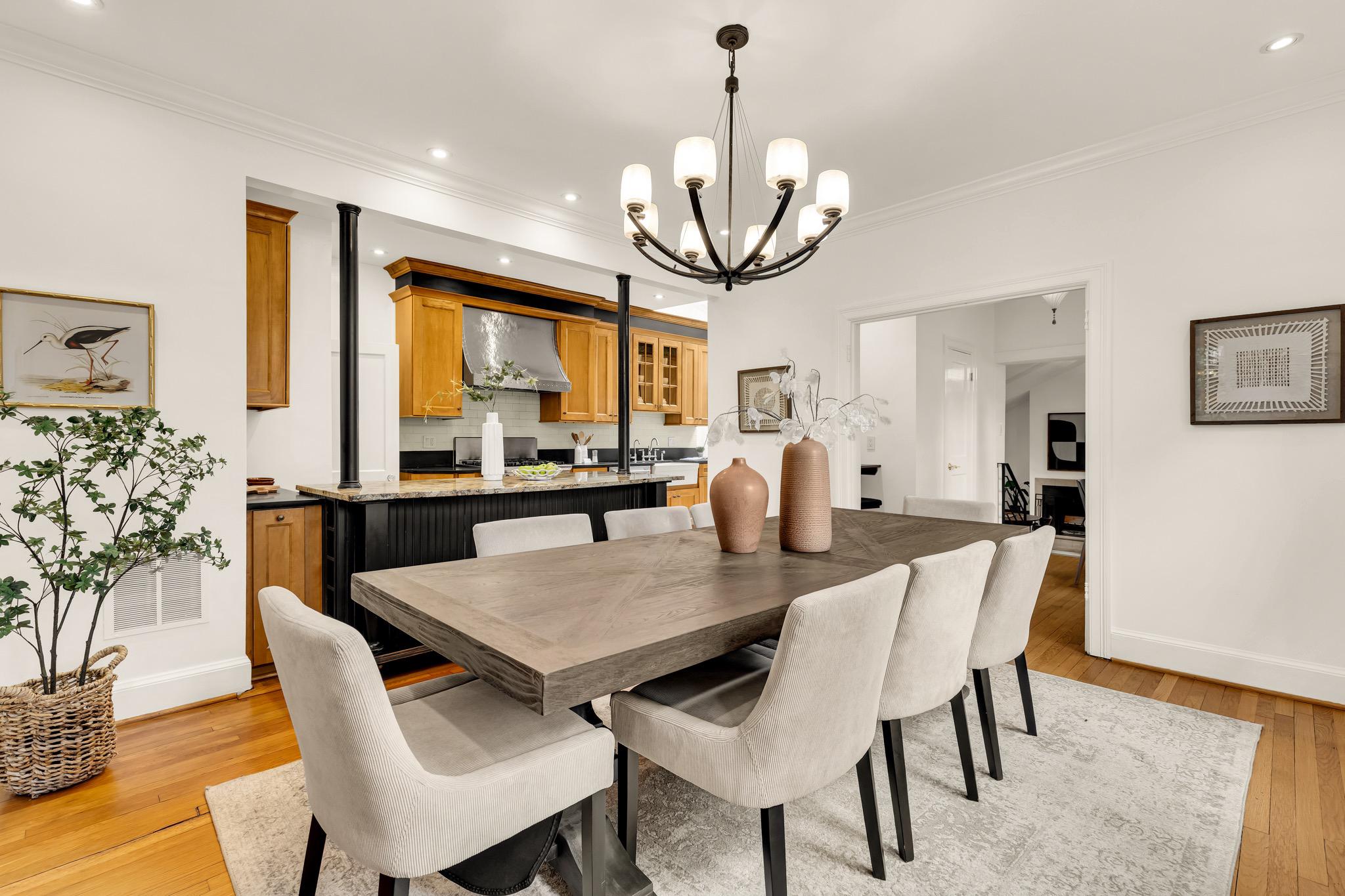 Classic Tudor elegance meets a highly functional, modern layout in this thoughtfully renovated 1926 semi-detached North Cleveland Park residence. A welcoming front porch leads into a gracious living room anchored by a stately fireplace with a period-detailed mantel. The unique architectural design places the staircase at the rear of the room, creating an exceptionally wide and airy main level. The heartbeat of the home is the stunning open-concept chef’s kitchen—with six-burner Wolf range, custom range hood, and thoughtfully designed custom cabinetry—that flows effortlessly into the dining room. Off the dining room is a versatile built-in workspace, offering a convenient area for a work or tech station, and a powder room. The spacious and inviting family room, also featuring its own fireplace and vaulted ceiling, provides the rare main-level recreational space. The attached one-and-a-half car garage offers uncommon urban convenience. And outdoor living is seamless with a brick patio tucked away under the trees for a private retreat. The upper level features three bedrooms and two renovated full baths, headlined by a spacious primary suite with en suite bath. The second bedroom is generously sized, while the L-shaped third bedroom offers a distinct sleeping area that transitions into a sun-drenched corner—a perfect sanctuary for a private office or reading room. The hall bath completes this level. The fully renovated lower level adds exceptional flexibility with its own private outside entrance and full bath, as well as a dedicated laundry room. This level includes space for multiple uses: possibilities include a perfect recreation room, an expansive library and office, or a guest suite. With over 30 windows flooding the home with natural light and a location just blocks from two Metro stations, this home is a rare find that perfectly balances historic charm with modern utility. The surrounding areas offer a perfect combination of suburban-style tranquility and high-end urban amenities. Just blocks from the vibrant Wisconsin and Connecticut Avenues corridors, and located between Tenleytown and the newly developed City Ridge, which serve as central hubs for the neighborhood. Connectivity is a hallmark of this location, with two Metros just blocks away. Choose between Tenleytown or Van Ness Metro with direct access to downtown. Outdoor enthusiasts also benefit from proximity to Hearst Recreation Center and Fort Reno Park, while the lush trails of Glover Archbold Park and Rock Creek Park are nearby.Square footage is estimated and calculated by independent third parties. Additional third party approximate estimates 2,604 SQ FT which includes the finished basement. All information is deemed accurate but not guaranteed.