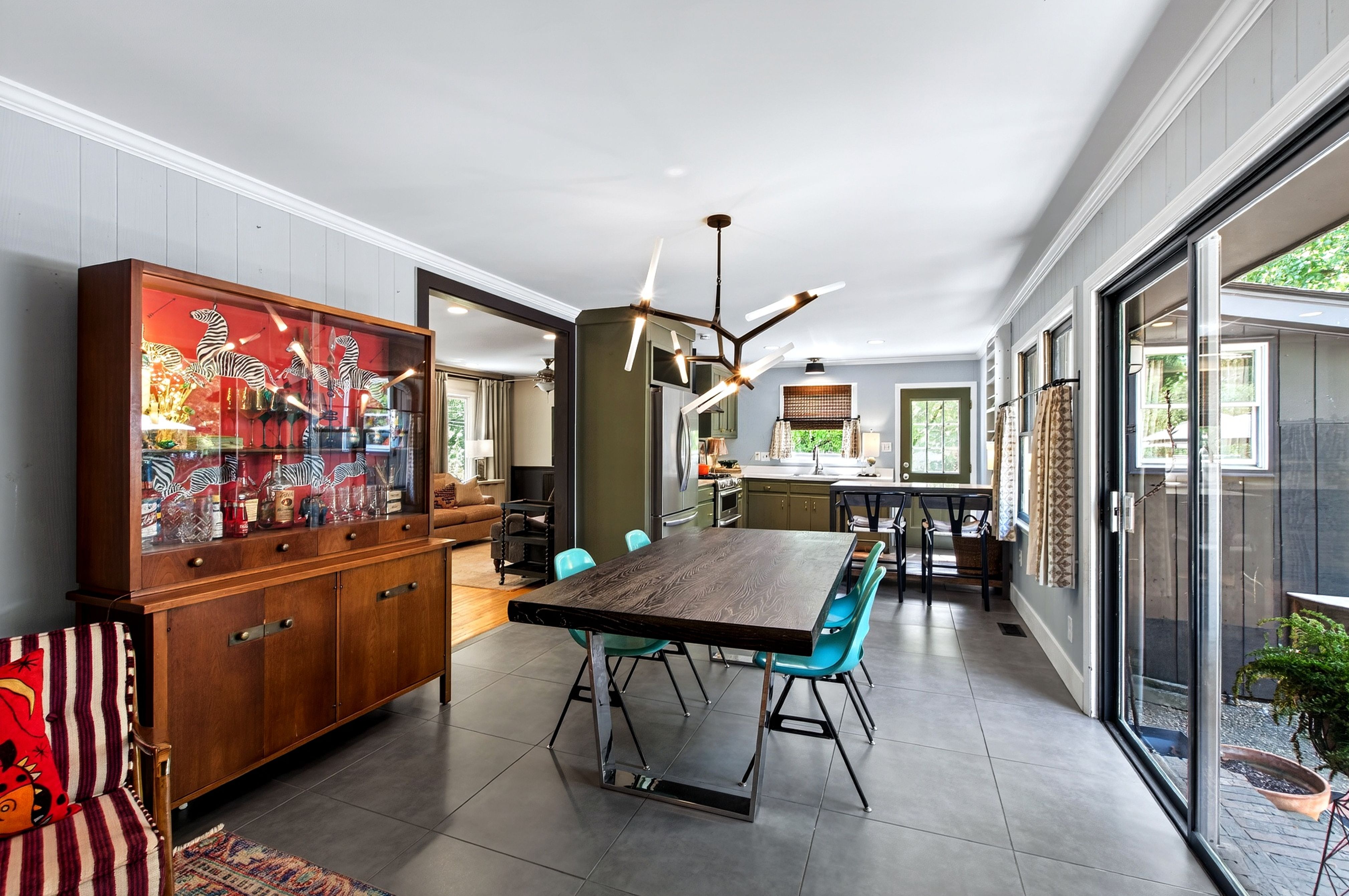 A rare find, with close proximity to North Hills Shopping Center, this mid-century modern ranch is sure to impress. Large windows bring in great natural light, and a functional floor plan maximizes the square footage making it feel spacious and open. With durable tile flooring in the kitchen and hardwoods throughout the rest of the home, there is not a piece of carpet in sight. The eat-in kitchen features butcher block countertops, a gas range, and opens easily to the dining and living areas, where a wood-burning fireplace creates a unique focal point. Just off the kitchen, the laundry room offers plenty of flexibility, use it as a pantry, bar area, or a practical drop zone from the side entrance. With three bedrooms and two bathrooms, the layout is comfortable and easy to live in. Out back, the private, fenced yard offers space to play, garden, or simply relax, along with a patio that's great for entertaining. A charming chicken coop is already in place and could easily be converted into a storage shed if preferred. All of this in a location that puts you close to shopping, dining, and everyday essentials.