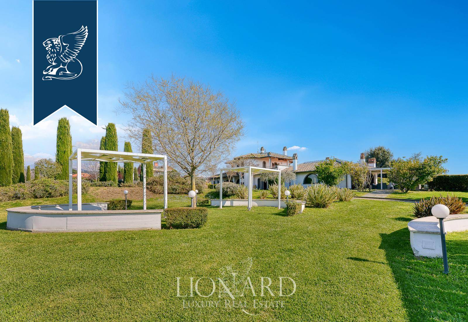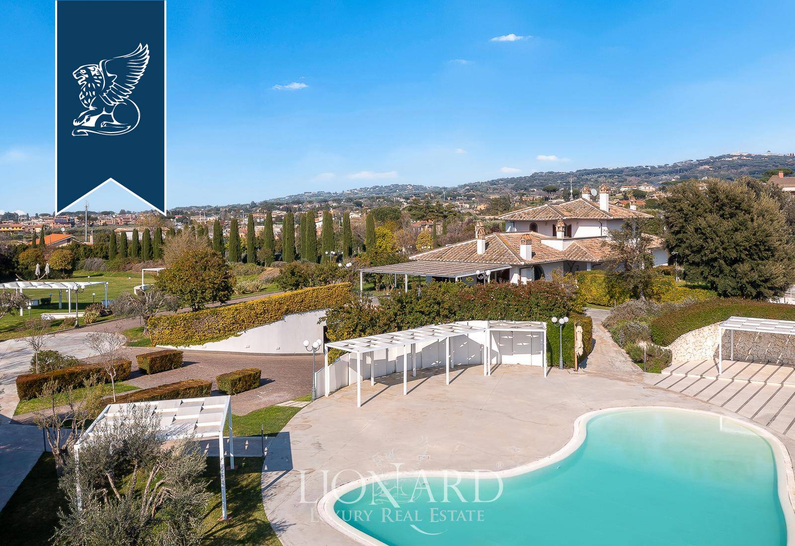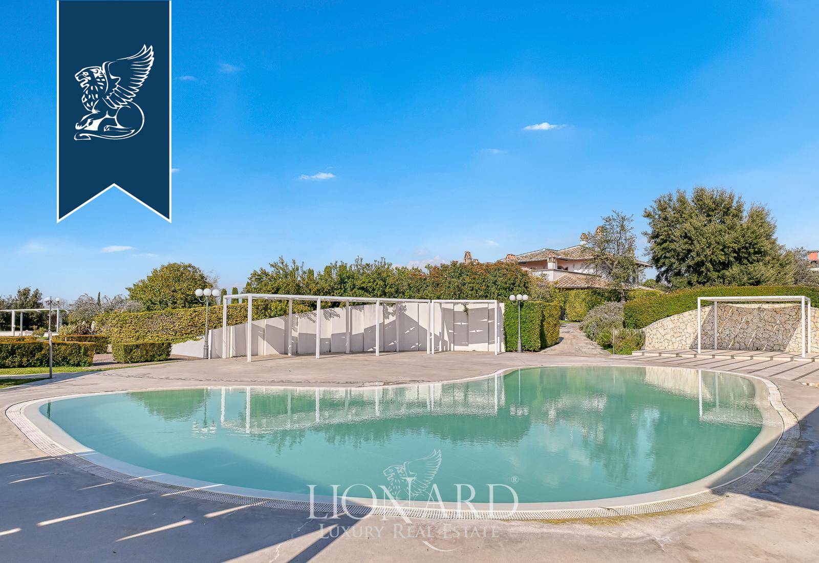 In Castel Gandolfo, among the historic villas that have welcomed the Roman aristocracy for centuries and the residences nestled in the greenery of the Castelli Romani, this impressive villa of approximately 1,000 sqm stands at the heart of a flat, fully enclosed park covering some 3.5 hectares. The long, tree-lined approach leads guests towards the main building, introducing them to a natural setting of olive trees, lavender, aromatic plants, fruit trees and flowering shrubs, arranged with great care by a garden designer to enhance the views and vantage points. The villa’s understated architecture harmonises with the surrounding greenery, whilst the evening and night-time lighting highlights the pathways, fountains and the most romantic corners of the grounds.Outside, the grounds are divided into several functional ‘islands’, designed to accommodate tables, gazebos, stages and lounges depending on the intended use. The swimming pool, with its intricate shape and paved edge, is equipped with evening lighting and serves as the dramatic centrepiece for aperitifs, lunches and dinners al fresco during the summer season. The nearby main patio, with unobstructed views of the countryside and, on clear days, as far as the horizon, provides a further natural setting for receptions and moments of relaxation. The guarded on-site car park, with direct access from the main road and capacity for around 120 cars and two coaches, ensures convenient and secure management even for large-scale events, whilst maintaining a high level of privacy at all times thanks to the perimeter fencing and controlled access system.Ref. 15483https://www.lionard.com/villa-spectacular-park-pool-castel-gandolfo.html