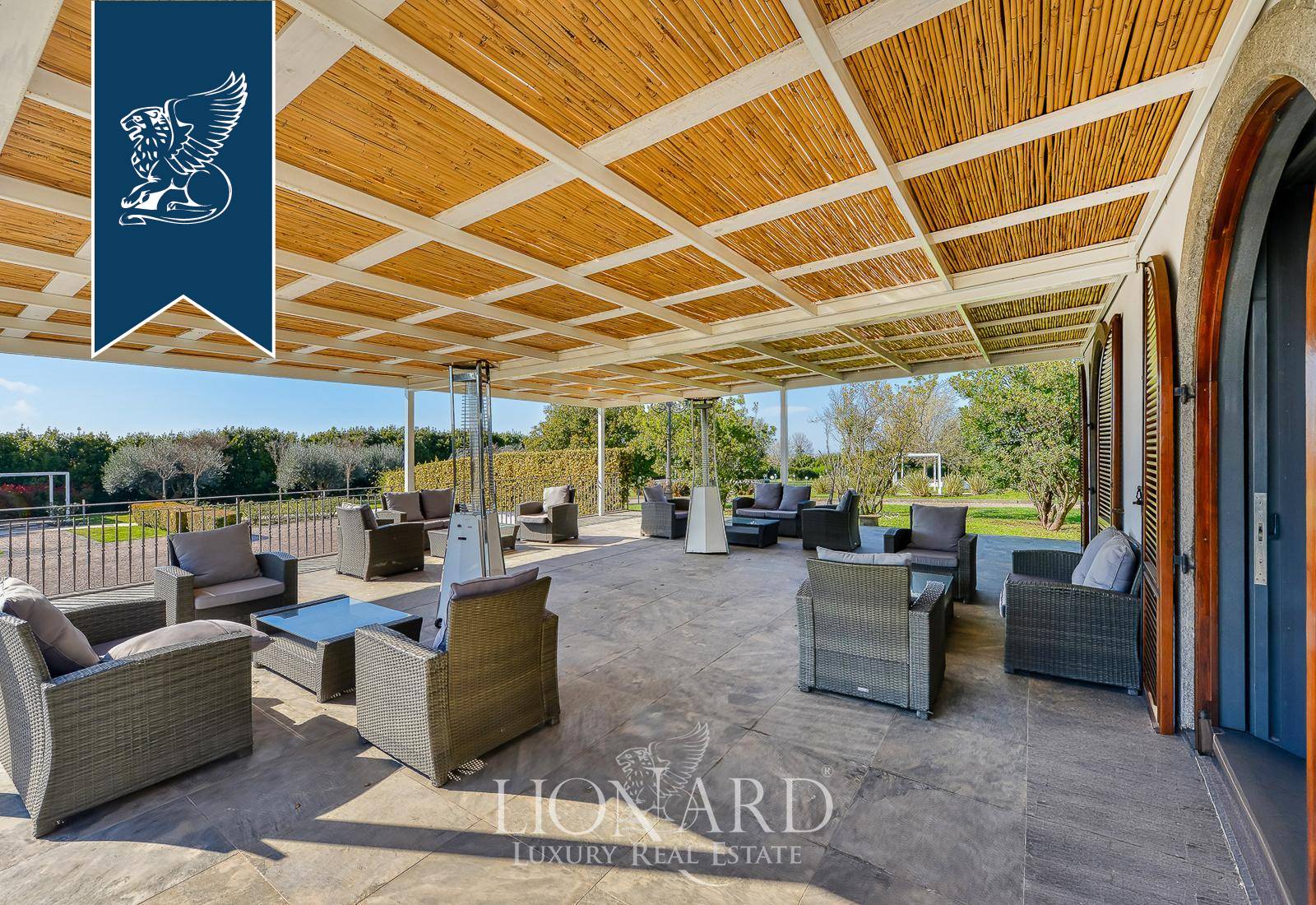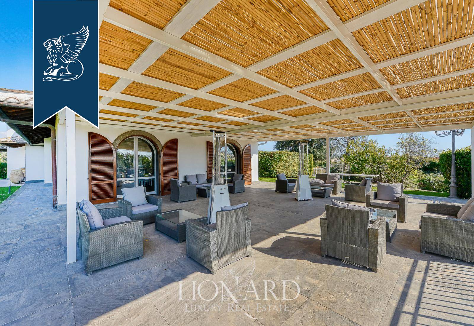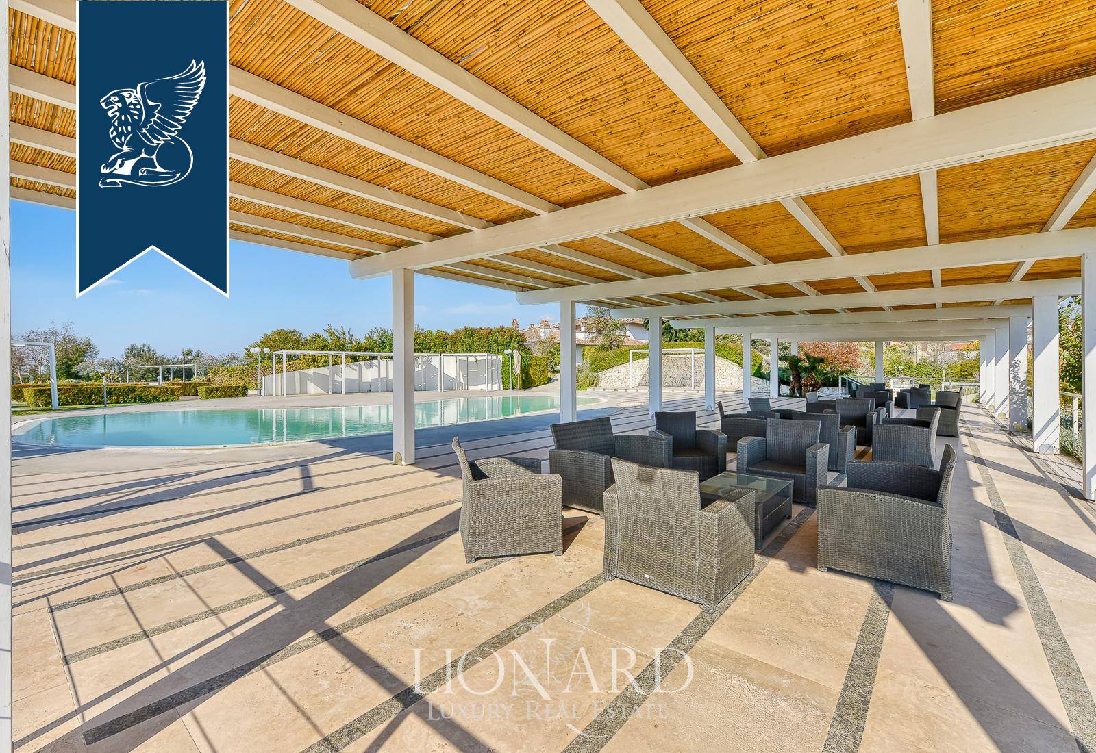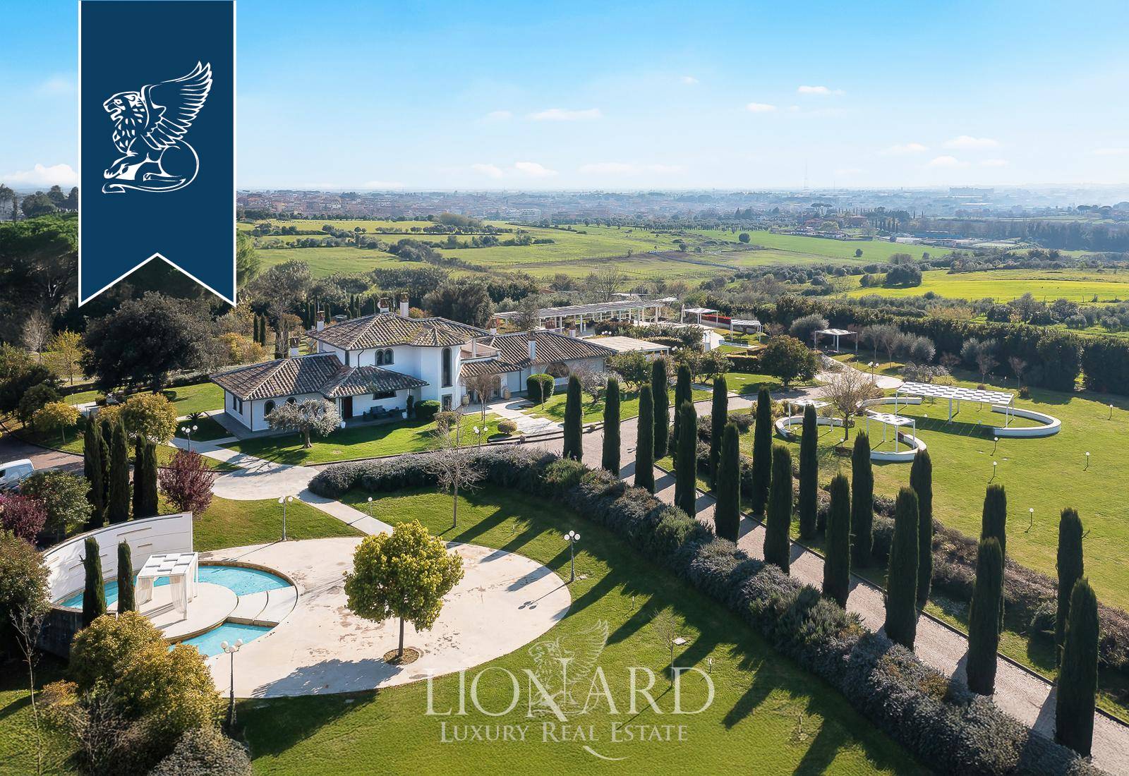 In Castel Gandolfo, among the historic villas that have welcomed the Roman aristocracy for centuries and the residences nestled in the greenery of the Castelli Romani, this impressive villa of approximately 1,000 sqm stands at the heart of a flat, fully enclosed park covering some 3.5 hectares. The long, tree-lined approach leads guests towards the main building, introducing them to a natural setting of olive trees, lavender, aromatic plants, fruit trees and flowering shrubs, arranged with great care by a garden designer to enhance the views and vantage points. The villa’s understated architecture harmonises with the surrounding greenery, whilst the evening and night-time lighting highlights the pathways, fountains and the most romantic corners of the grounds.Outside, the grounds are divided into several functional ‘islands’, designed to accommodate tables, gazebos, stages and lounges depending on the intended use. The swimming pool, with its intricate shape and paved edge, is equipped with evening lighting and serves as the dramatic centrepiece for aperitifs, lunches and dinners al fresco during the summer season. The nearby main patio, with unobstructed views of the countryside and, on clear days, as far as the horizon, provides a further natural setting for receptions and moments of relaxation. The guarded on-site car park, with direct access from the main road and capacity for around 120 cars and two coaches, ensures convenient and secure management even for large-scale events, whilst maintaining a high level of privacy at all times thanks to the perimeter fencing and controlled access system.Ref. 15483https://www.lionard.com/villa-spectacular-park-pool-castel-gandolfo.html