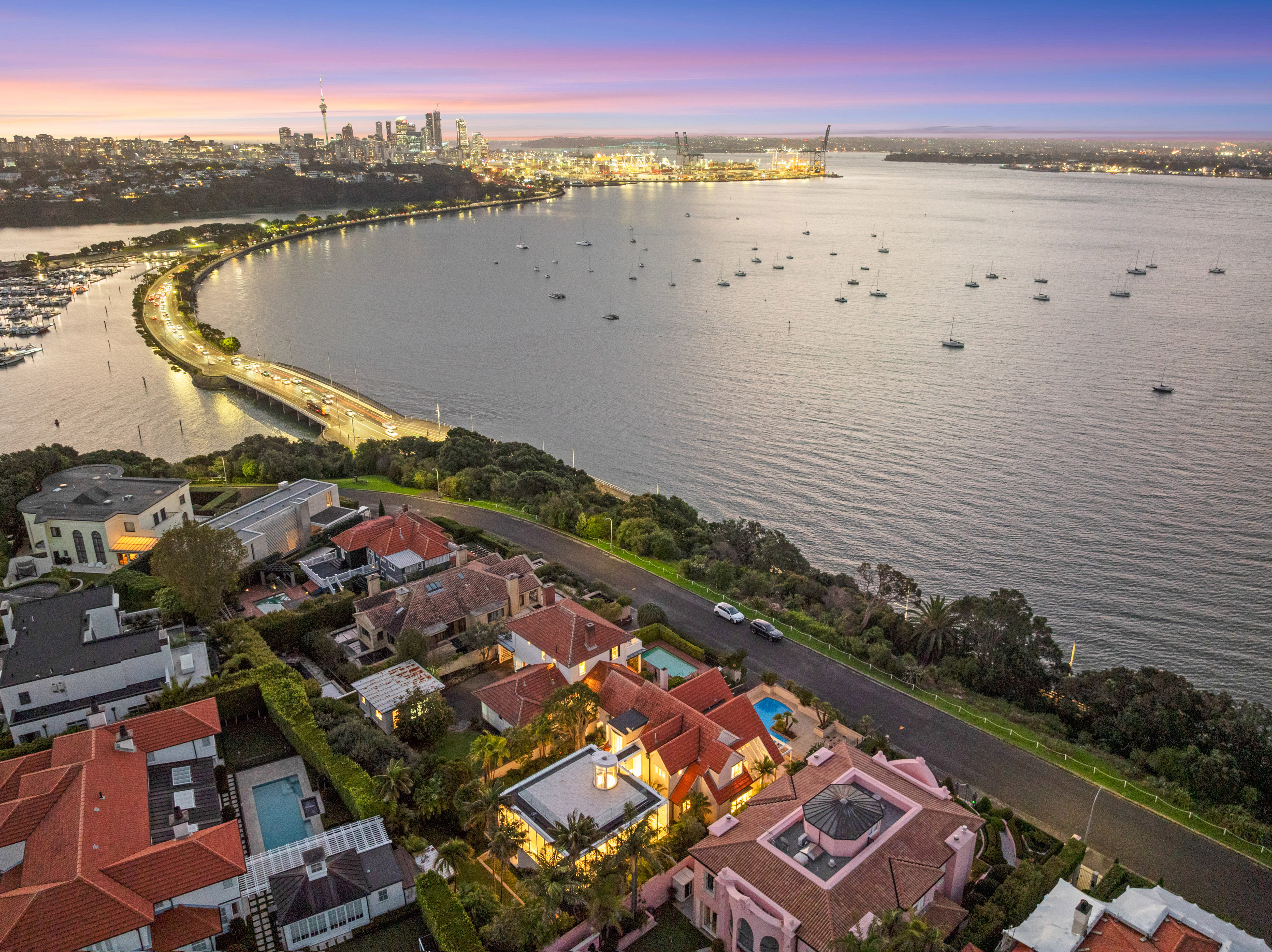 Celebrating a grandstand position on Paritai Drive, arguably Auckland’s finest street, this 941sqm estate showcases 360-degree harbour views that must be experienced to be believed. With only two owners since it was crafted in 1932, the residence is now a striking juxtaposition of old and new - a unique blend of classic character and contemporary architecture. Besides the small cottage at number 58, this home was the very first house to be built in the newly subdivided Paritai Drive. Sailing afficionados will also recognise the original owner, celebrated yacht designer Bob Stewart. In fact, the iconic Stewart 34 and many other well-known Auckland yachts were designed in the top-level study, overlooking the harbour. The front of the home remains true to the original 1930s heritage. It’s rich with period detailing and has been elegantly modernised over time. Spectacular harbour views are on full display in the ground floor formal living and dining rooms, which flow out to sun-soaked terraces and the recently refurbished swimming pool and spa complex. The entertainer’s kitchen has been refurbished and features Gaggenau appliances and generous storage and workspaces. As well as the sweeping staircase, a lift also accesses the upper-level accommodation. Three bedrooms and the study up here savour panoramic views of the Auckland ports, busy harbour, Rangitoto and the North Shore. Steel joinery withstands the coastal conditions, and the rooms are serviced by the marble family bathroom. A two-level glass walkway connects the original to the new marble extension at the rear, which sits above the double garage. Designed by Ken Crosson Architects, it was created as a boardroom but could be utilised as a home office, guest accommodation or teenage retreat. Sleek, streamlined design incorporates a concealed built in tv, wall mounted bed, bathroom and kitchen. Walls of glass around the perimeter are protected by bespoke motorised screens, which tilt to accommodate light and sun. A spiral internal staircase arrives up to the top floor rooftop terrace, which enjoys 360-degree views. A deceased estate, it is an incredibly rare chance to acquire one of Paritai Drive’s last major opportunities.Viewings by Private Appointment