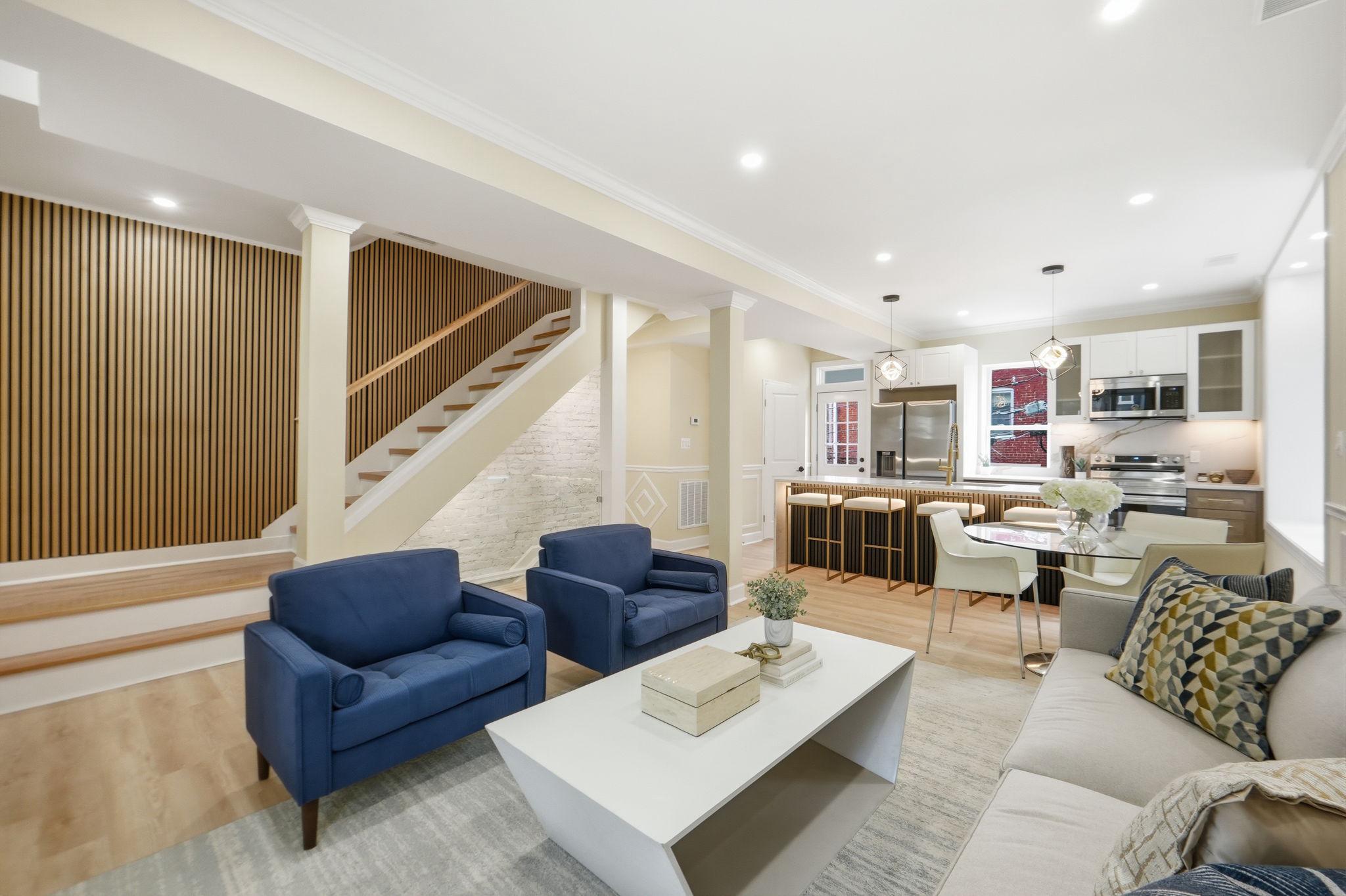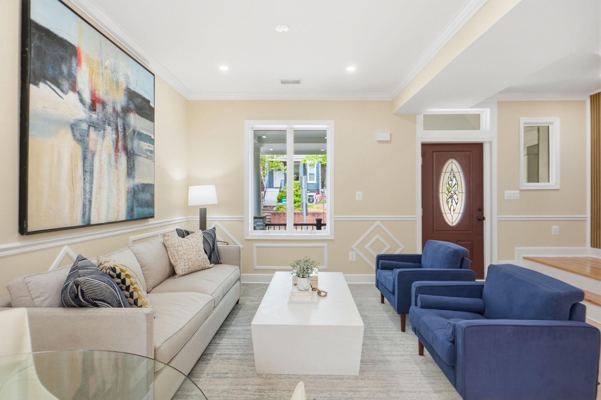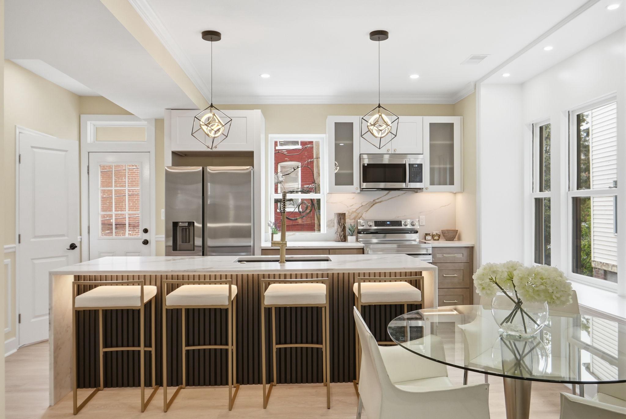 Welcome to 518 Columbia Road NW, a beautifully reimagined 3-bedroom, 2.5-bath residence in the heart of Park View, DC. Set on a prominent corner lot, this home offers exceptional curb appeal and a seamless blend of classic character with modern design. One of its standout features is the abundance of natural light, with windows at the front, rear, and along the side, something rarely found in DC row homes, creating a bright and airy feel throughout. The main level features an open-concept layout ideal for both everyday living and entertaining, centered around a luxurious kitchen with stunning waterfall countertops, sleek cabinetry, and high-end finishes that flow effortlessly into the living and dining areas. Upstairs, you’ll find two spacious bedrooms and a full bath, while just above the primary bedroom is a unique bonus level, perfect for a lounge space. The lower level adds incredible versatility, featuring a third bedroom, a separate living area, kitchenette, and walkout access to the driveway, along with a dedicated laundry area for added convenience. Completing the home is private, gated off-street parking, an incredibly rare find in DC, providing both security and ease. Located in vibrant Park View, just moments from neighborhood favorites, parks, and easy access to downtown DC, this home offers the perfect blend of style, functionality, and location. Reach out today for a private showing.