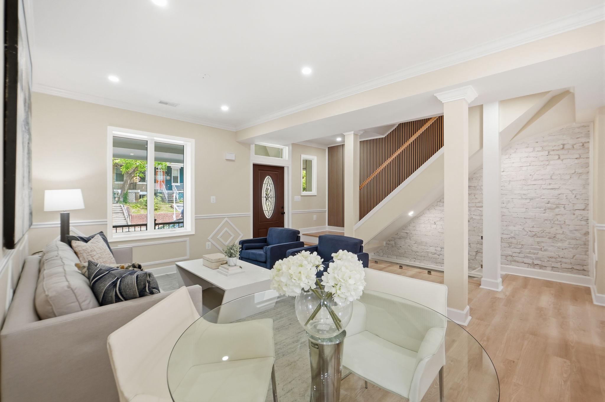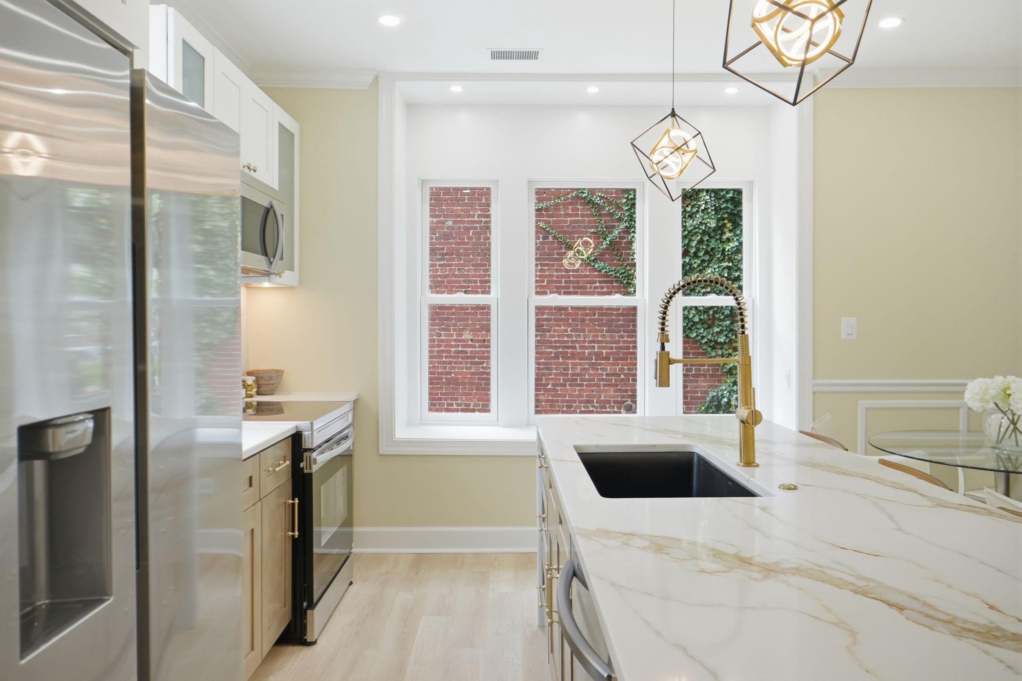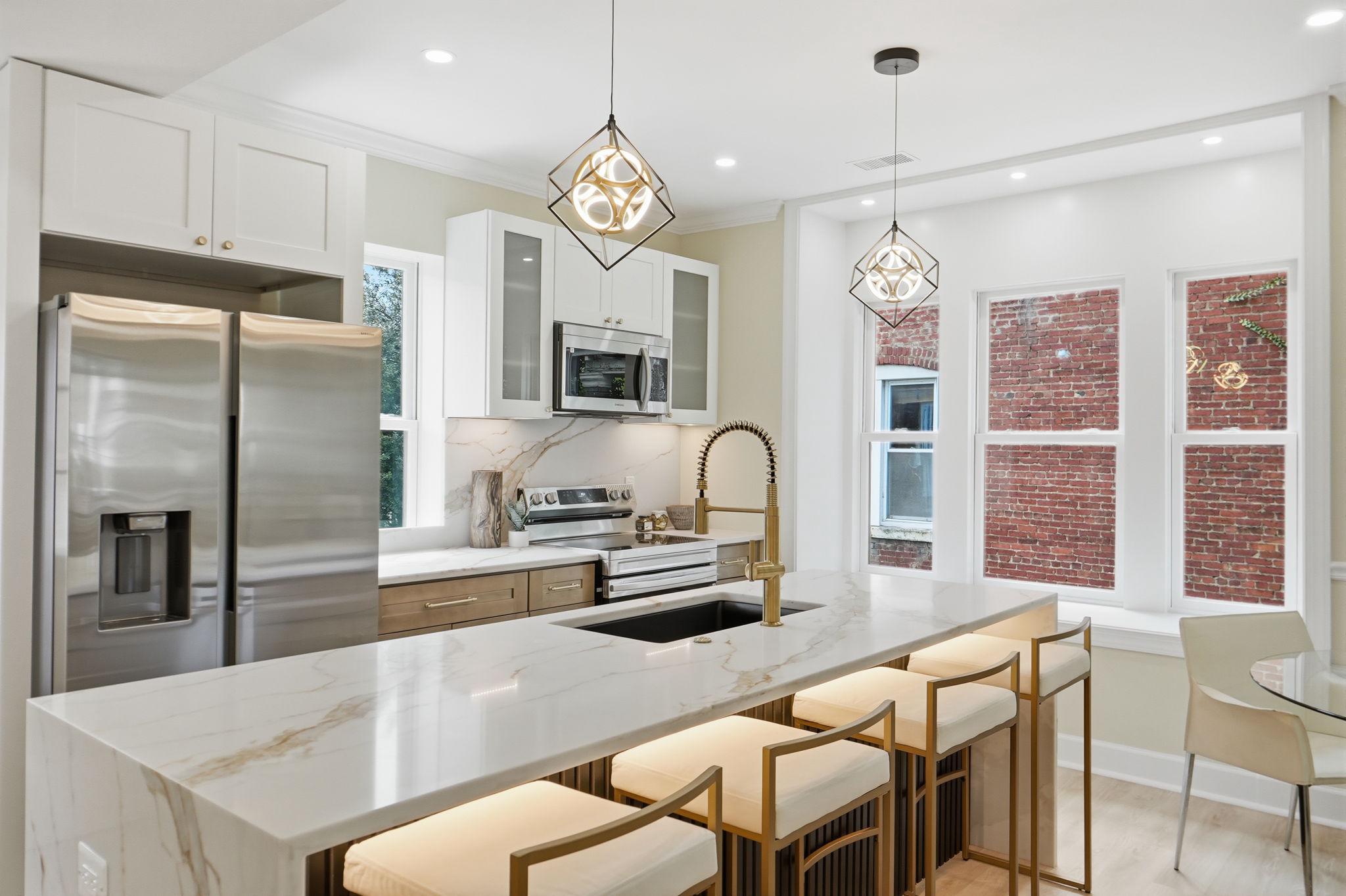 Welcome to 518 Columbia Road NW, a beautifully reimagined 3-bedroom, 2.5-bath residence in the heart of Park View, DC. Set on a prominent corner lot, this home offers exceptional curb appeal and a seamless blend of classic character with modern design. One of its standout features is the abundance of natural light, with windows at the front, rear, and along the side, something rarely found in DC row homes, creating a bright and airy feel throughout. The main level features an open-concept layout ideal for both everyday living and entertaining, centered around a luxurious kitchen with stunning waterfall countertops, sleek cabinetry, and high-end finishes that flow effortlessly into the living and dining areas. Upstairs, you’ll find two spacious bedrooms and a full bath, while just above the primary bedroom is a unique bonus level, perfect for a lounge space. The lower level adds incredible versatility, featuring a third bedroom, a separate living area, kitchenette, and walkout access to the driveway, along with a dedicated laundry area for added convenience. Completing the home is private, gated off-street parking, an incredibly rare find in DC, providing both security and ease. Located in vibrant Park View, just moments from neighborhood favorites, parks, and easy access to downtown DC, this home offers the perfect blend of style, functionality, and location. Reach out today for a private showing.