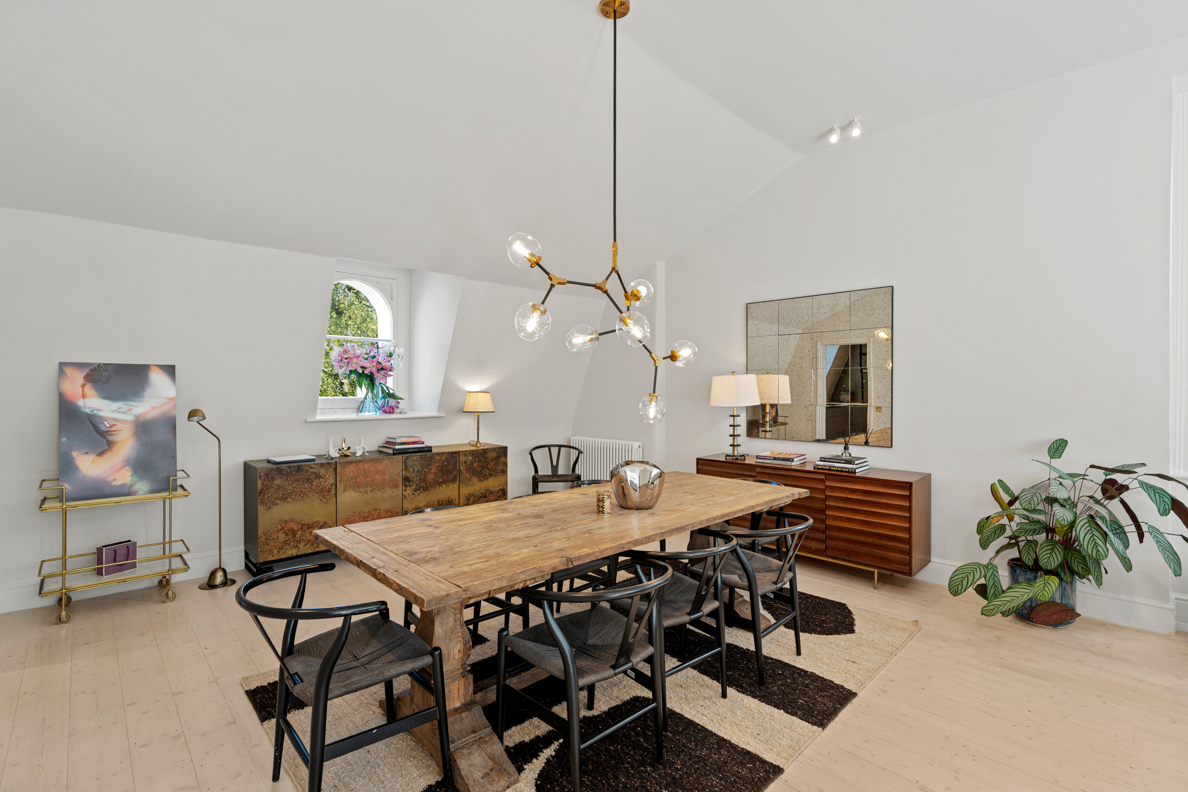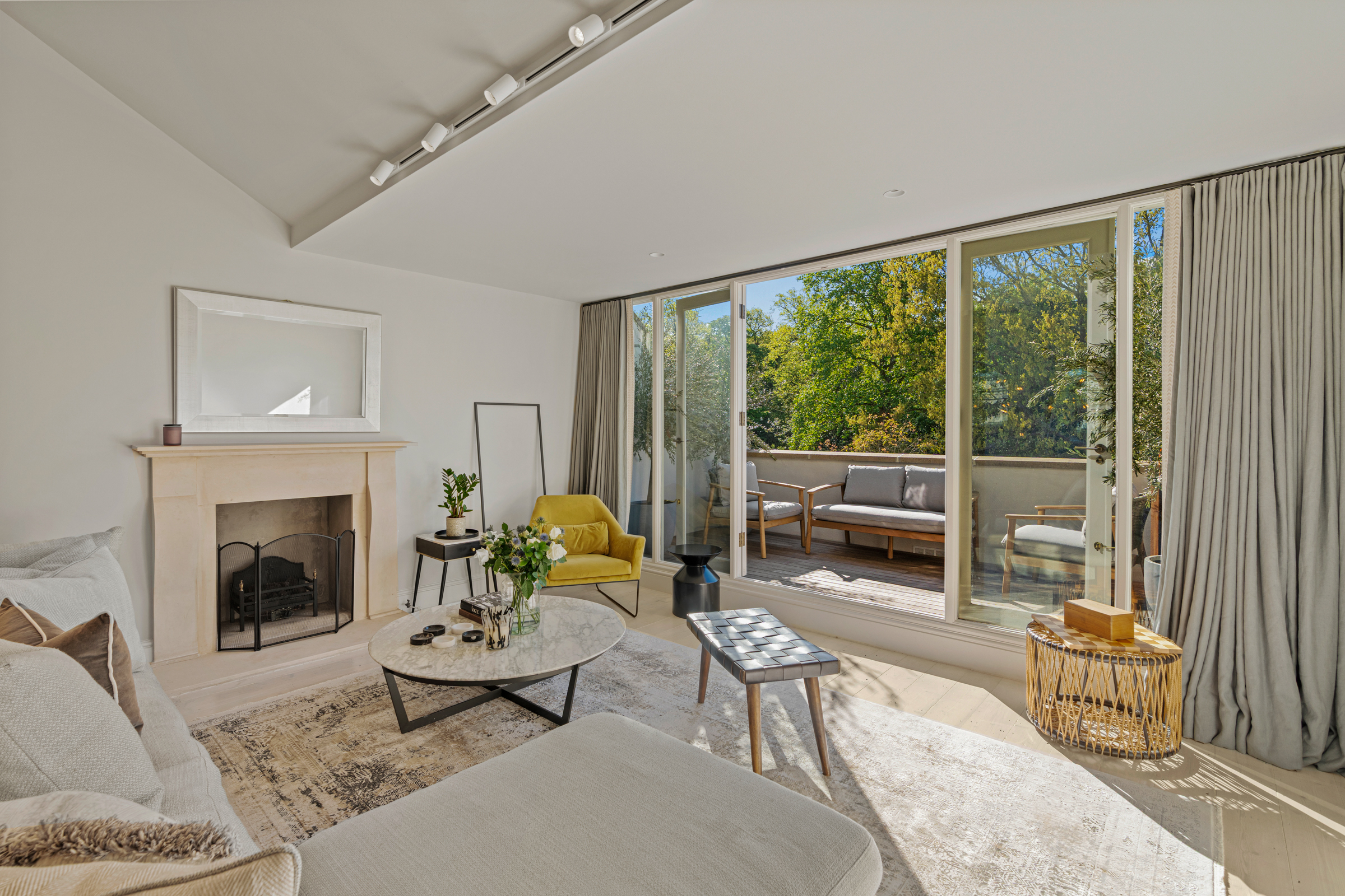 Set across the upper levels of an elegant Grade II-listed Italianate villa, this beautifully reimagined three-bedroom penthouse occupies a privileged position directly overlooking Holland Park, with a south-facing terrace and access to a remarkable 150ft communal garden.