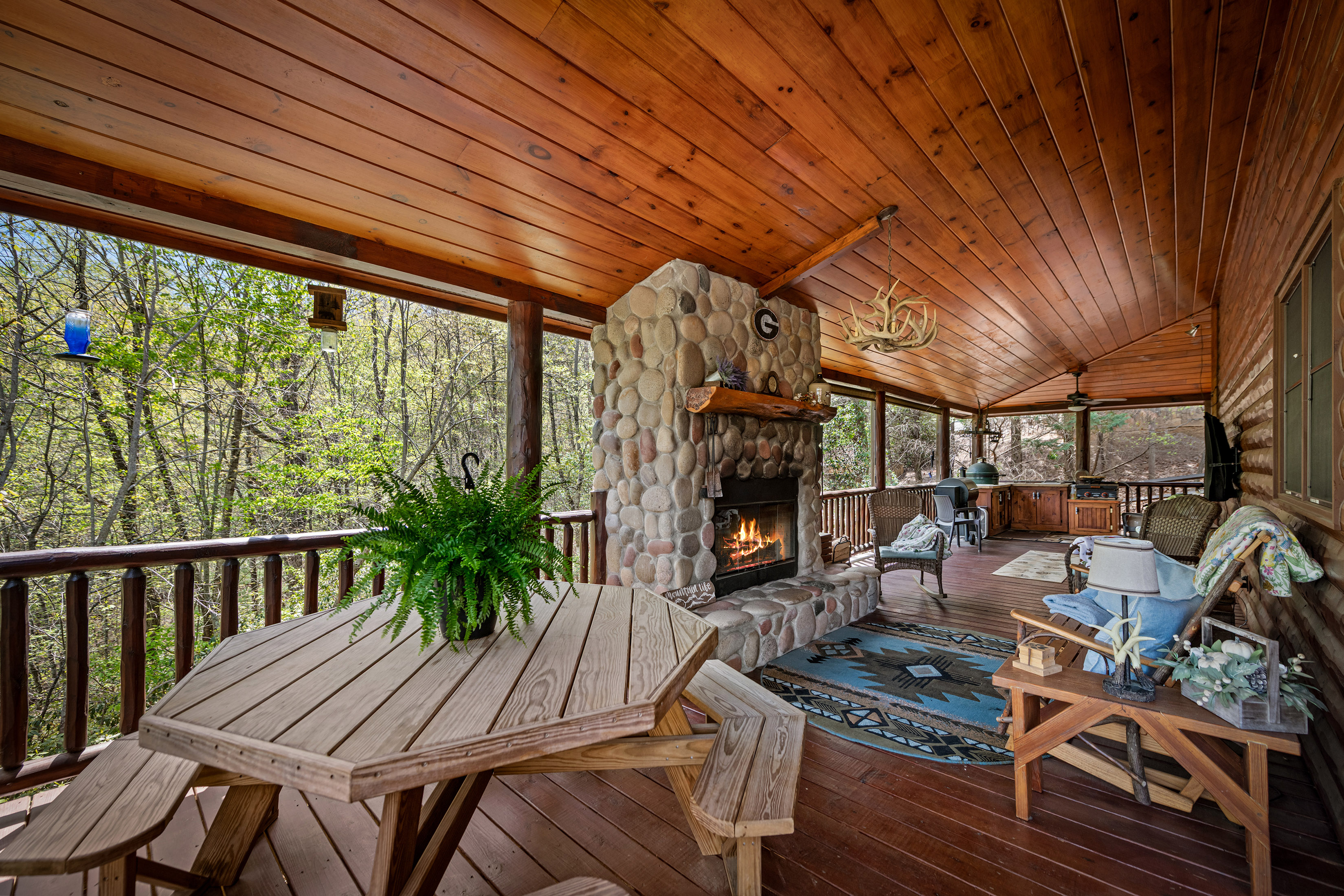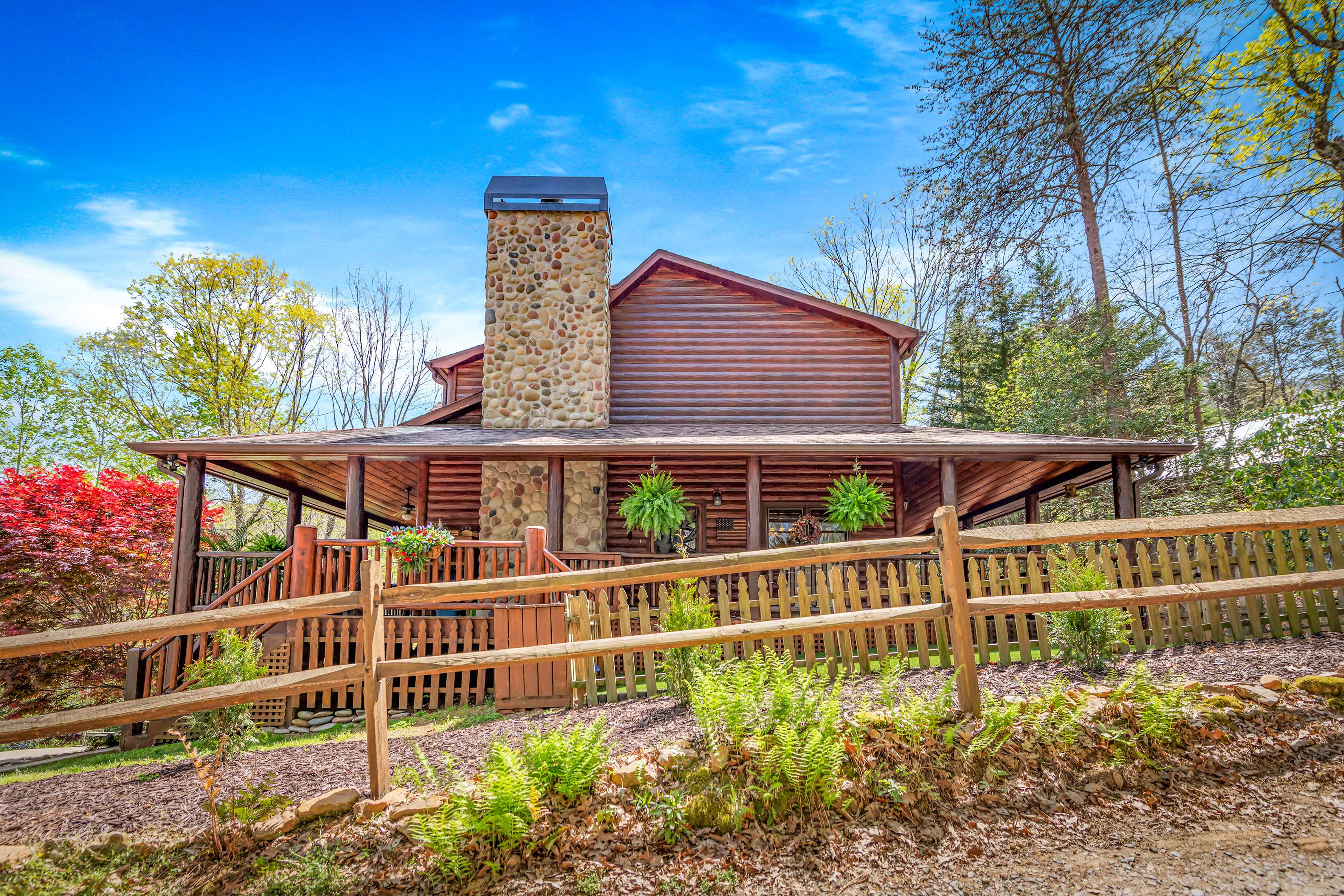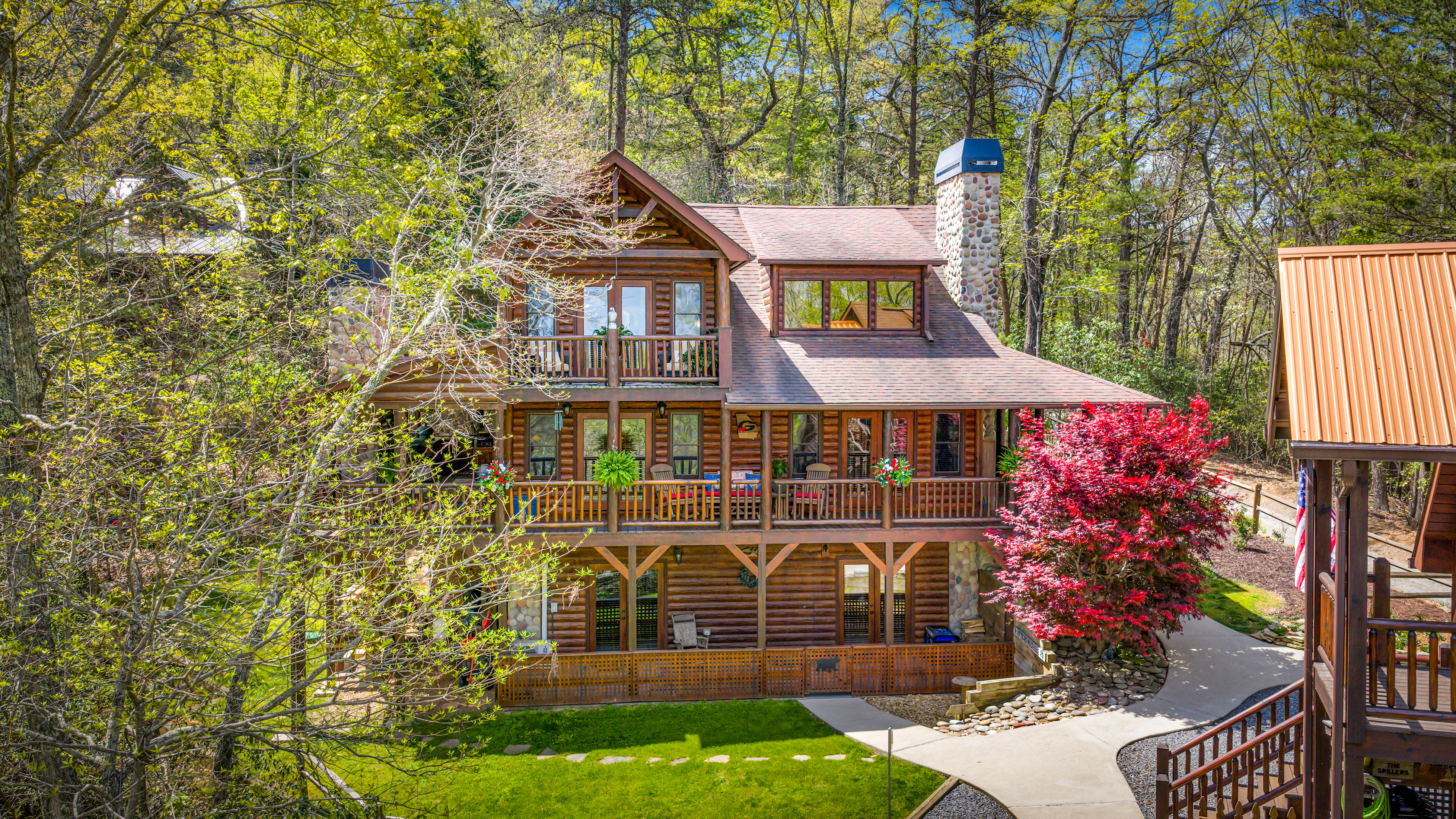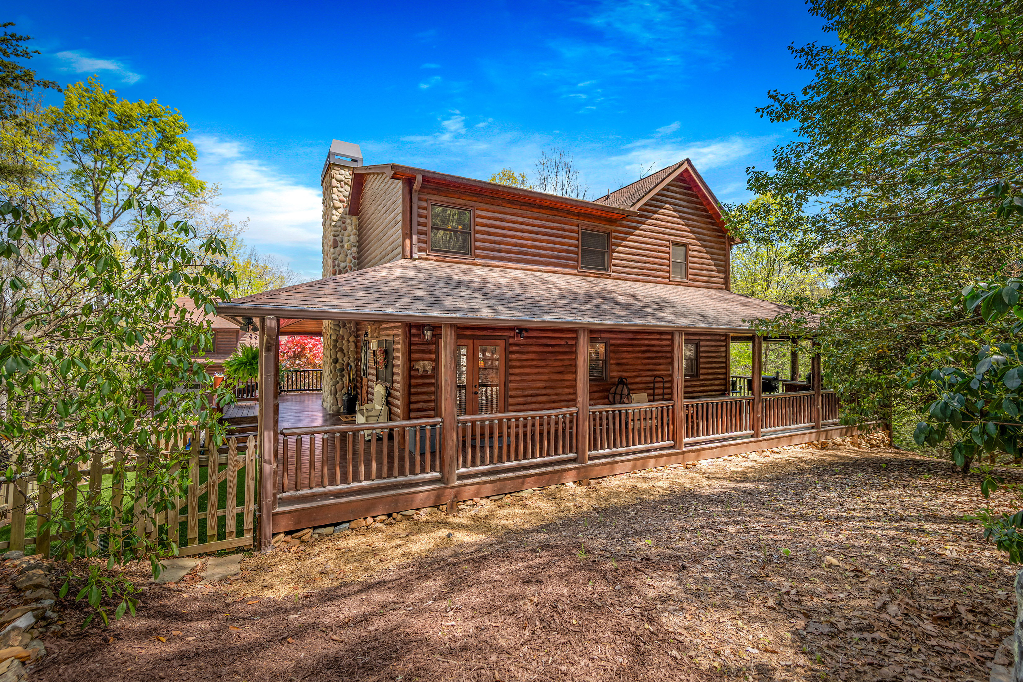 Located in the heart of the coveted Aska Adventure Area, this meticulously maintained four-bedroom, four-bath mountain retreat offers the very best of Blue Ridge living. Privately nestled on 1.6 acres with all-paved access from town, this property reflects true pride of ownership throughout. Just minutes from tubing and kayaking on the Toccoa River, Lake Blue Ridge boat launch, and premier hiking and biking trails , all while a short drive to downtown Blue Ridge. The main level welcomes you with soaring ceilings, a stunning river rock fireplace, and an open kitchen and dining area. Three sets of doors extend to a wraparound covered porch with fireplace and grilling station perfect for year-round enjoyment. A guest bedroom and full bath complete the main level. Upstairs, a spacious loft (currently a billiards room) leads to a private primary suite with its own covered porch and existing long-range mountain views. The terrace level offers a den, flex room, bunk bedroom, and full bath, with French doors opening to a level, private yard ideal for pets or gardening. A detached oversized two-car garage with epoxy floors and workspace includes a large finished room with full bath above perfect for a gym, office, or guest suite. Currently, long-range views are enjoyed from the upstairs bedroom and loft, and with thoughtful vista pruning, those views could be opened from the main and terrace levels. Move-in ready with a rare blend of impeccable care, privacy, and potential. Flat, usable yard and proximity to town make it ideal as a full-time home, private getaway or high-performing rental investment