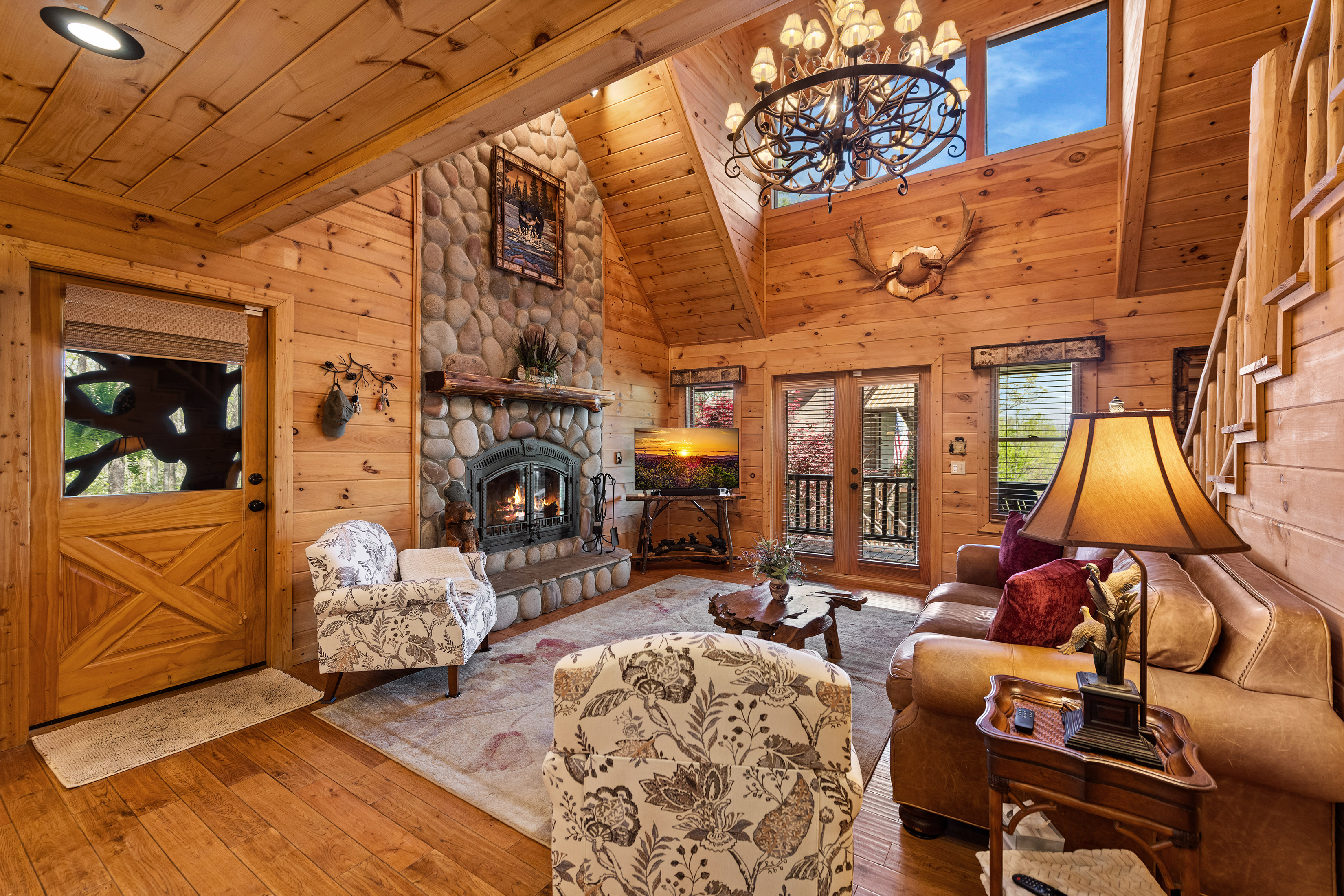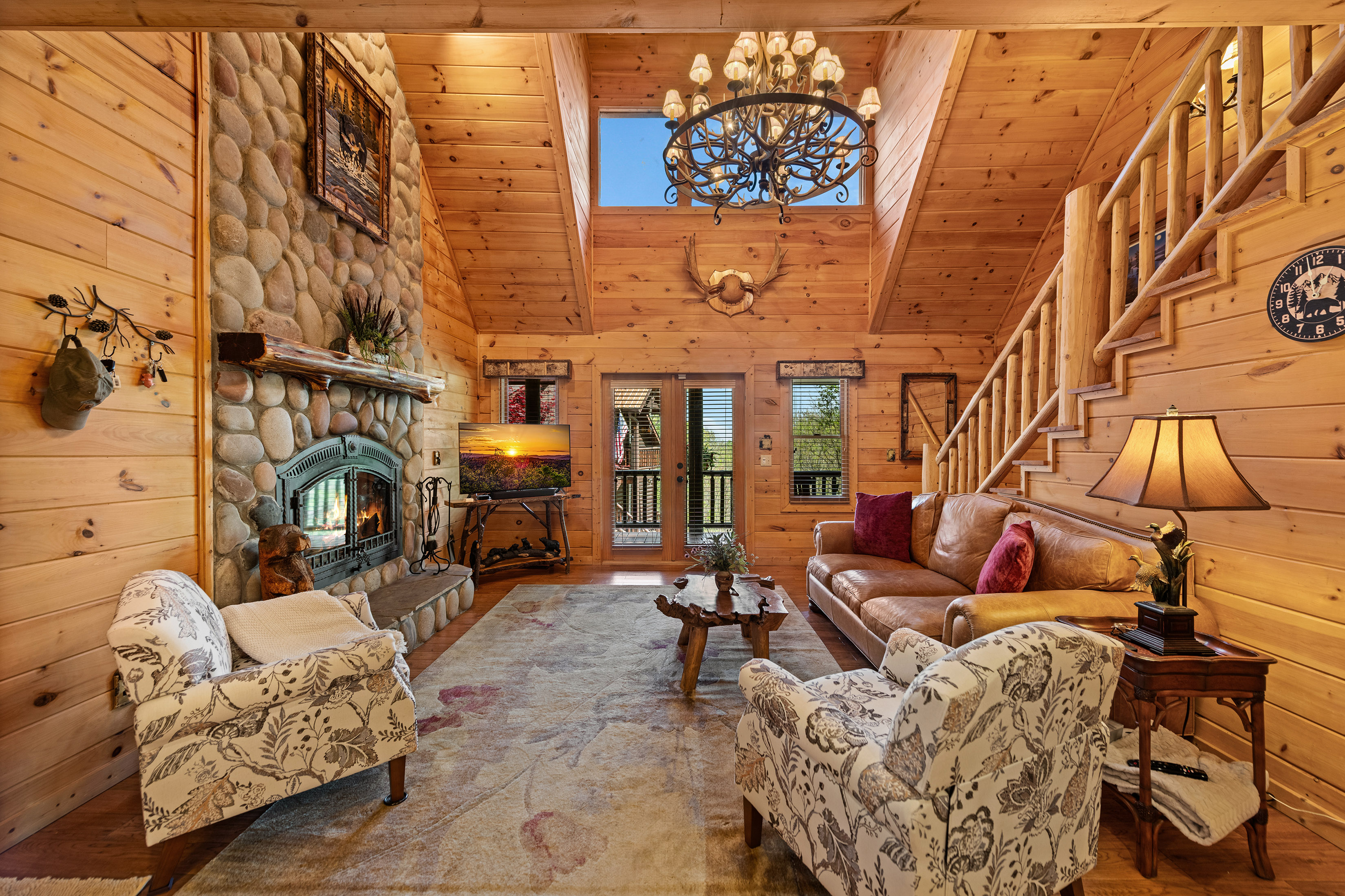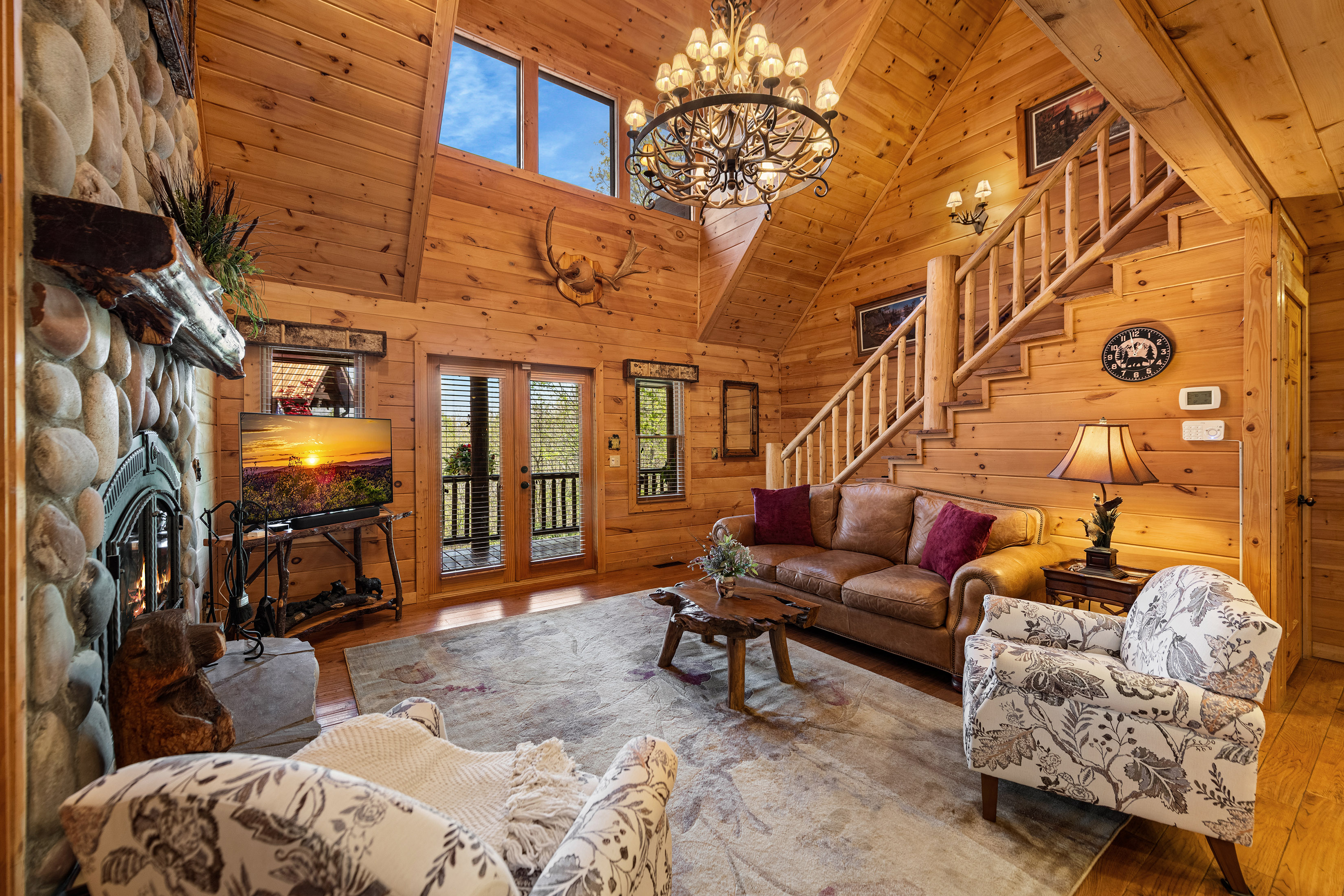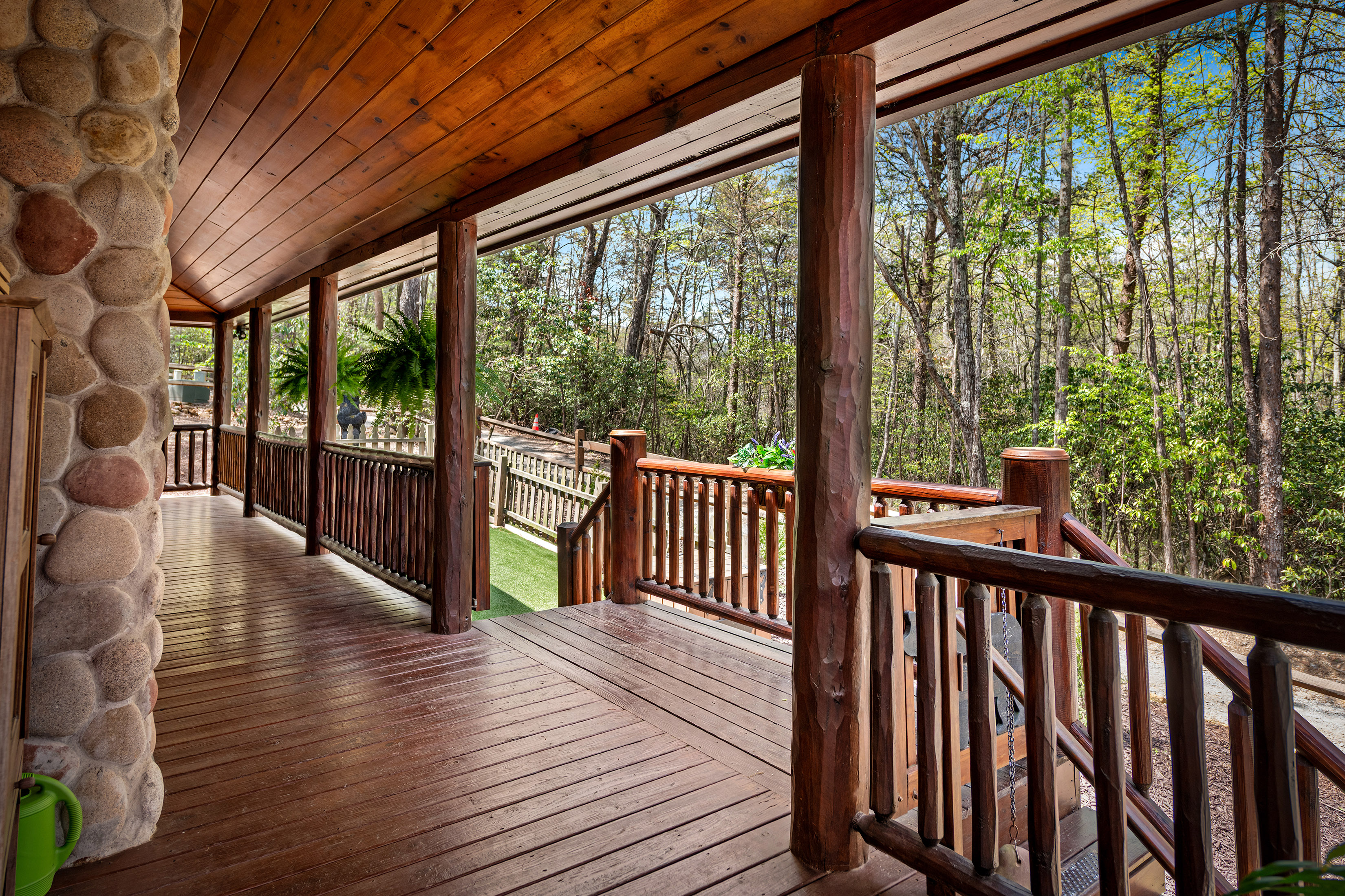 Located in the heart of the coveted Aska Adventure Area, this meticulously maintained four-bedroom, four-bath mountain retreat offers the very best of Blue Ridge living. Privately nestled on 1.6 acres with all-paved access from town, this property reflects true pride of ownership throughout. Just minutes from tubing and kayaking on the Toccoa River, Lake Blue Ridge boat launch, and premier hiking and biking trails , all while a short drive to downtown Blue Ridge. The main level welcomes you with soaring ceilings, a stunning river rock fireplace, and an open kitchen and dining area. Three sets of doors extend to a wraparound covered porch with fireplace and grilling station perfect for year-round enjoyment. A guest bedroom and full bath complete the main level. Upstairs, a spacious loft (currently a billiards room) leads to a private primary suite with its own covered porch and existing long-range mountain views. The terrace level offers a den, flex room, bunk bedroom, and full bath, with French doors opening to a level, private yard ideal for pets or gardening. A detached oversized two-car garage with epoxy floors and workspace includes a large finished room with full bath above perfect for a gym, office, or guest suite. Currently, long-range views are enjoyed from the upstairs bedroom and loft, and with thoughtful vista pruning, those views could be opened from the main and terrace levels. Move-in ready with a rare blend of impeccable care, privacy, and potential. Flat, usable yard and proximity to town make it ideal as a full-time home, private getaway or high-performing rental investment