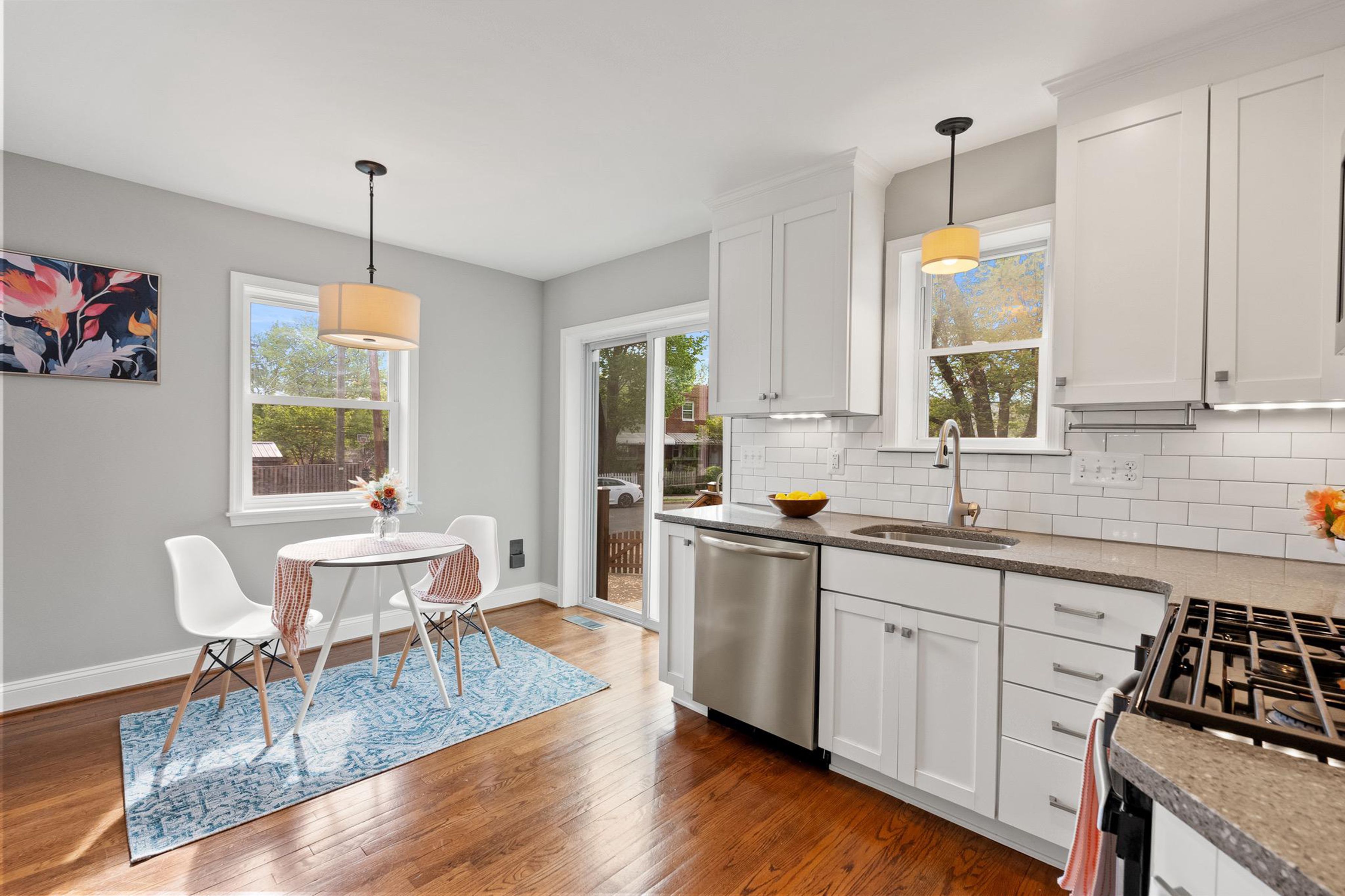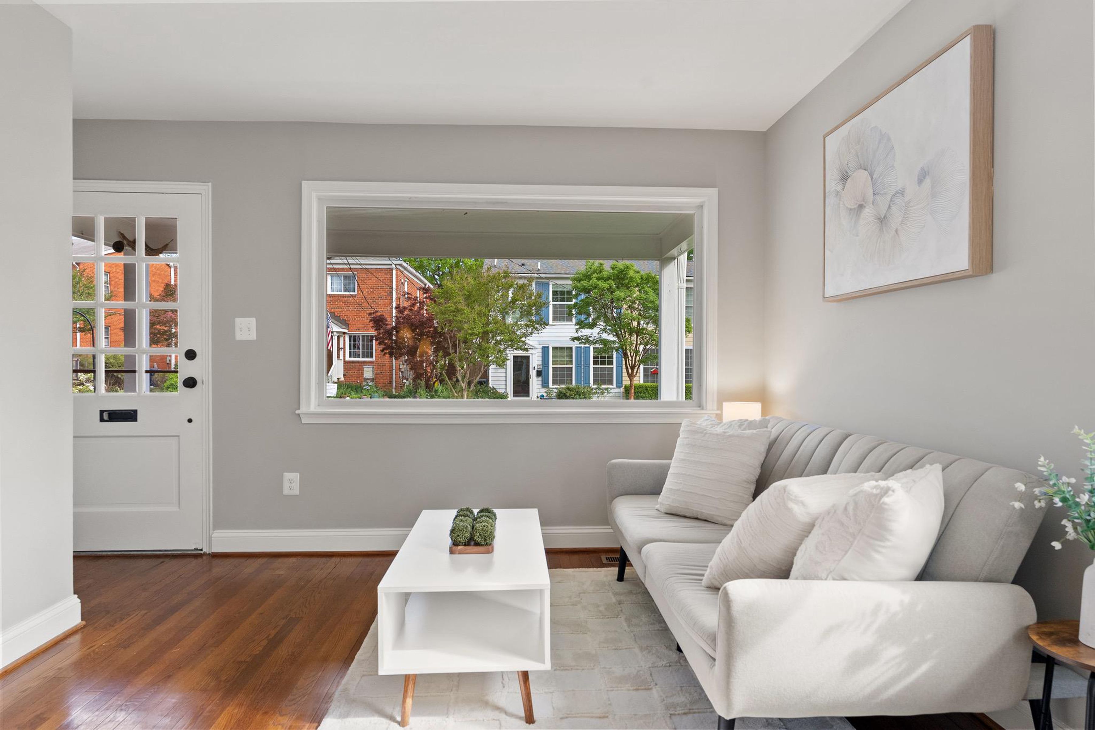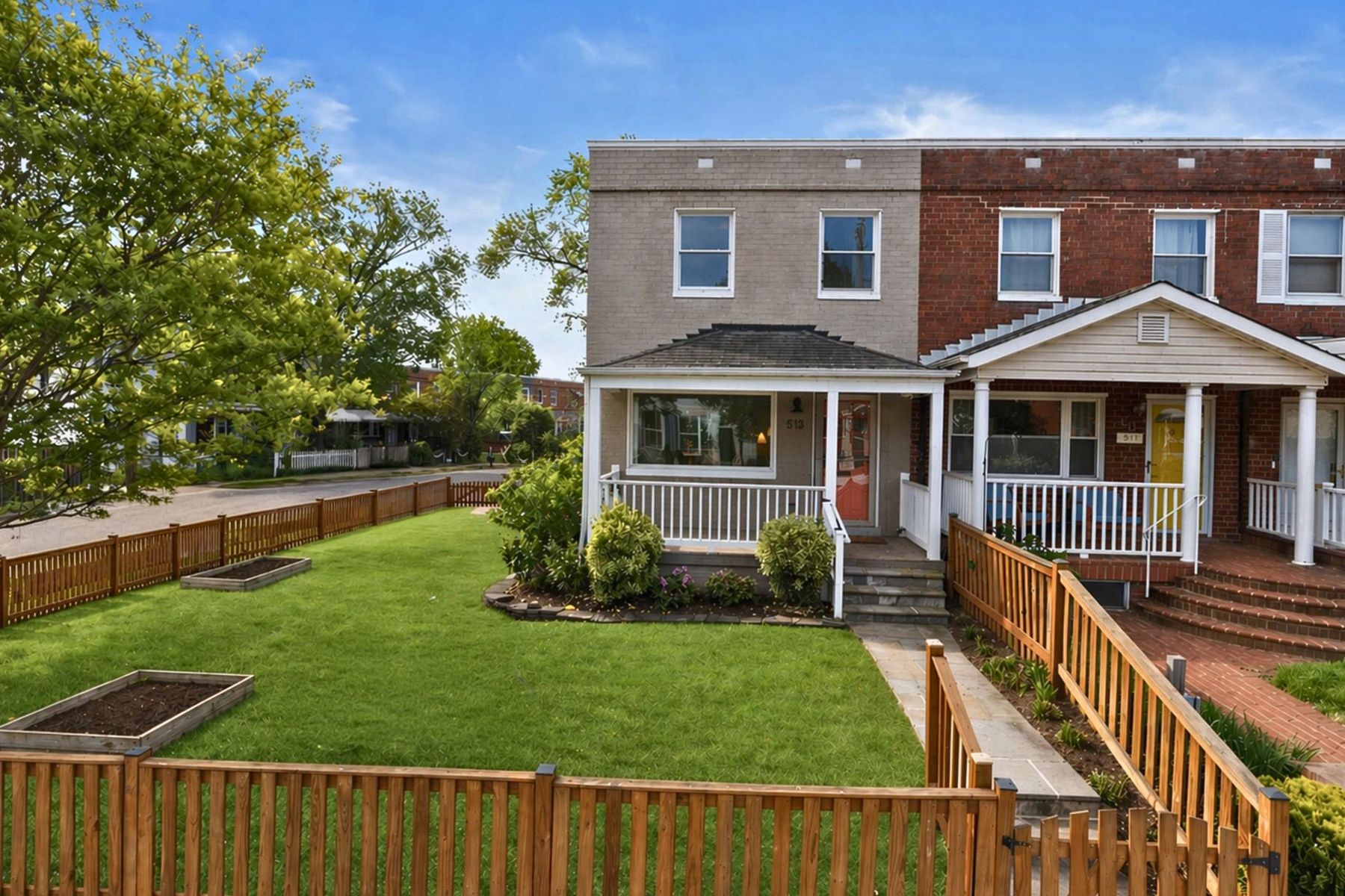 Welcome to 513 East Bellefonte Avenue in Del Ray. This property is unique: the picture-perfect fenced, corner lot is significantly larger than most Del Ray row homes, providing ample space for parking (up to 3 cars), entertainment, or future expansion. The yard features mature, professional landscaping, raised garden beds, and  fluffy green grass. This end-unit row home is tastefully updated & well-maintained, including freshly painted from top to bottom. Flooded with natural light, the Living Level is anchored by a stunning, oversized picture window that frames the quintessential row home front porch. The newer windows throughout the home draw in sunlight throughout the day making the hardwood floors shine and the entire home feel bright and cheery. The updated kitchen showcases Shrock cabinetry with new, solid wood fronts (April 2026), stainless appliances, granite counters and recessed lighting. The Upper Level features two bedrooms (the Primary with extensive closet space), a full bathroom and a linen closet. This bathroom was just remodeled (March 2026) with new vanity, mirror cabinet, sink fixtures, light, toilet and bathtub glaze. The Lower Level is a flexible space that could be a bedroom suite or absorbed into your living space. It features a large open room, laundry closet and storage, and an updated full bathroom. This level walks up and out to the paver patio in the back. The entire home has just been freshly painted from top to bottom.Unbeatable location right between The Avenue (Del Ray Cafe is only 3 blocks to the west!) and Potomac Yard Shopping & Metro (3/4 mile to the northeast). 1/2 mile south of Giant, Trident Athletics, etc…1 mile north of Old Town…and around the corner from Simpson Park, the YMCA, Swing’s Coffee, Monroe Ave Dog Park, and more!