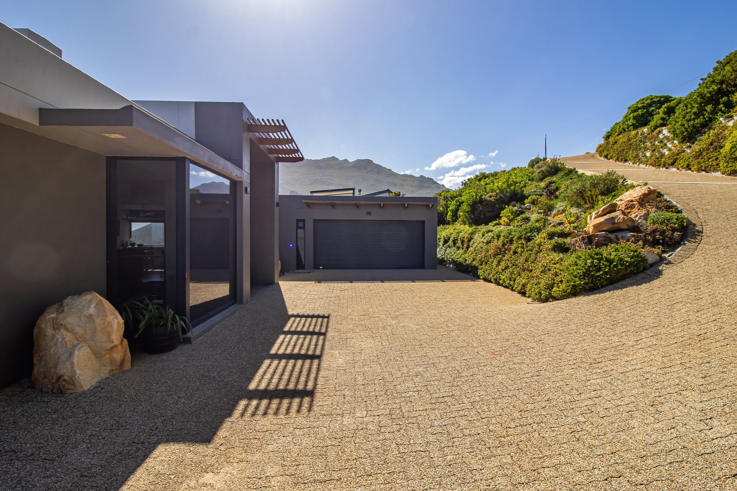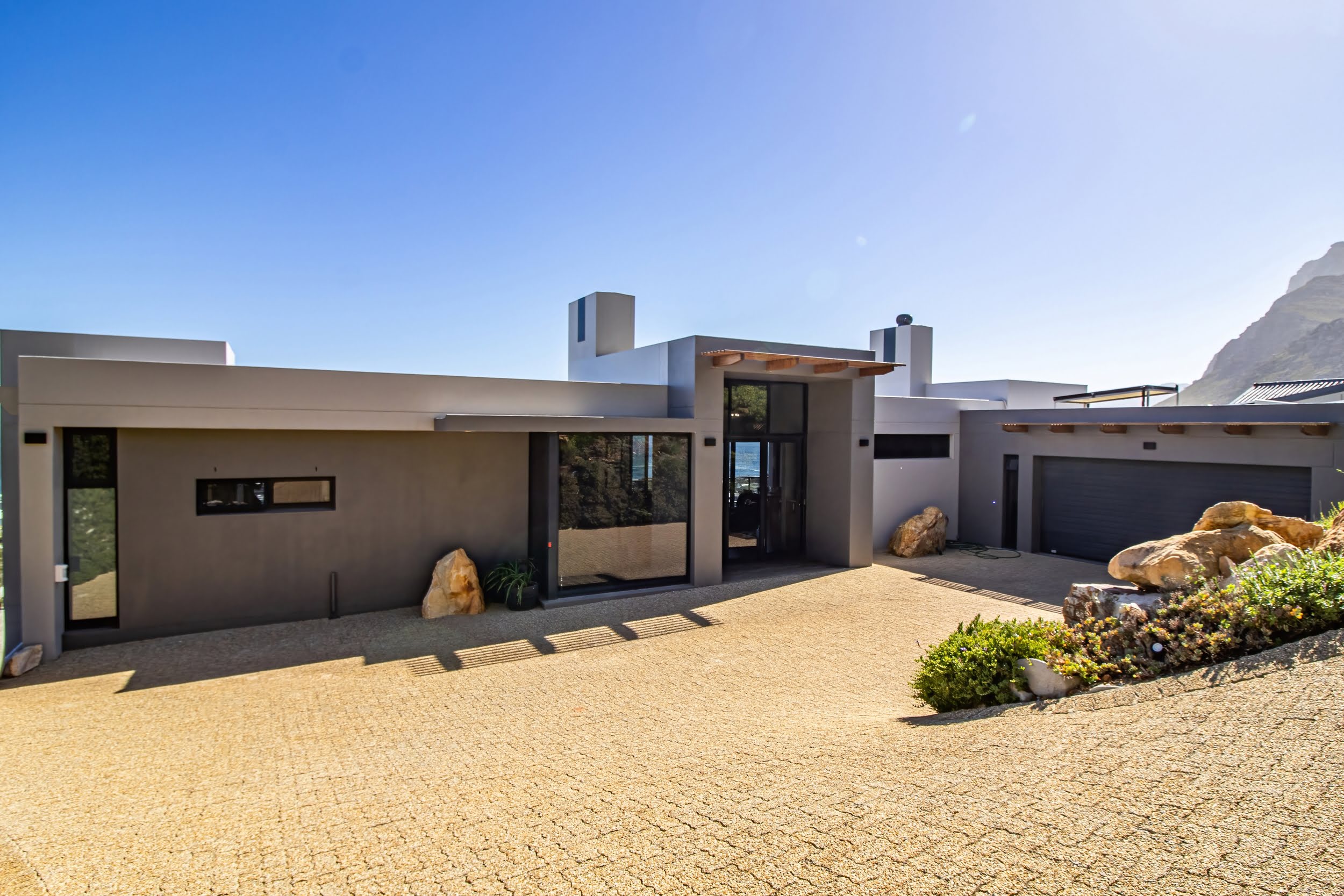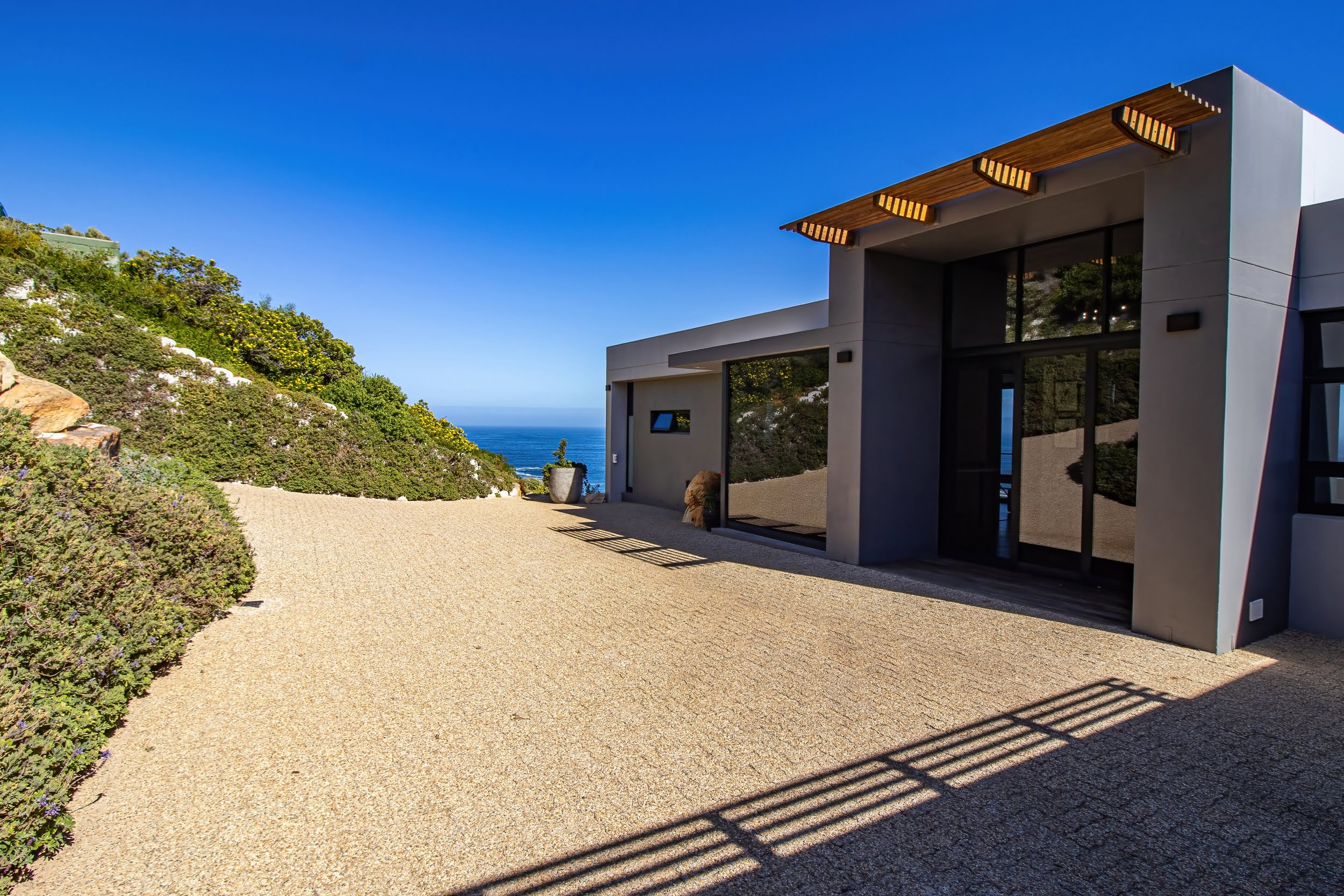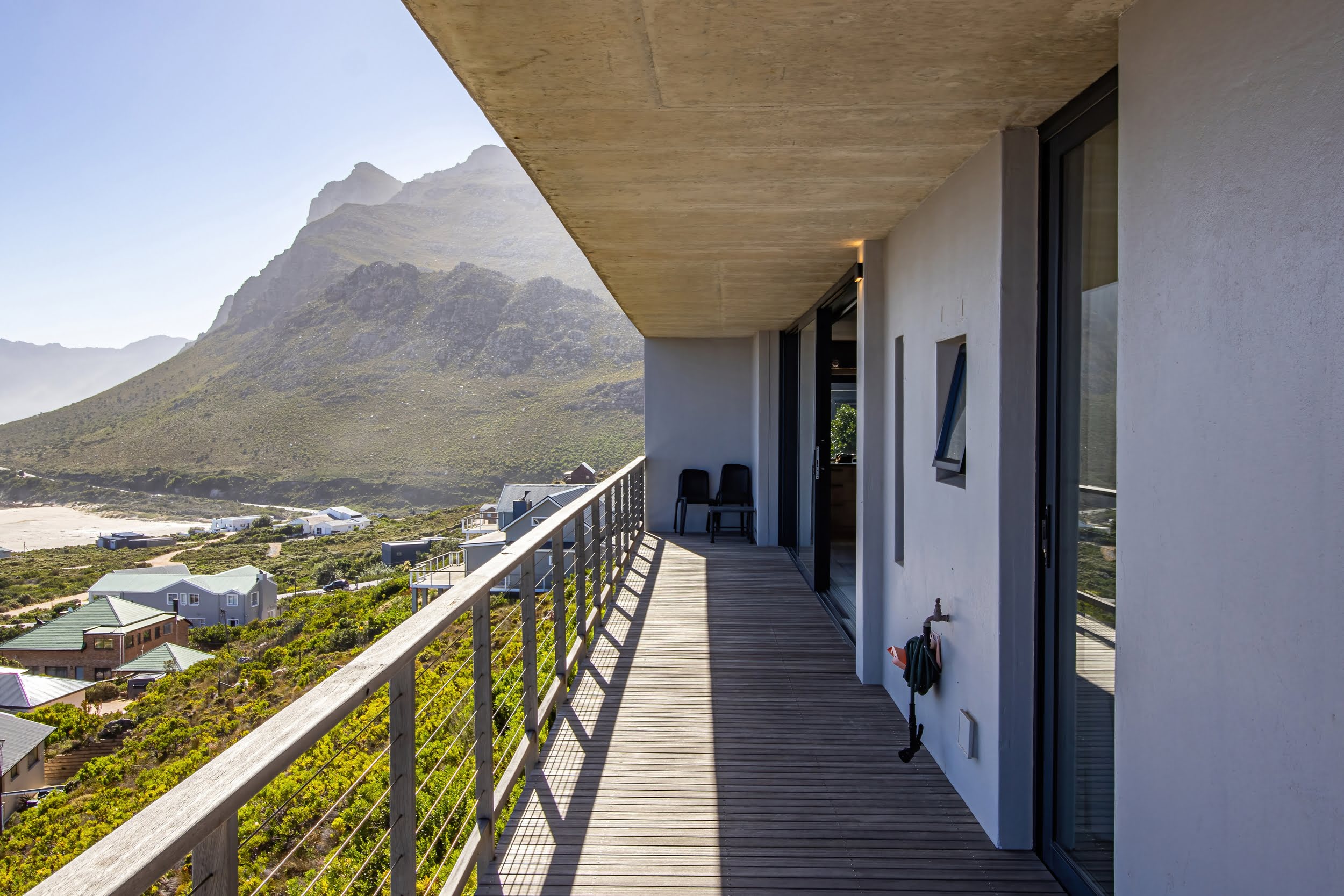Nestled in the pristine coastal village of Rooiels , this contemporary residence presents a rare opportunity to live in harmony with one of the world’s most biodiverse regions. Elevated along the slopes of the Klein Hangklip Mountain , the home offers a refined vantage point over the breathtaking Kogelberg Biosphere —a UNESCO-recognised natural sanctuary.